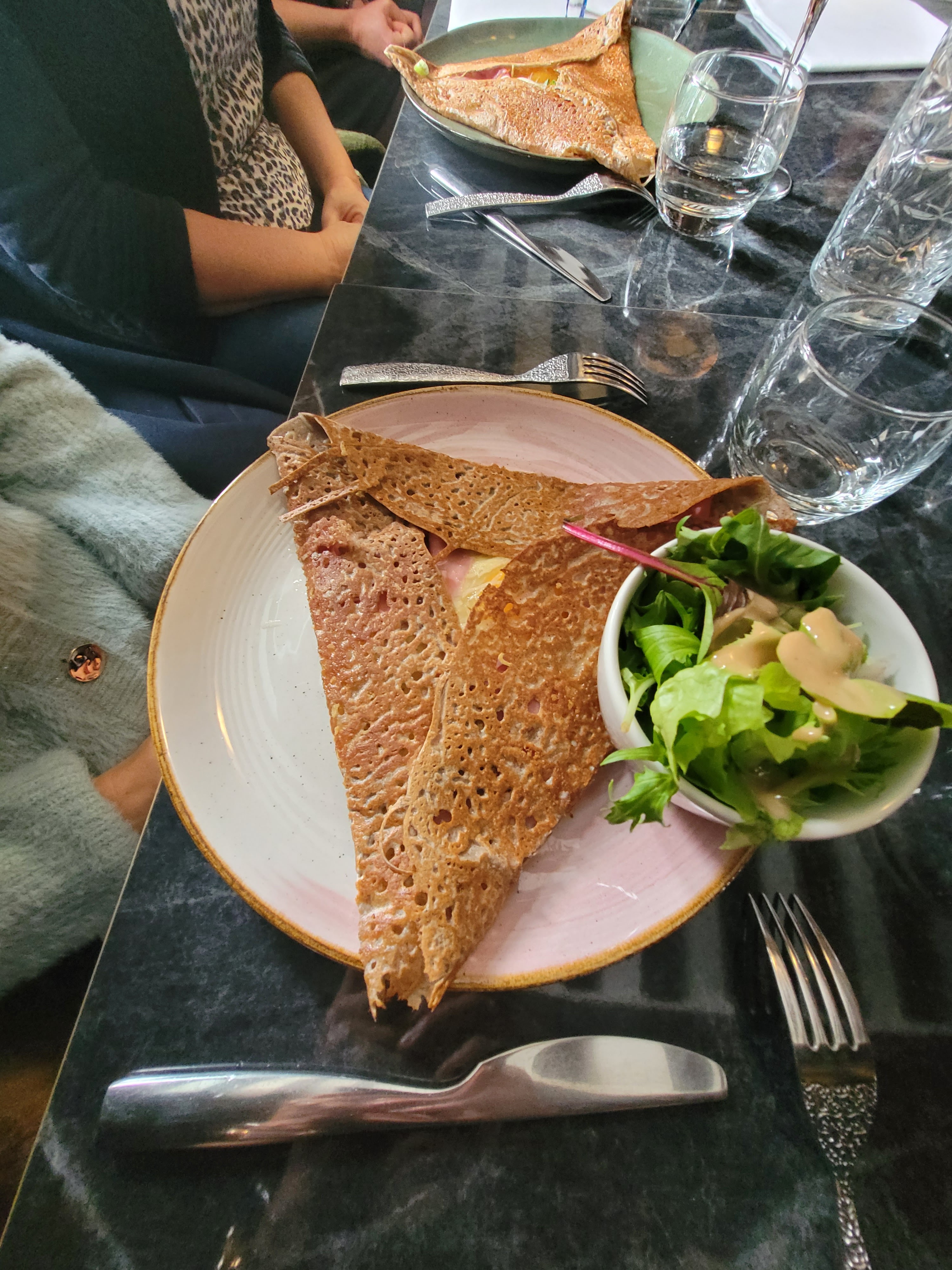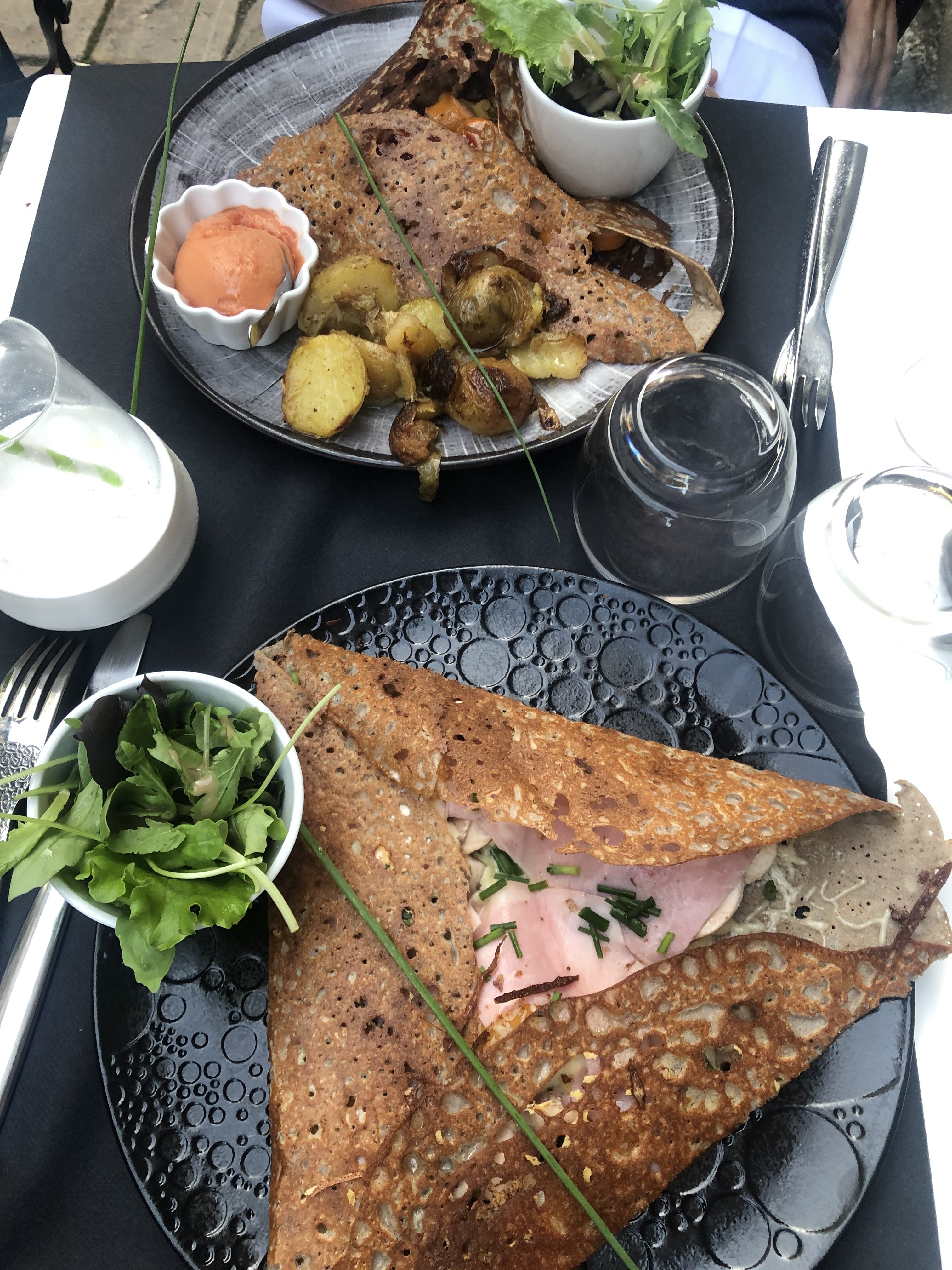 Un véritable délice !! la présentation des plats est digne d'un restaurant gastronomique, les proportions sont parfaites, le personnel très accueillant et professionnel. Je ne le dirai pas assez mais les crêpes sont réellement sublimes et c'est un vrai régal, les meilleures que ma compagne et moi avons mangé jusqu'à maintenant. N'hésitez pas si vous cherchez à vous faire plaisir et à manger des crêpes à tomber par terre. Le prix est légèrement élevé mais cela est largement mérité vu la qualité des plats.