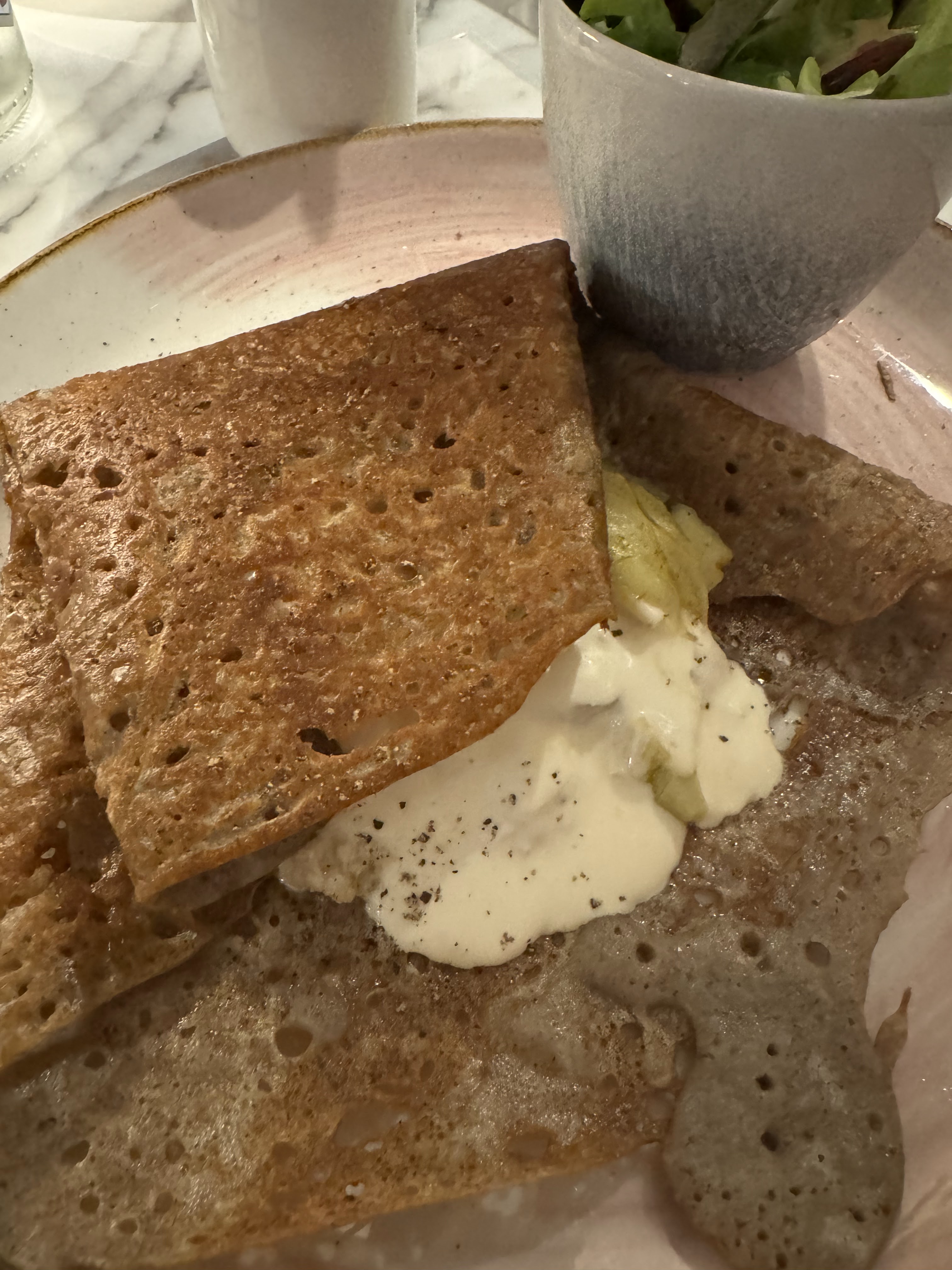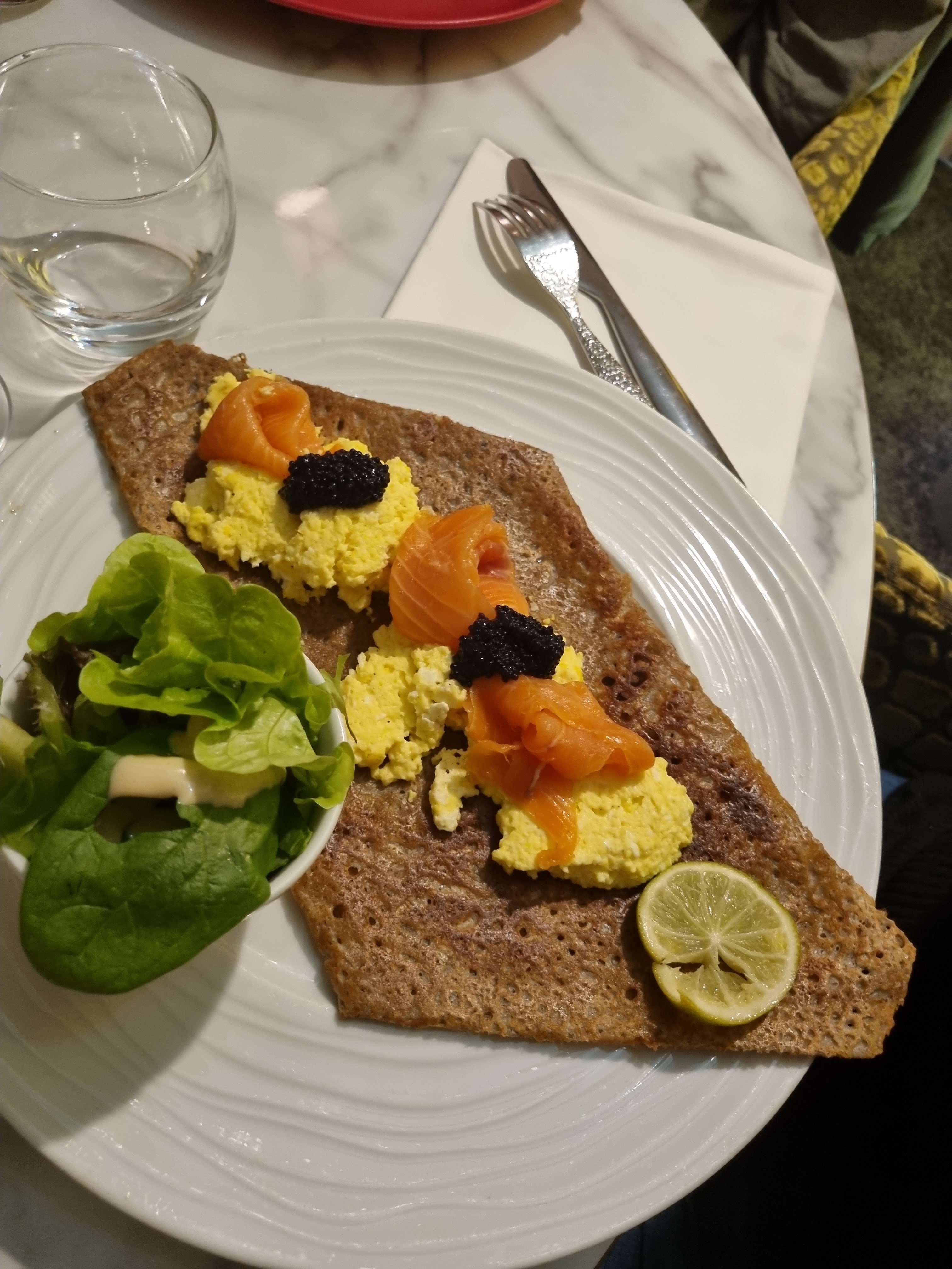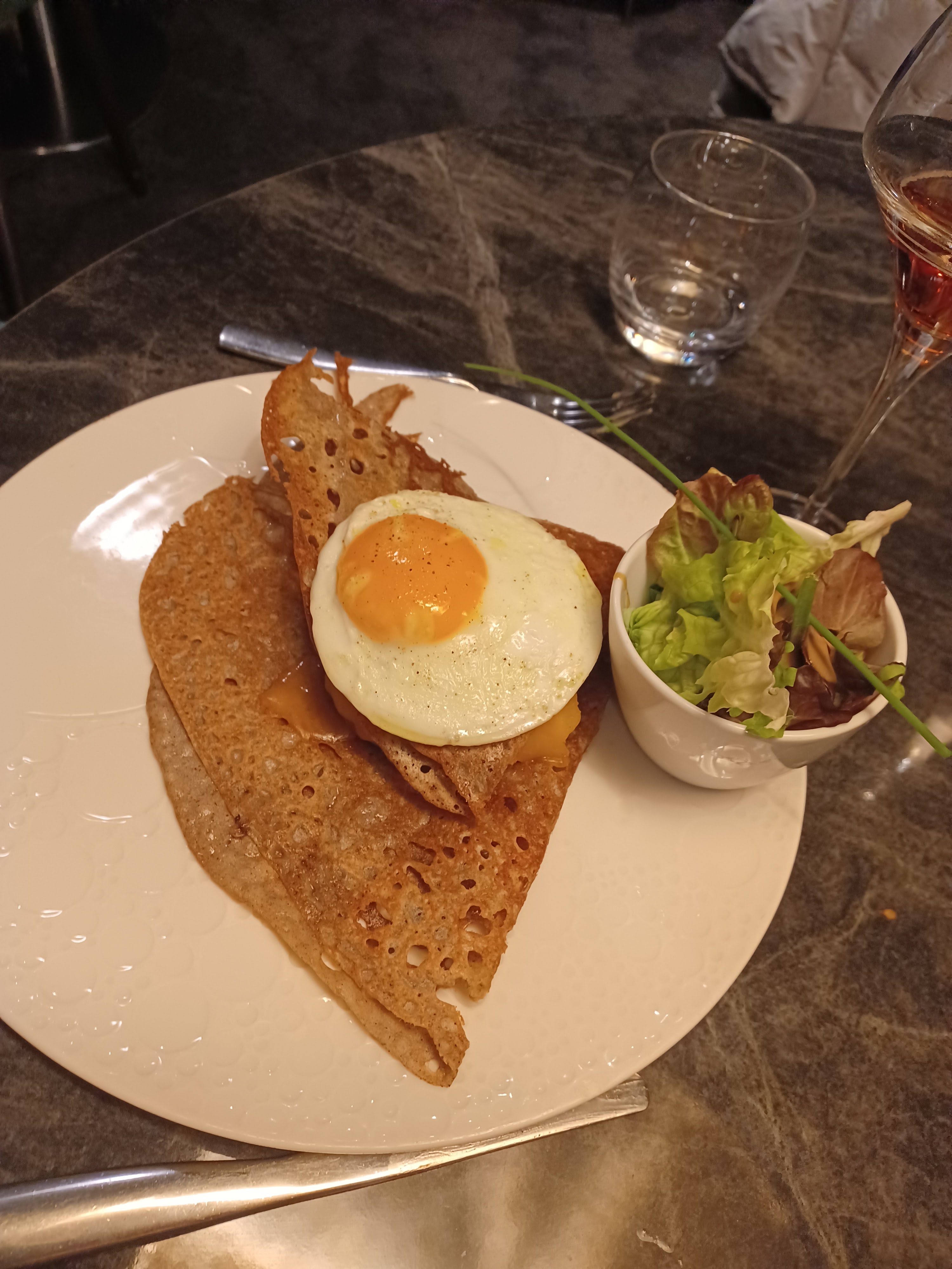 La galette et la crème que j'ai prises étaient excellentes. Le restaurant était très calme et joliment décoré. Excellent rapport qualité/prix.