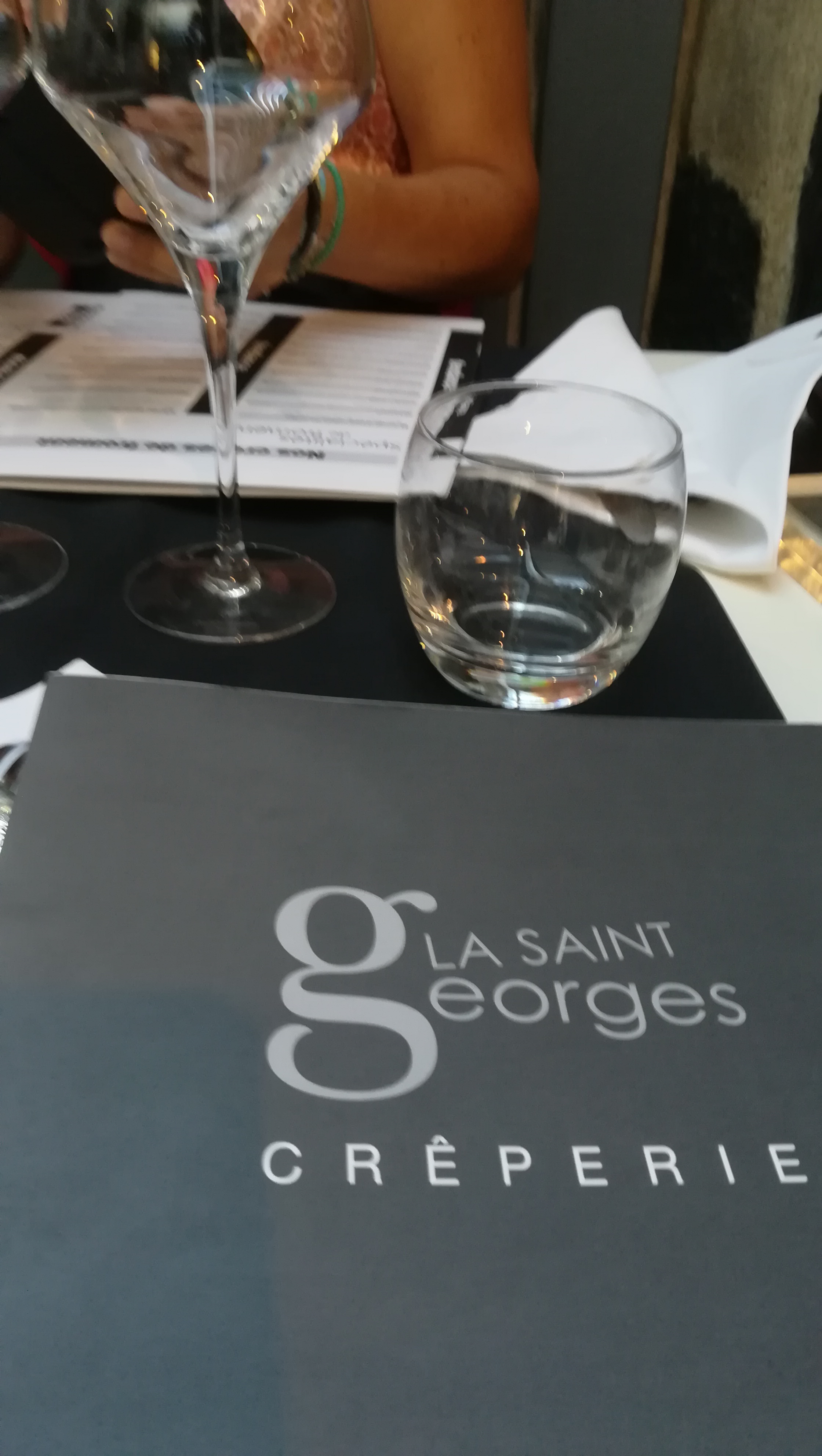 Je connaissais ĺe saint georges pour ý etre allée régulièrement pendant des années. Je suis surprise de voir que l'établissement se revendique encore haut de gamme. Au menu ce midi, pour ma mère une galette servie brulée (en photo), une salade défraîchie. En nous voyant prendre des photos la serveuse propose de changer la galette brulée. Je lui fais remarquer que ma salade n'est pas fraiche (elle rouge, en photo aussi), elle répond elle a été faite de ce matin. Ha. Je n'avais jamais vu ça, radin au point de ne pas renvoyer une vieille salade en cuisine. Elle me l'a donc laissée. Quant a ma galette, la photo est explicite : brie industriel non fondu, quelques cuillerées de confiture de figues jetée en paquet et une petite poignée de raisins secs pour parfaire cette recette haut de gamme. Je ne mettrais plus jamais les pieds ici, clairement pas à la hauteur des prix pratiqués. En meme temps, quel prix serait juste pour une salade pourrie et une galette cramée ?