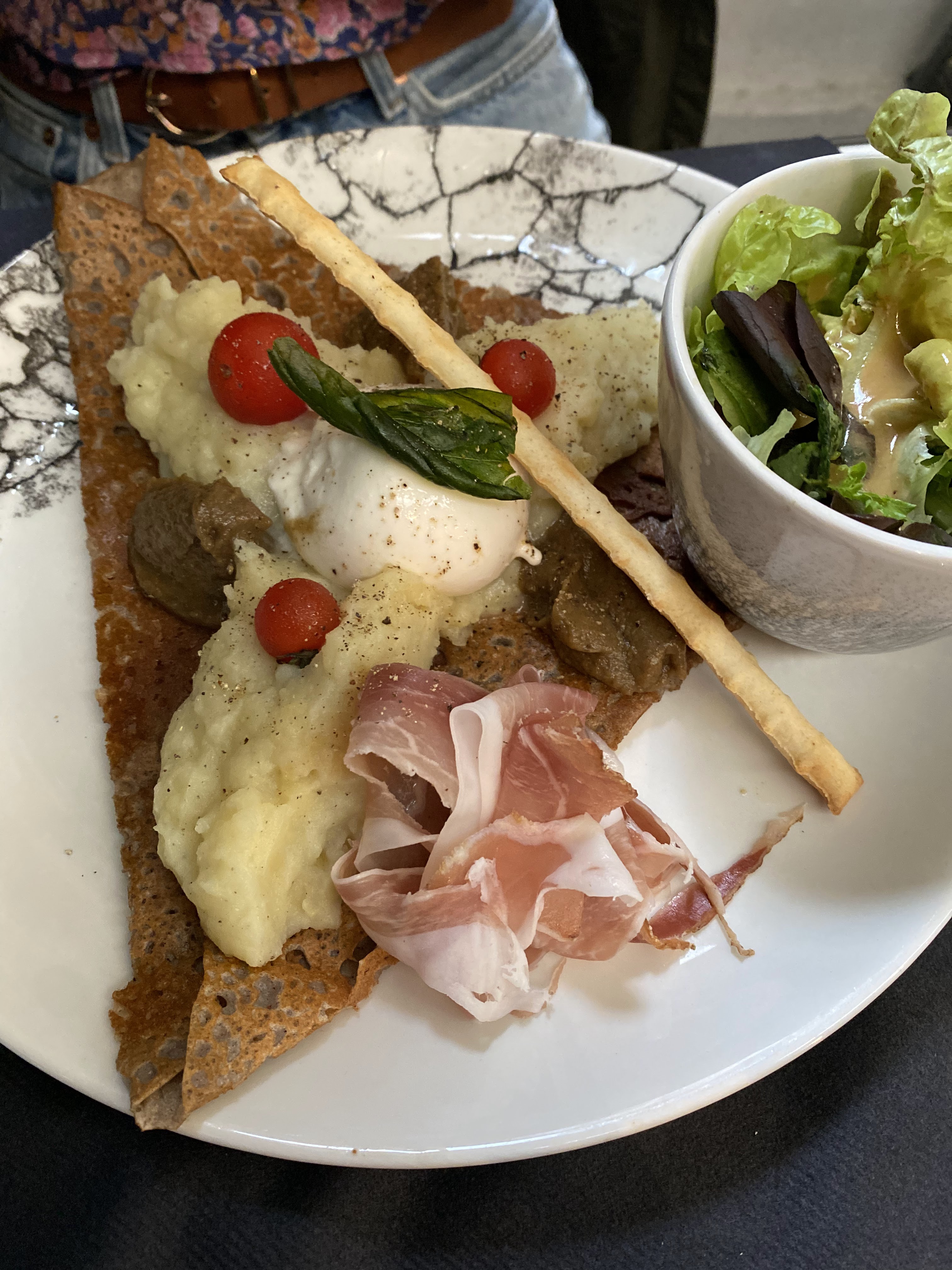 Début de service qui peut sembler long mais tout le reste est allé à la vitesse idéale. La composition des galettes est originale et très bonne. Petit coup de coeur pour le choix du mobilier du rez-de-chaussée