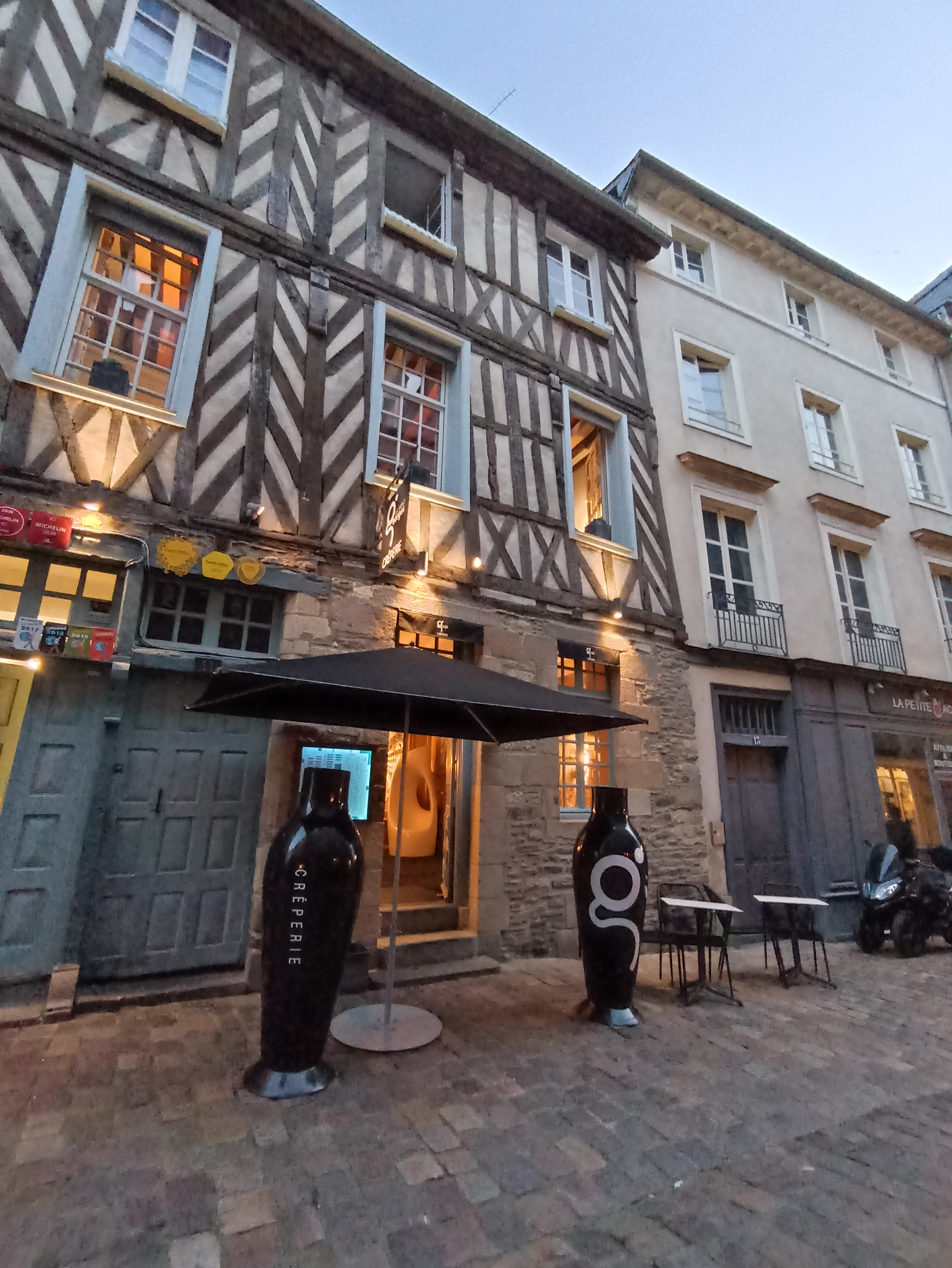 Une authentique crêperie bretonne, au sein d’un établissement extrêmement soigné, dans une rue piétonne aux toits d’ardoises et colombages... Les crêpes s’échelonnent entre 5-10€ pour une crêpe à « façonner soi-même » (choix des ingrédients etc...) et 20€ pour les crêpes au sarrasin garnies (viandes, Saint-Jacques, Saumon, fromages...). Envie de se sentir en Bretagne ? Allez donc y faire un tour...