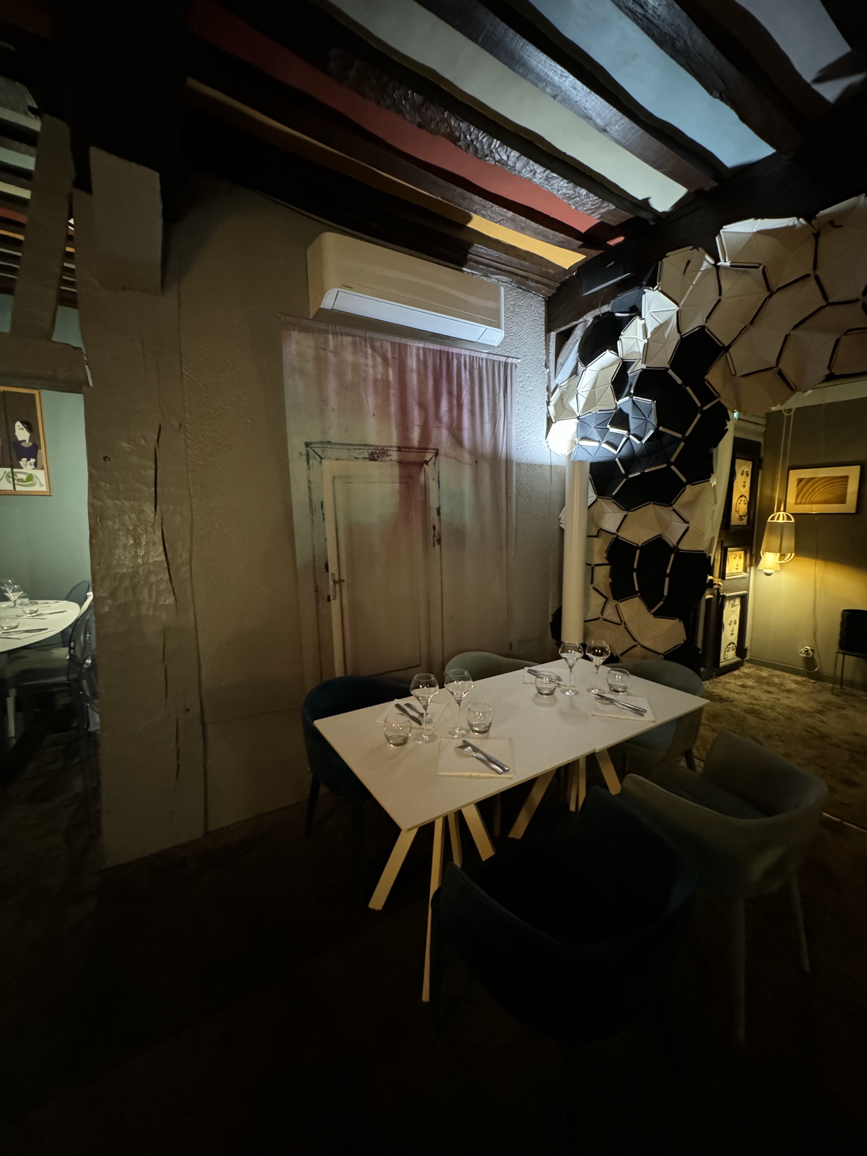 Un agréable moment passé dans cet établissement. Des points forts et des points faibles (à prendre avec des pincettes). On aime : - l'emplacement dans une ruelle charmante, - la présentation des assiettes, - la qualité et le bon goût de ce qui est servi, - la sympathie du personnel, - la flexibilité horaire (table décalée). On aime moins : - la déco du rez-de-chaussée, - le choix musical (affreusement décousu !!!), - les prix ....... N.B.: carte très fournie, choix cornélien, difficile de faire le choix, carte peut-être trop fournie (même sur les desserts, eux aussi, onéreux)