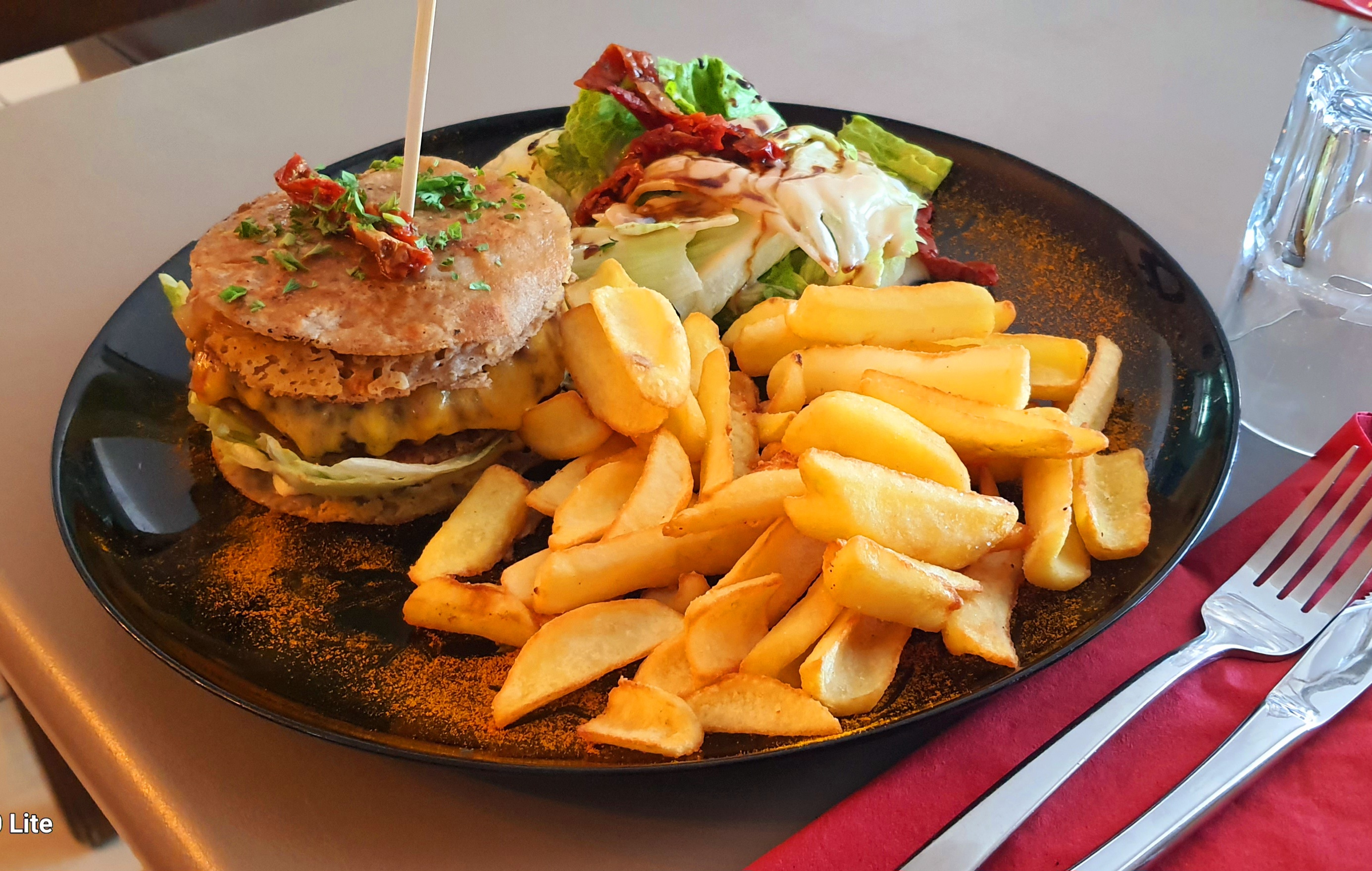 Un pur délice, tant pour les pâtes au lard et à la truffe que pour la galette au jambon et petits légumes. Portion très généreuse. Mention spéciale pour l'éprouvette de Chablis. Un excellent vin en vente à emporter. Je me suis régalée. Mon fils avait quant à lui commandé un chicken burger. Agréablement surpris par le croustillant des deux filets de poulet qui s'est parfaitement maintenu la durée du trajet (10 km). Le bacon fumé se mariait exquisement au burger. Sauce parfaite et crudités croquantes. Portion très généreuse. La limonade de sureau était très bonne.