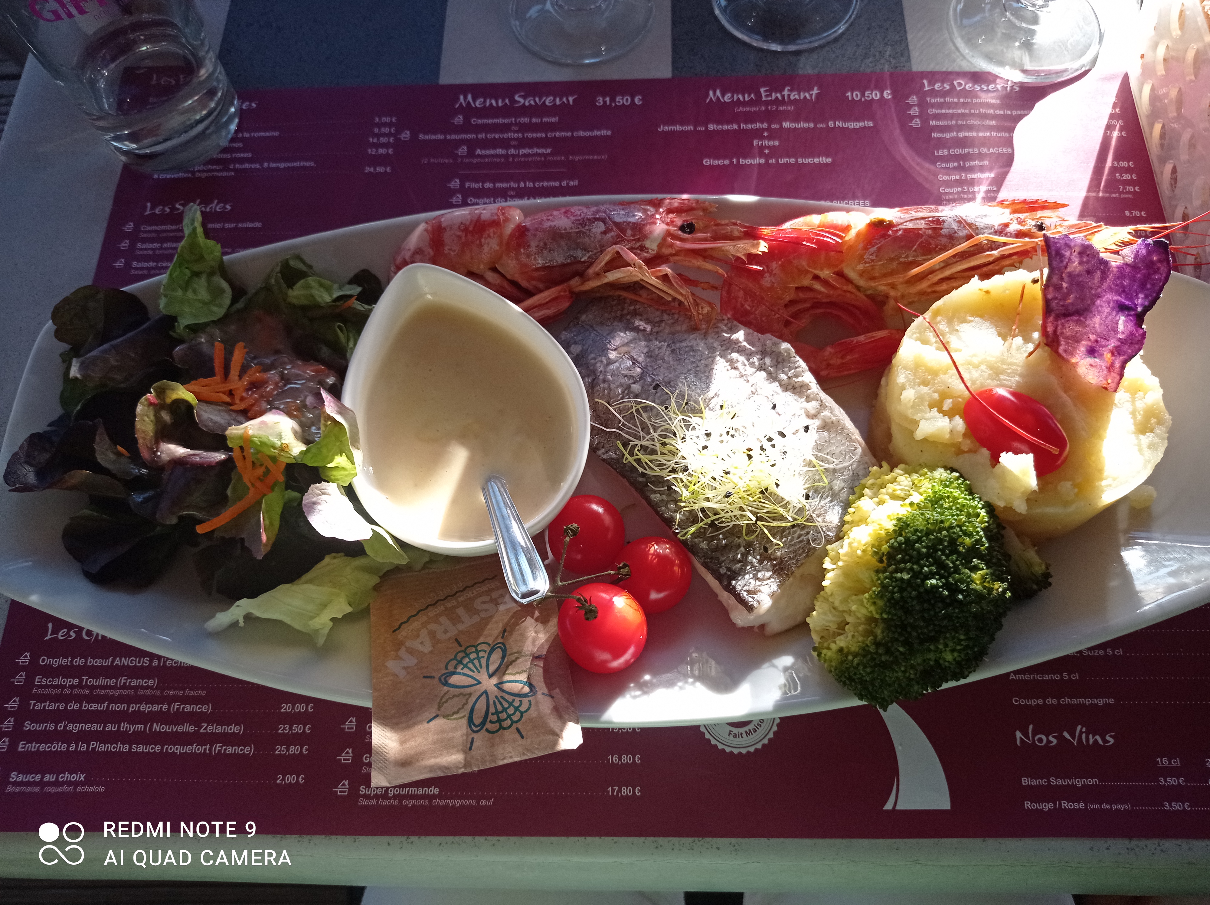 Un très bon moment face au port de plaisance de pornichet, la jeune serveuse est adorable, de bon conseil. Le menu à 26,50 euros avec entrée plat dessert copieux et de qualité que ce soit merlu ou saumon. Je confirmes que la tarte fine pomme est un délice. Je précise que la responsable et le personnel avaient tous un masque, qu'il y avait un rince doigt, la preuve que les avis sont suivis quand ils sont constructifs.