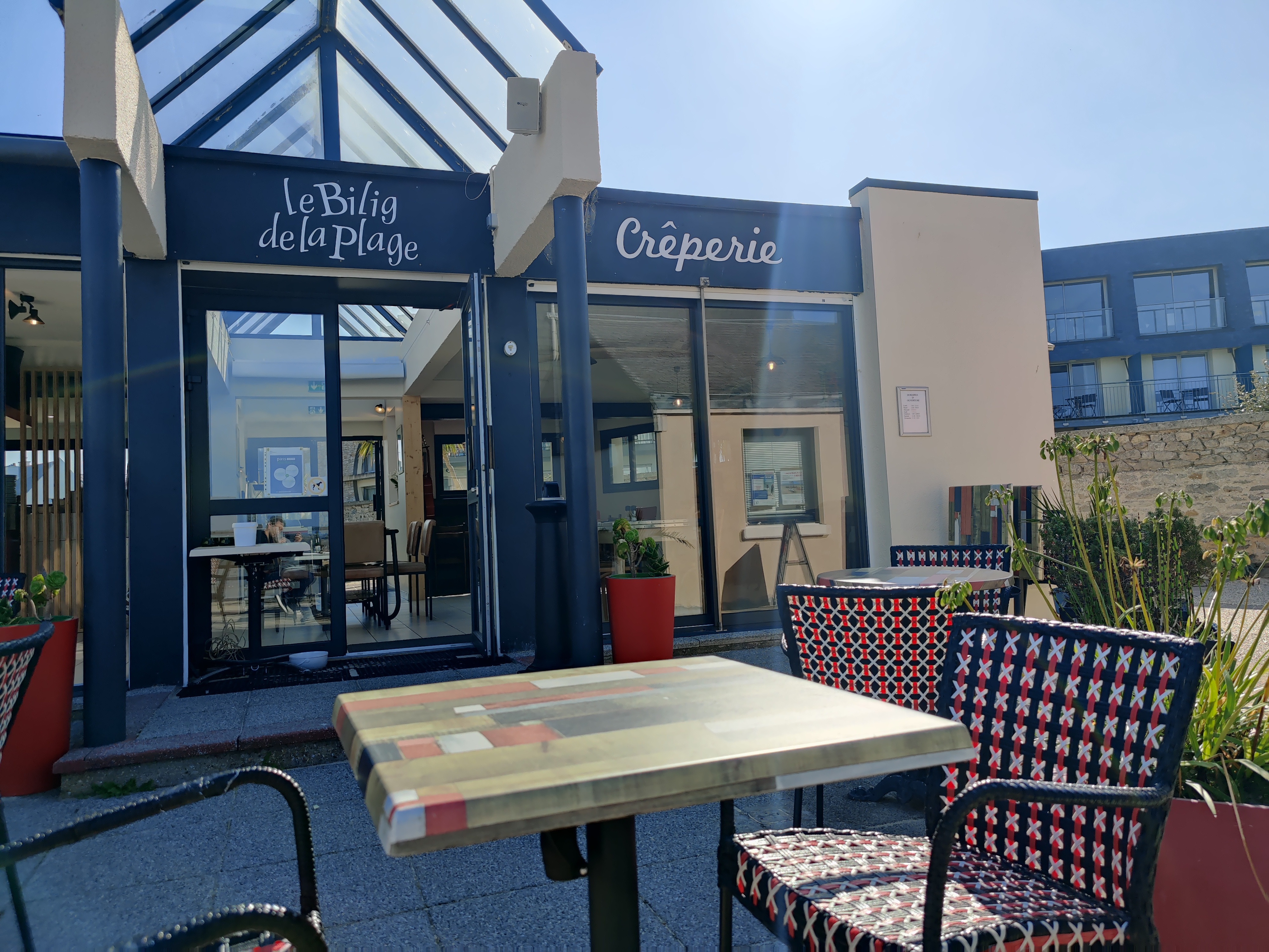 Très chouette ambiance vacances avec un personnel hyper souriant et gentil, sans oublier les galettes et crêpes délicieuses! Le tout avec une vue plage et mer imprenable. Nous recommandons vraiment.