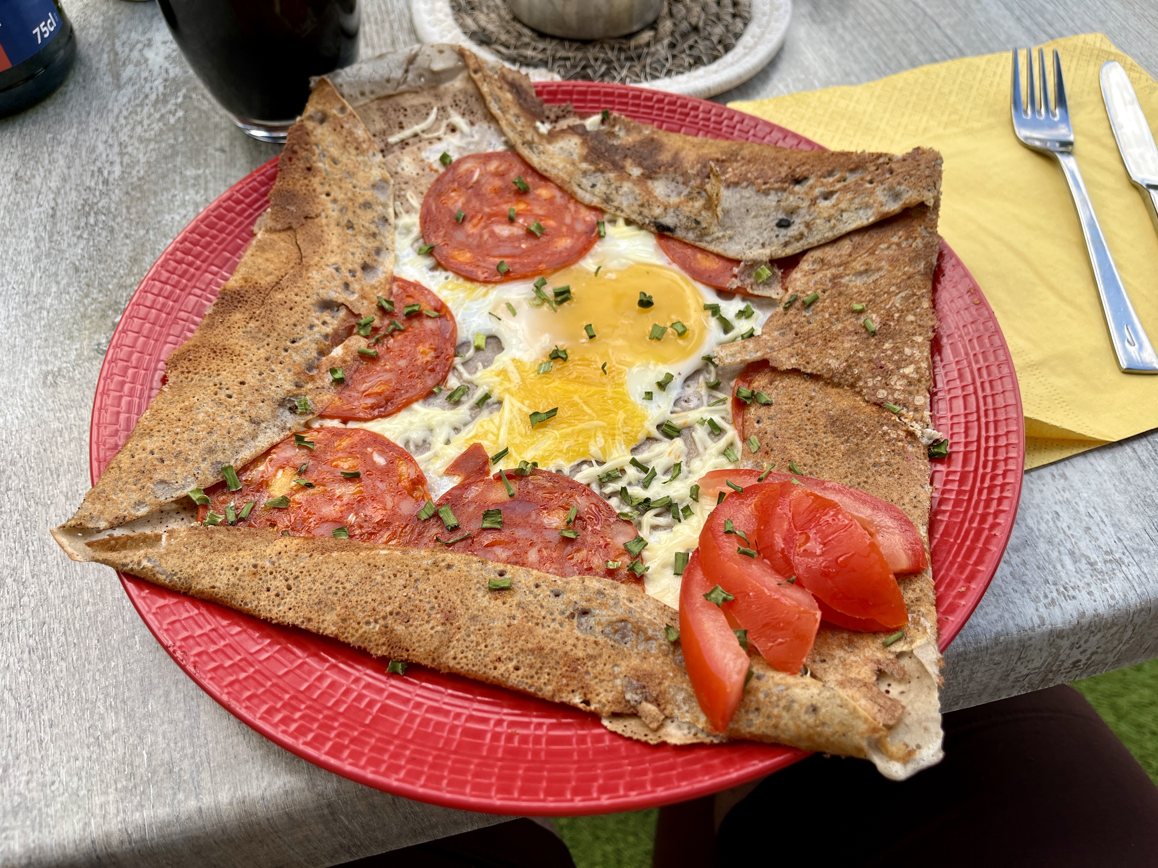 Le choix des couleurs pour les couverts j'adore les crêpes sucrées sont un délice la gérante est rayonnante
