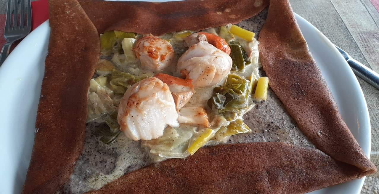 service très lent,des personnes arrivées bien après nous servies et débarrassé avant que l'on soit servi !!,bref une heure d'attente pour des crêpes très moyennes,pâte sèche,noix de St Jacques sacrifiées par un accompagnement pas à la hauteur,dommage.