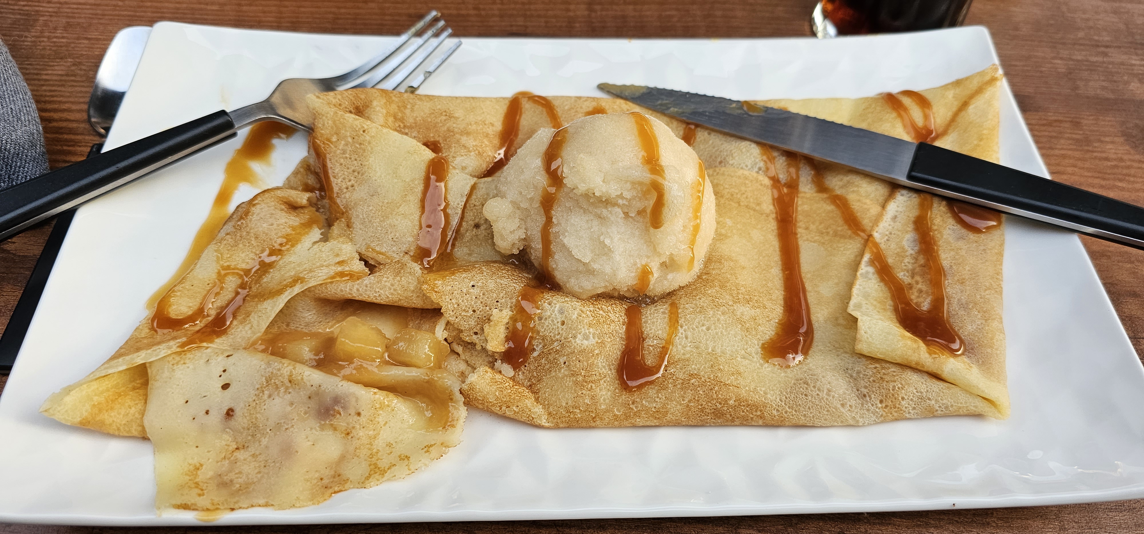 Alors que tous les restaurants étaient plein le propriétaire nous a quand même rappelés et nous avons pu nous régaler, pas de fausses notes autant sur les crêpes sucrées que salées !
