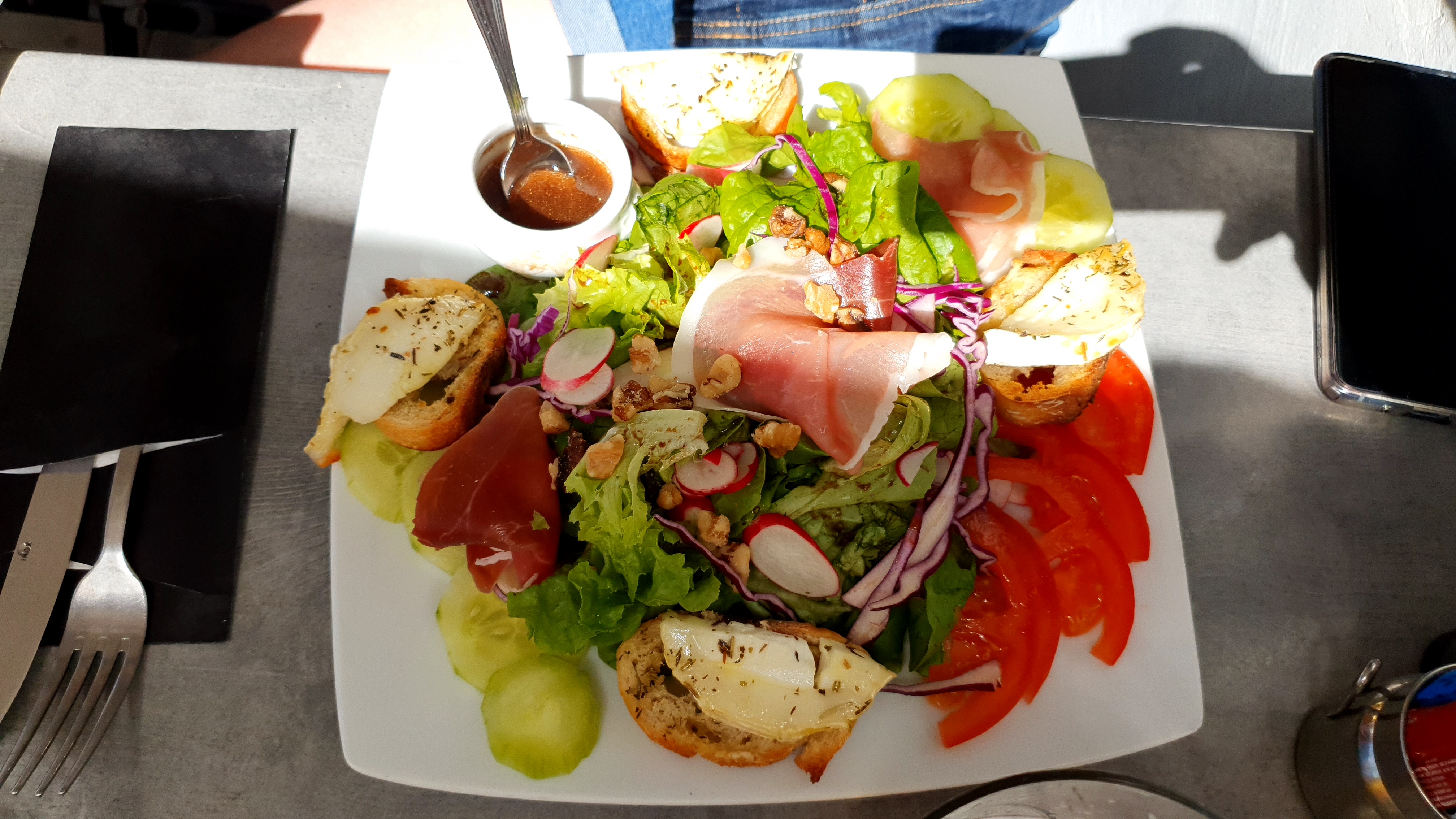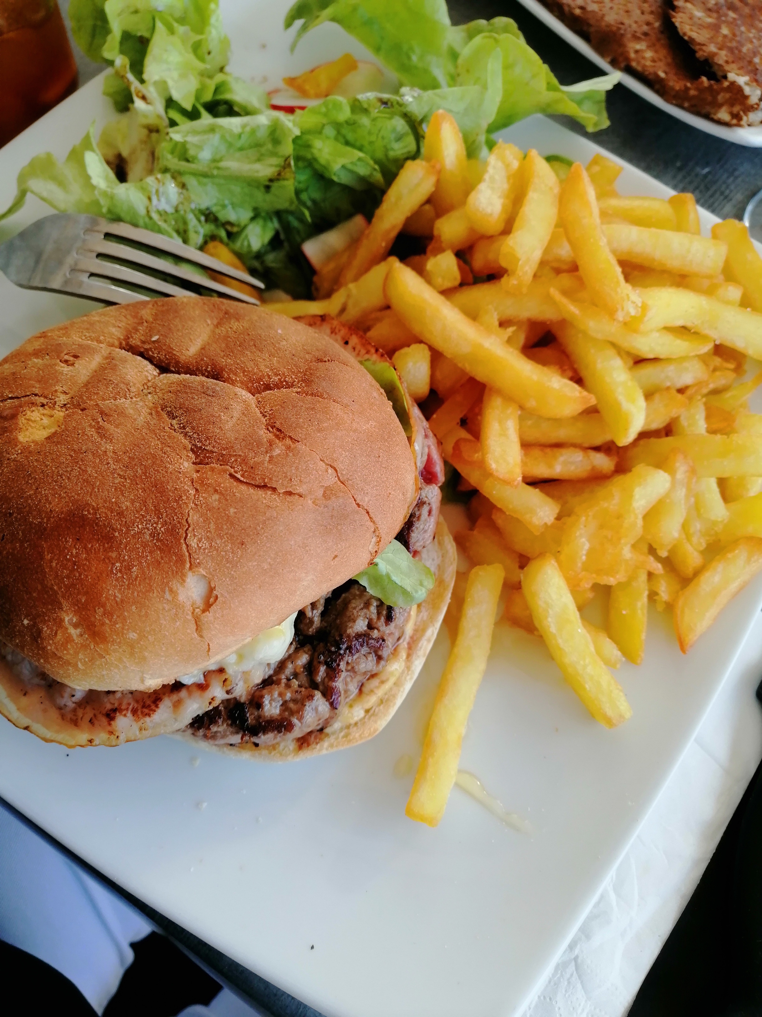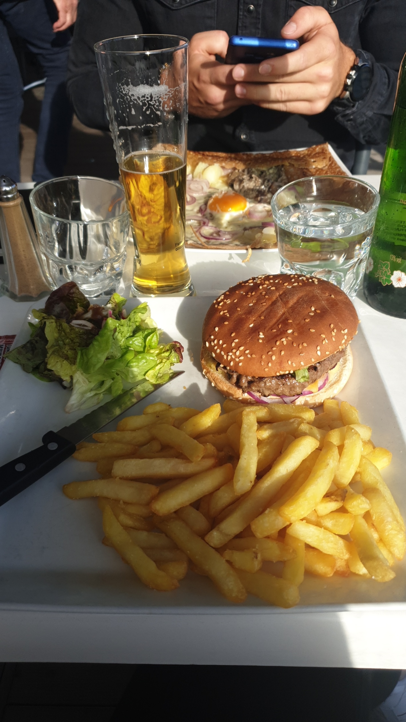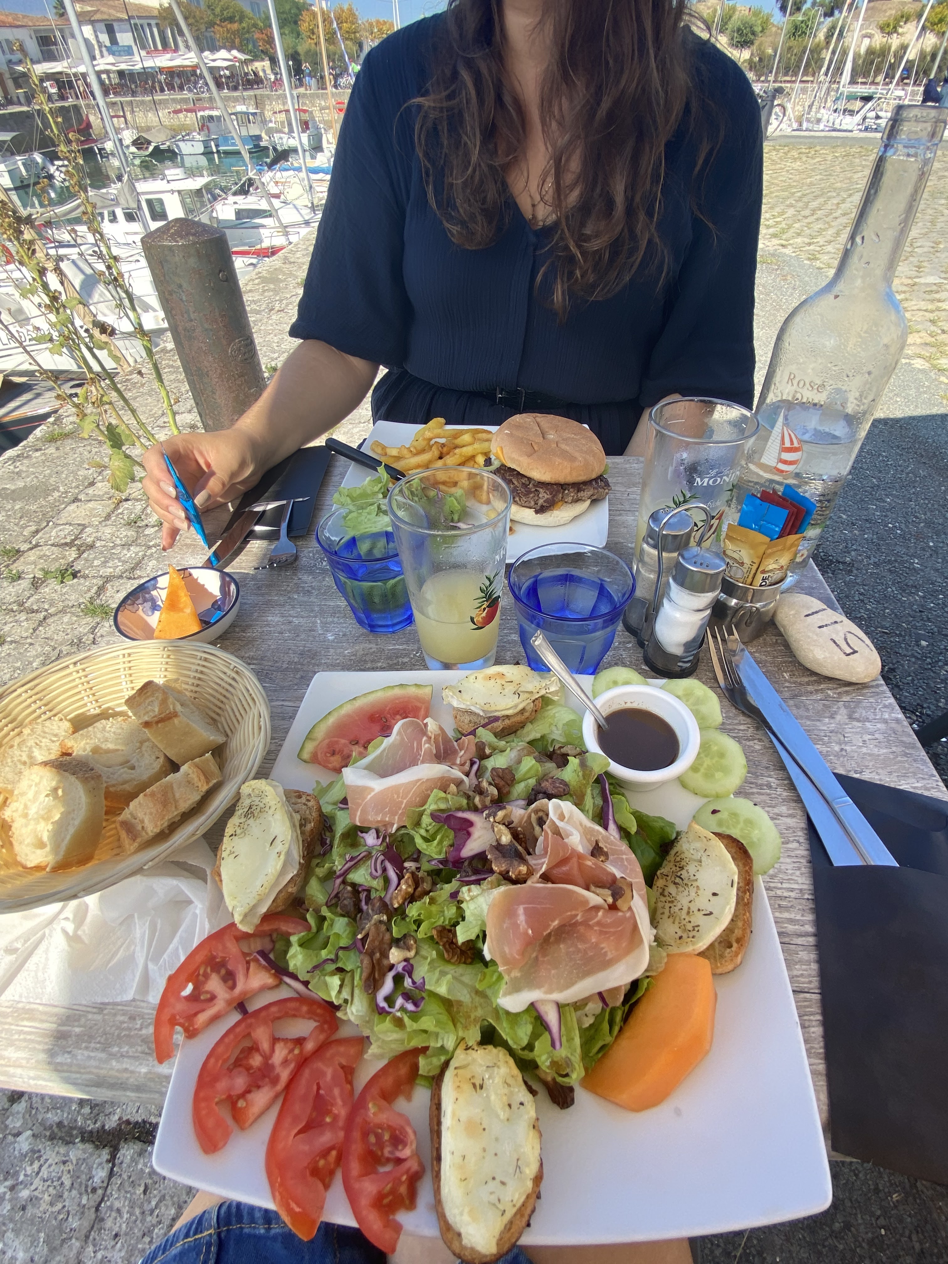 Repas sympa sur le port... Très bon rapport qualité prix, un service sympa et souriant... On a même eu l'honneur de faire connaissance avec un bébé goéland franchement pas farouche...😅