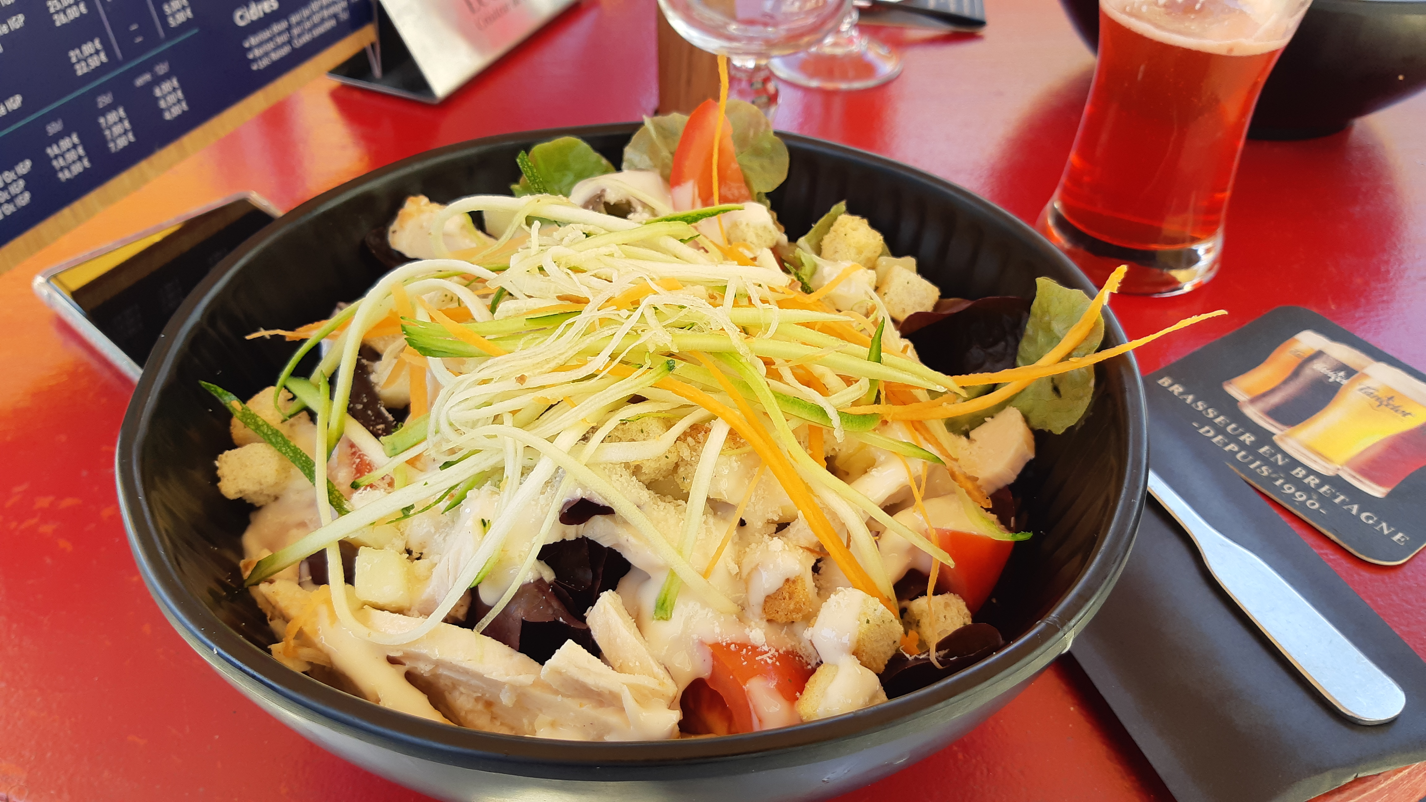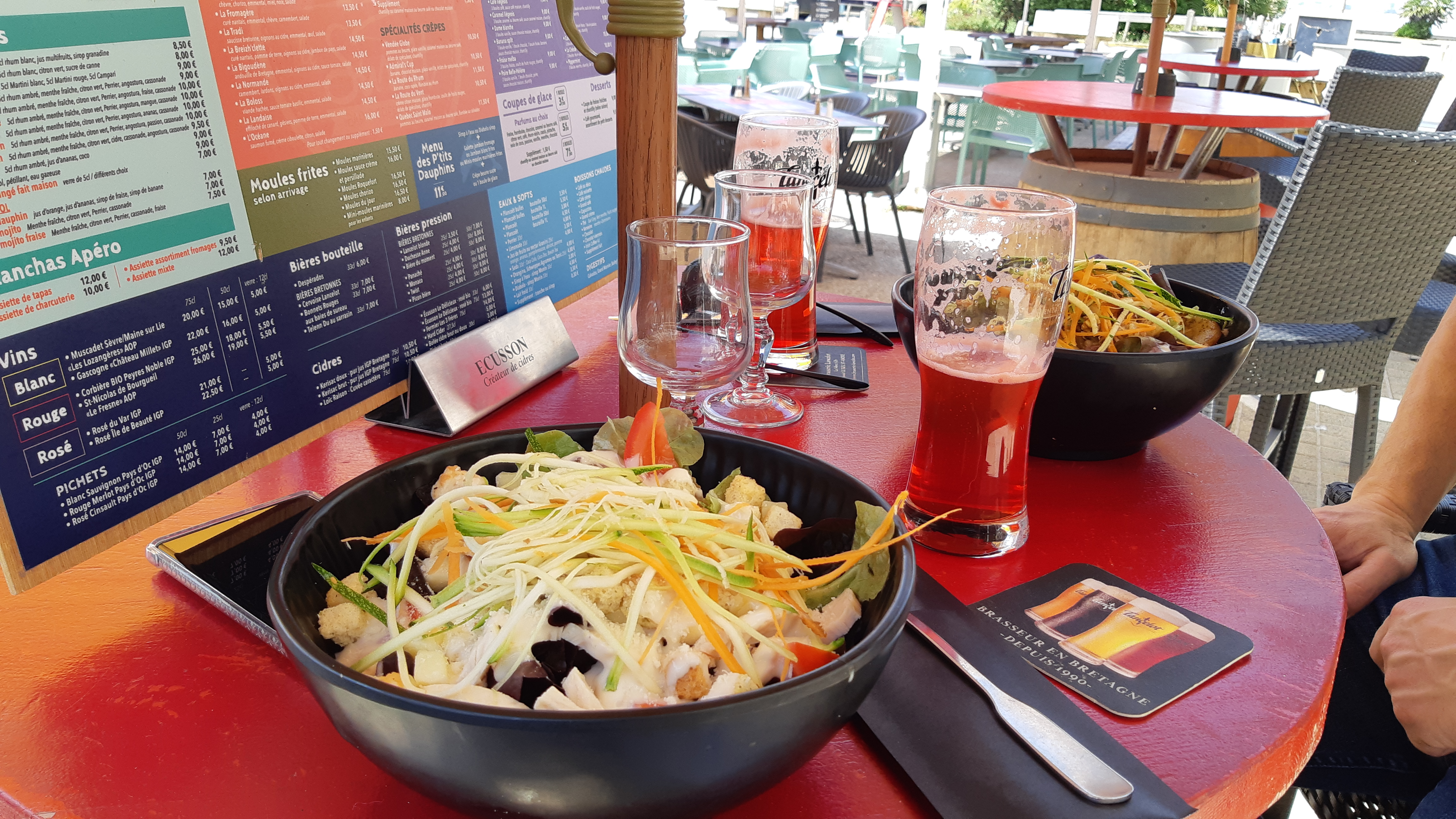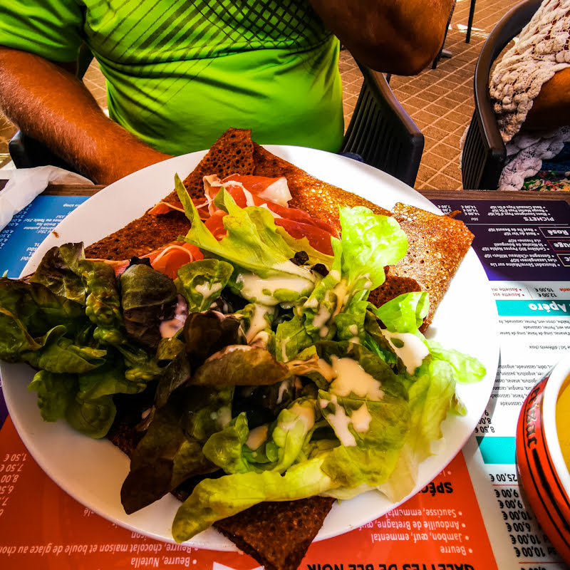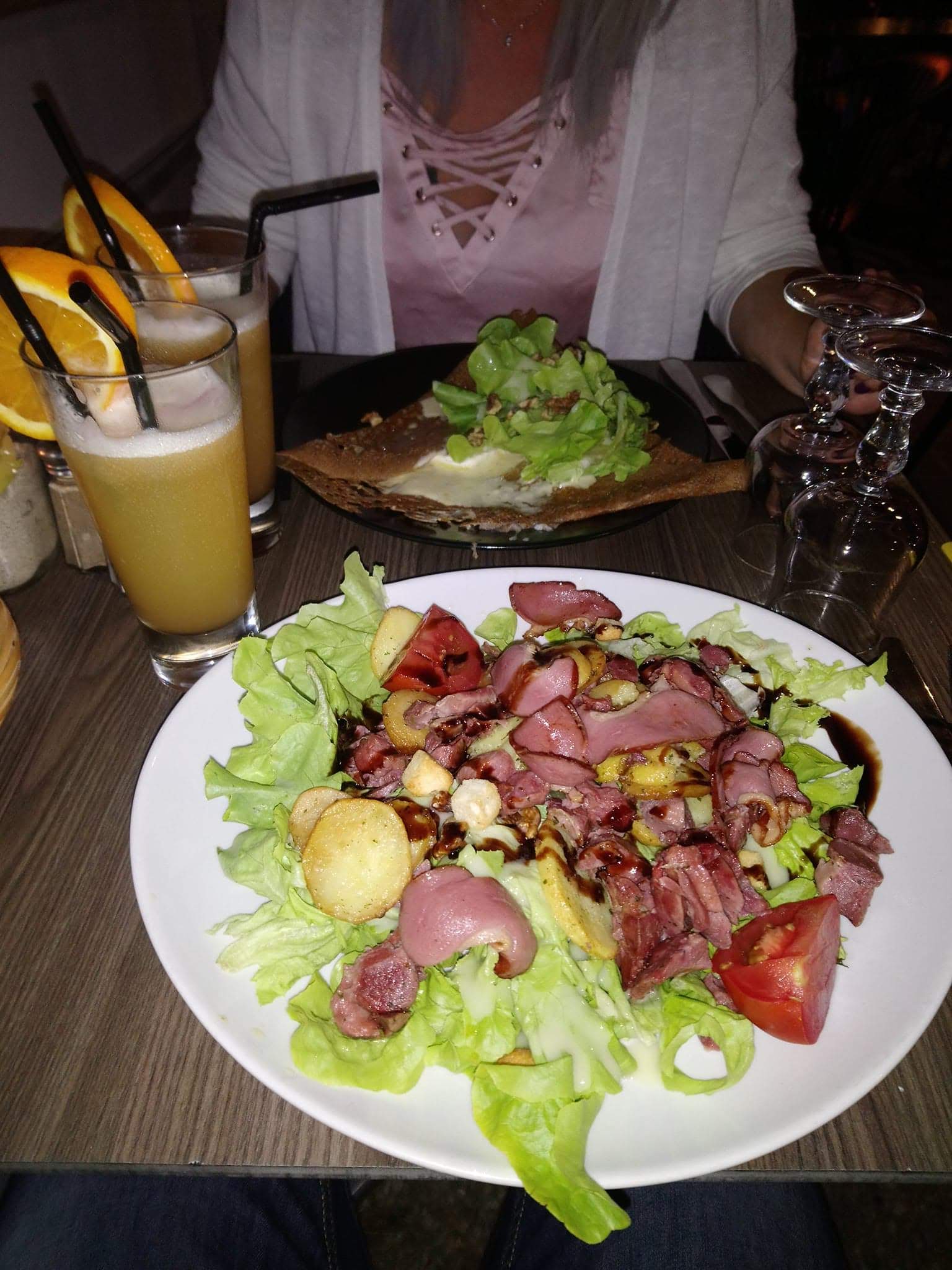 Nous nous sommes posés dans ce restaurant pour déjeuner, attiré par le cadre assez sympa. Nous avons été placés assez rapidement en terrasse. J’ai commandé une galette complète jambon œuf emmental (8€), et mon amie une salade fraîcheur (14,5€). Les deux plats sont bons, mais je suis surpris du fait que la galette soit si petite par rapport à la taille de l’assiette (nous sommes en Bretagne quand même). Le service est correct mais un peu long.