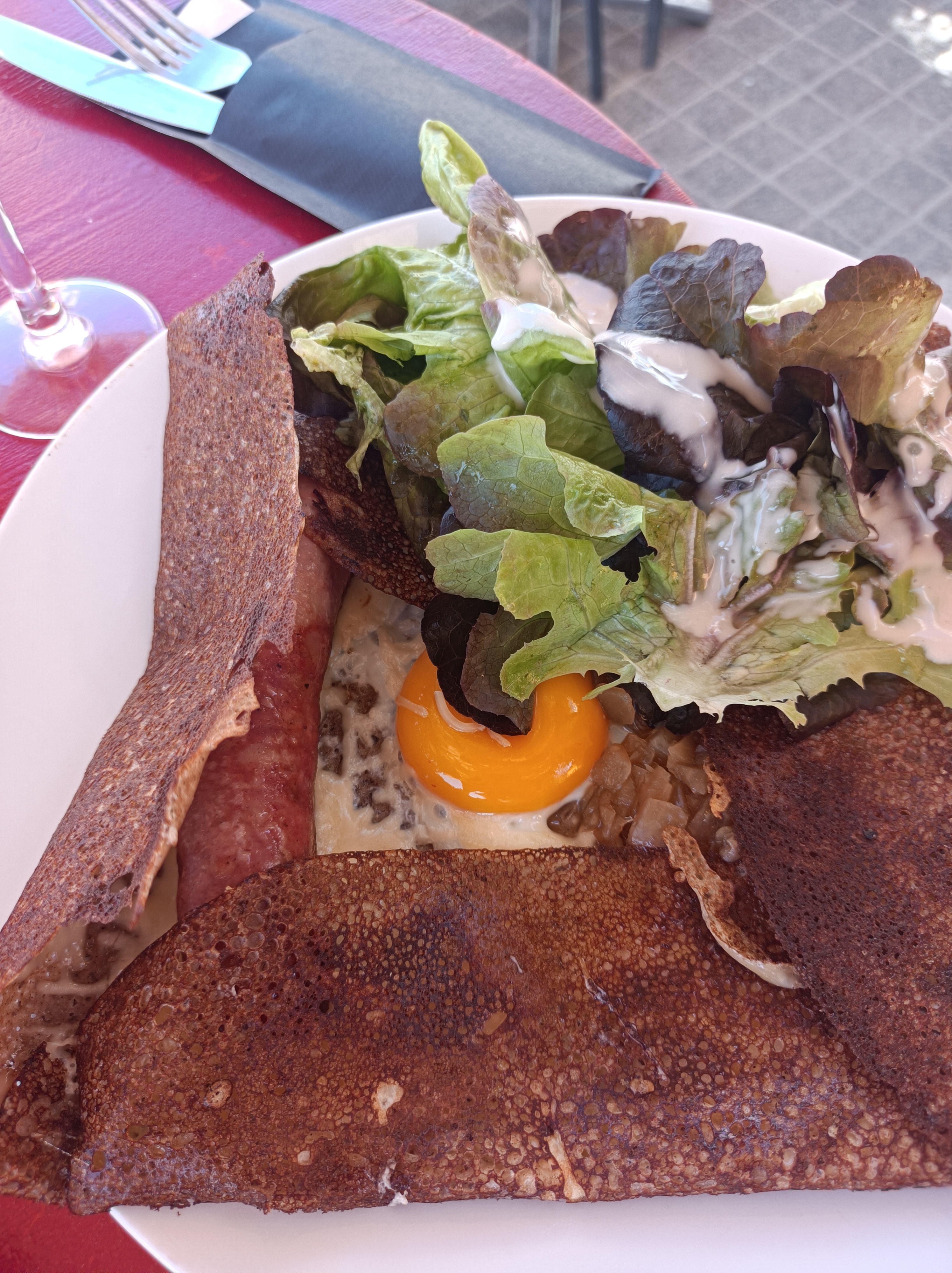 Nous avons déjeuner sur la terrasse, une galette très bonne et la salade Suroit un régale, la quantité était parfait.