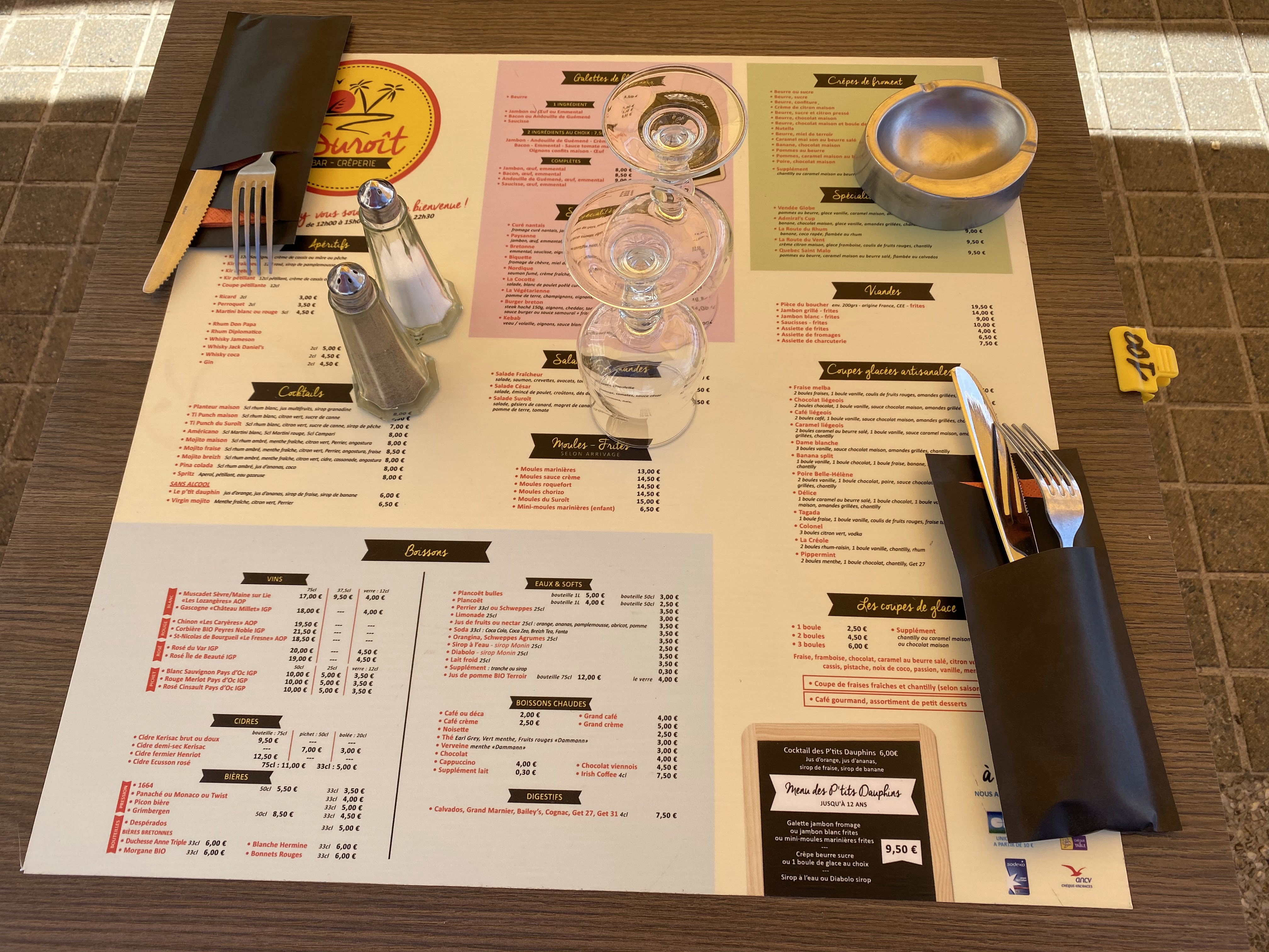 Aujourd'hui nous avons mangé au Suroit: nous n'avions pas réservé, pas de soucis le serveur souriant, très gentiment nous réserve une table qui sera prête dans le quart d'heure qui suit. Côté plat tout est bon et copieux servi par un personnel aimable et souriant. On ne manquera pas de retourner au Suroit à notre prochaine visite à pornichet