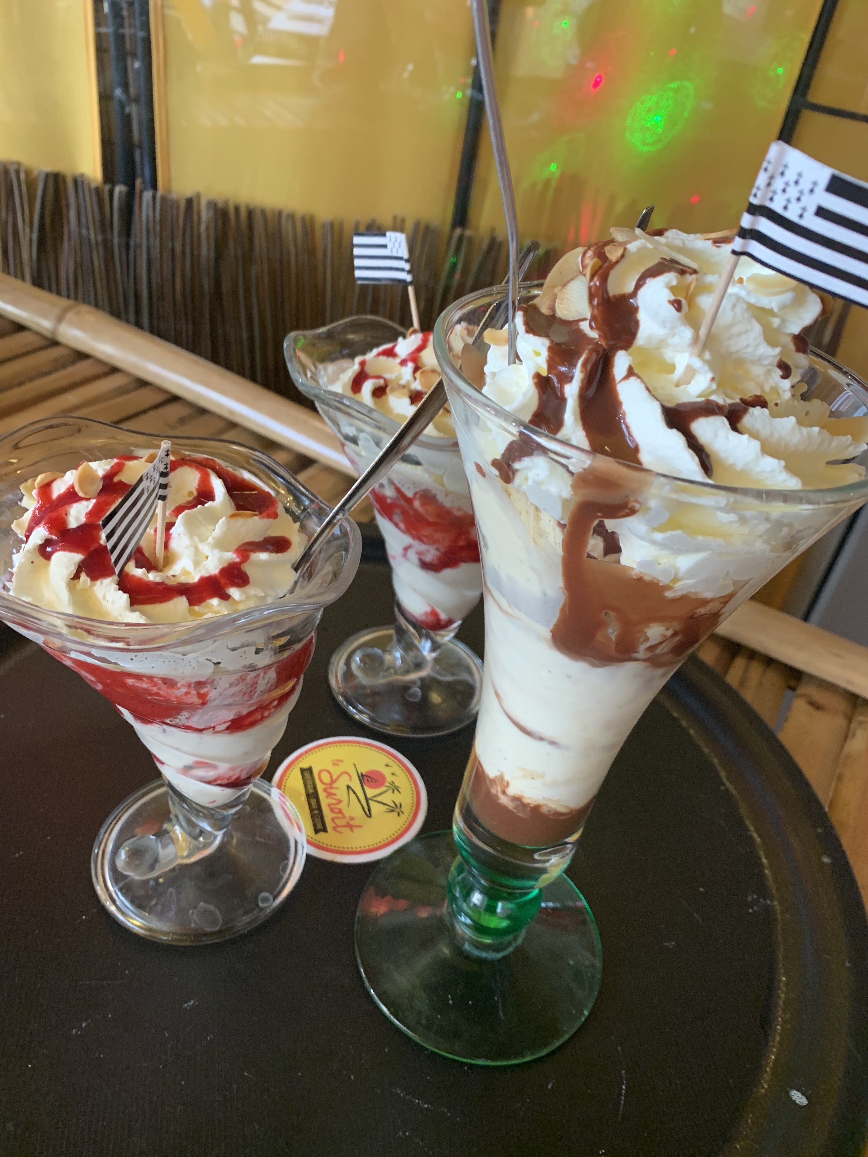 Testé avec juste 3 coupes de glace. Nous cherchions un goûter gourmand mais les coupes 3 boules sont juste des petits ramequins.
