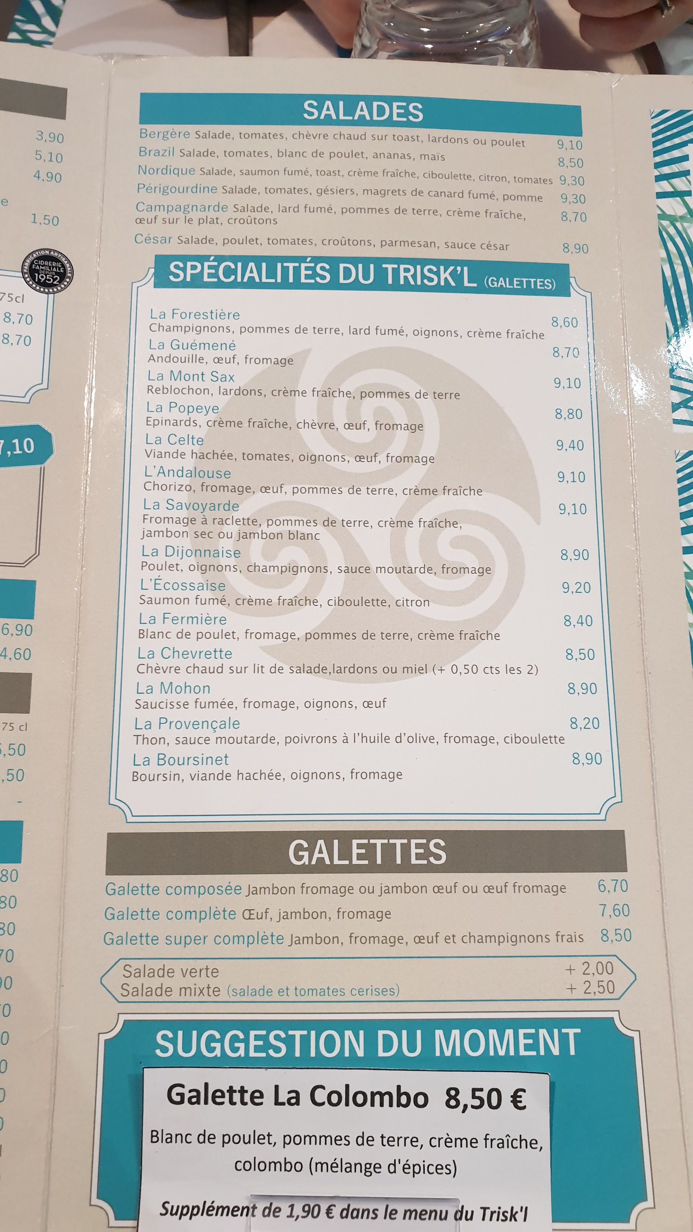 Le Trisk’L et un super endroit pour manger des bonnes crêpes je conseille vivement un bon cidre brut avec une crêpe au boursin