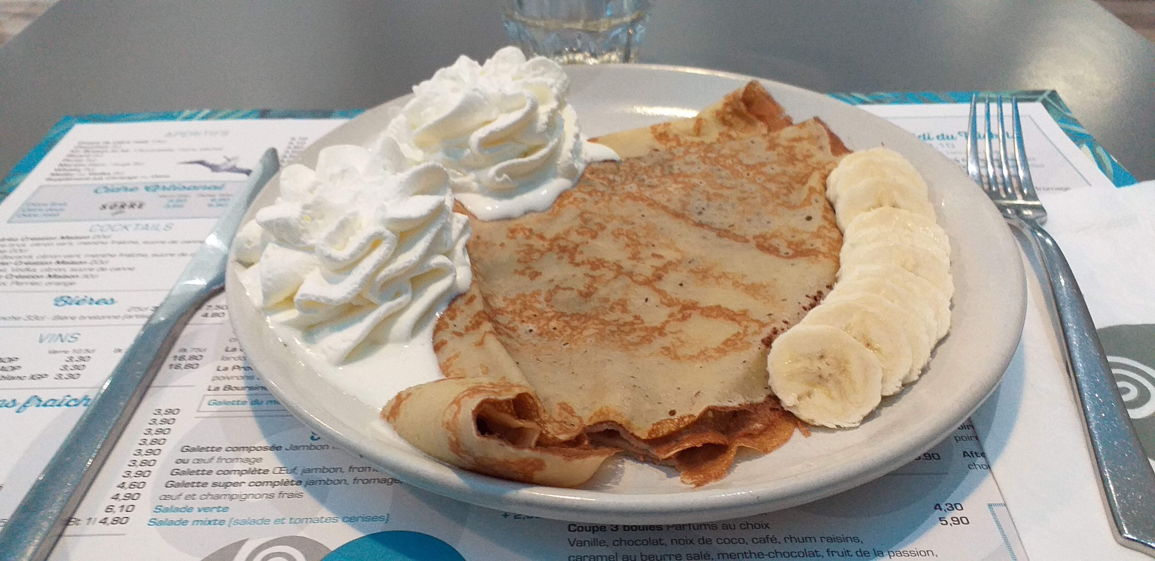 Une bonne adresse pour passer un moment agréable avec ses proches en mangeant une crêpe et en buvant du bon cidre. J’ai pris la crêpe au chocolat maison et à la chantilly. Je ne suis pas déçue même si le chocolat manquait un peu de caractère à mon goût. Il ne s’agit pas de la crêperie de l’année mais cela reste tout de même une très bonne adresse avec un bon rapport qualité prix. J’y retournerai avec grand plaisir.