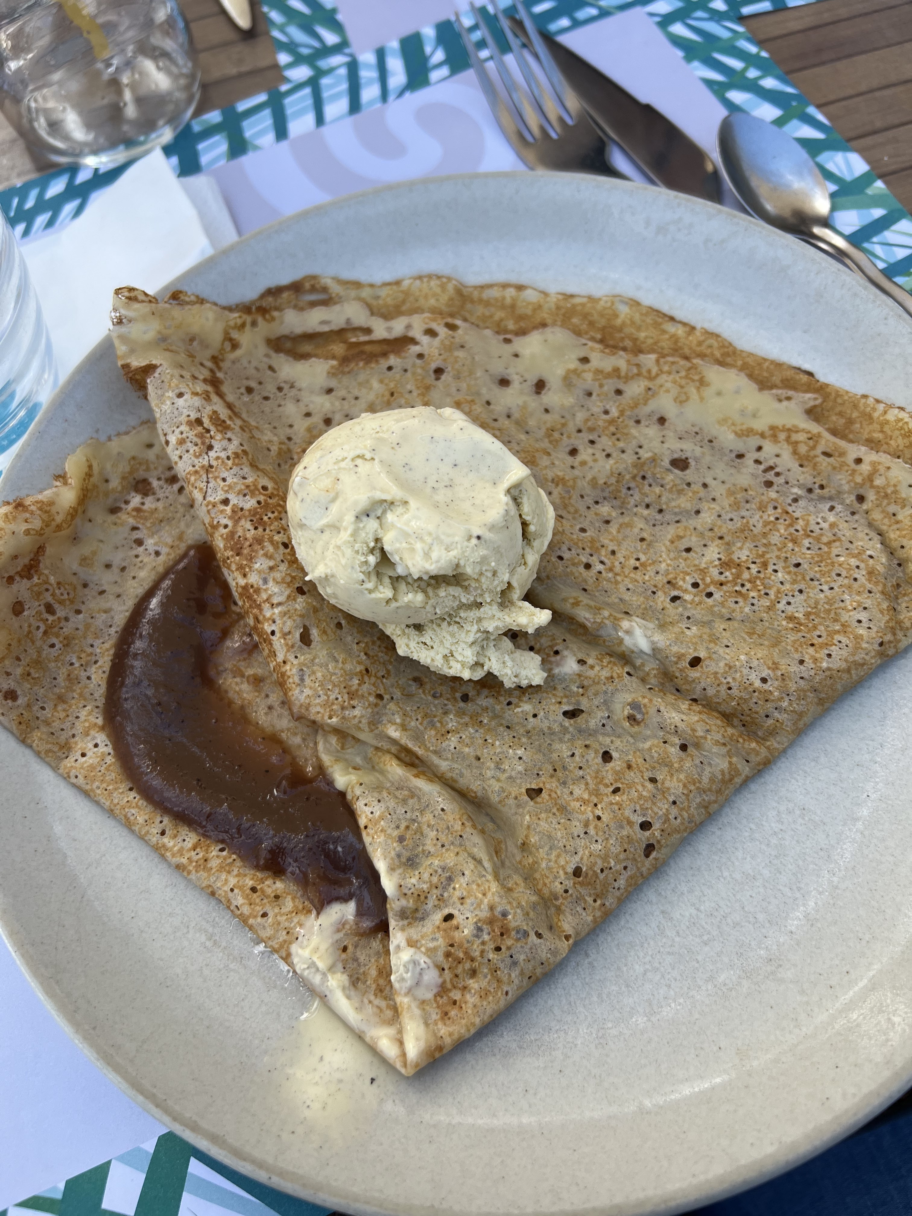 Il ne faut pas s’attendre à un une crêperie bon marché mais le cadre est cool et les crêpes sont succulentes. Le personnel très accueillant et le service impeccable.
