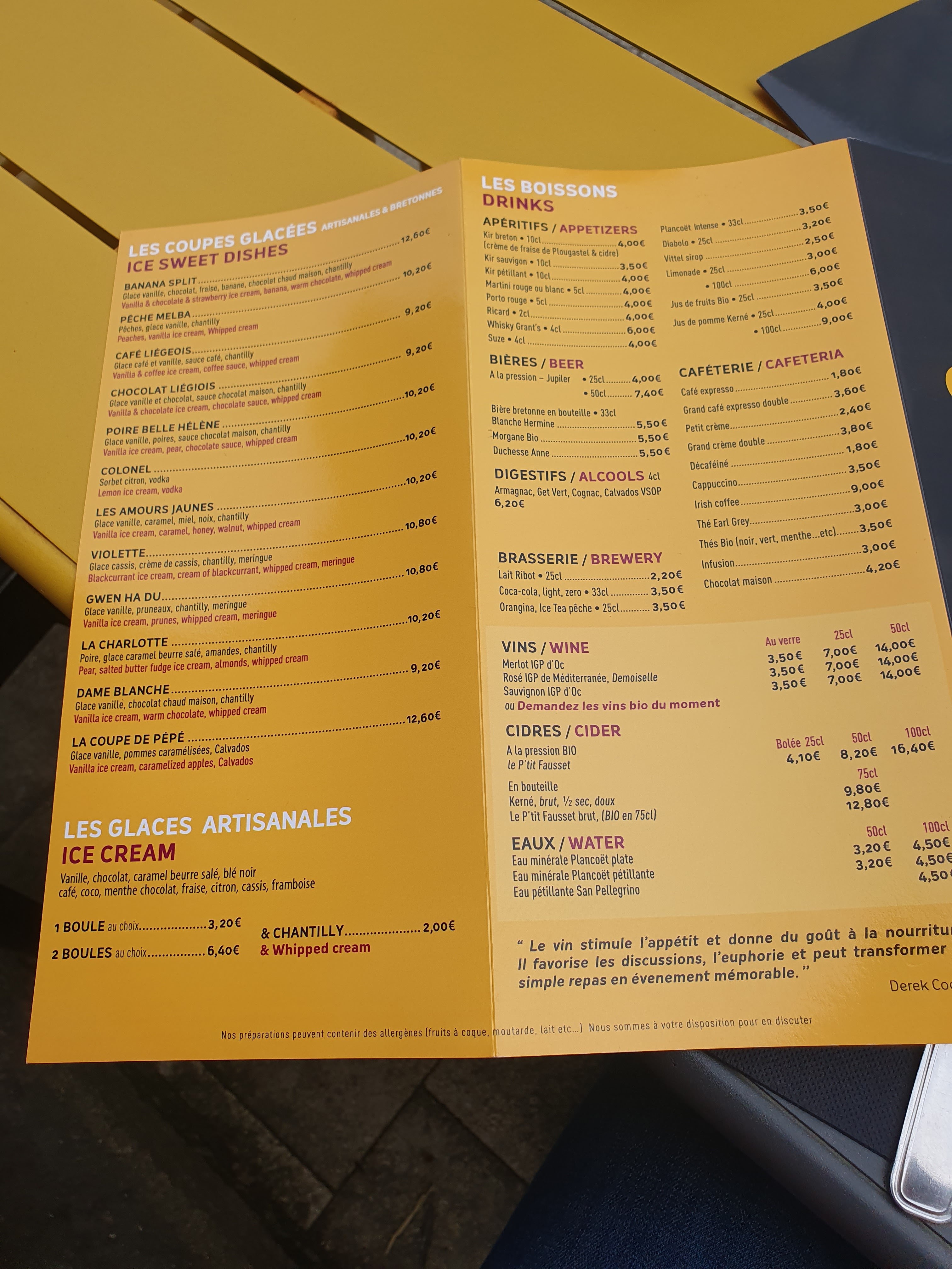 Agréablement reçu malgré l'heure avancée et notre petit chien, très bons produits notamment la galette saucisse de Molène. Excellent rapport qualité prix. Allez y si vous passez par Roscoff.
