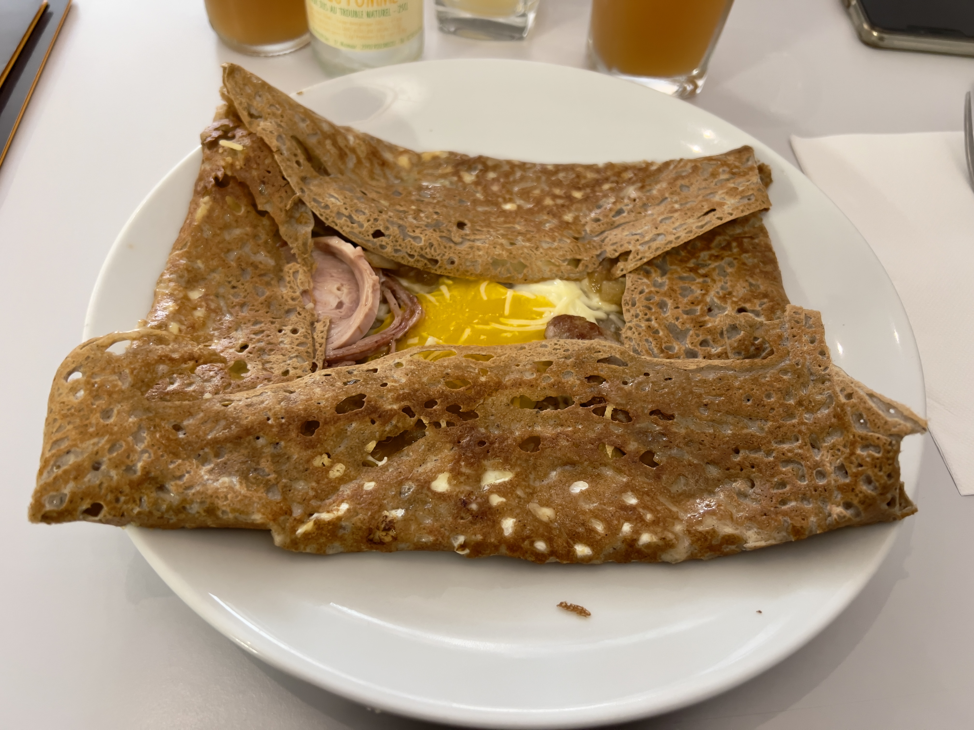 Second déjeuner de la semaine dans cette excellente crêperie. Les crêpes au sarrazin sont vraiment très bonnes (farine bio), la sauce des moules frites-une vraie sauce faite maison. Mention spéciale pour la crêpe dessert Tout sarrazin : un délice !