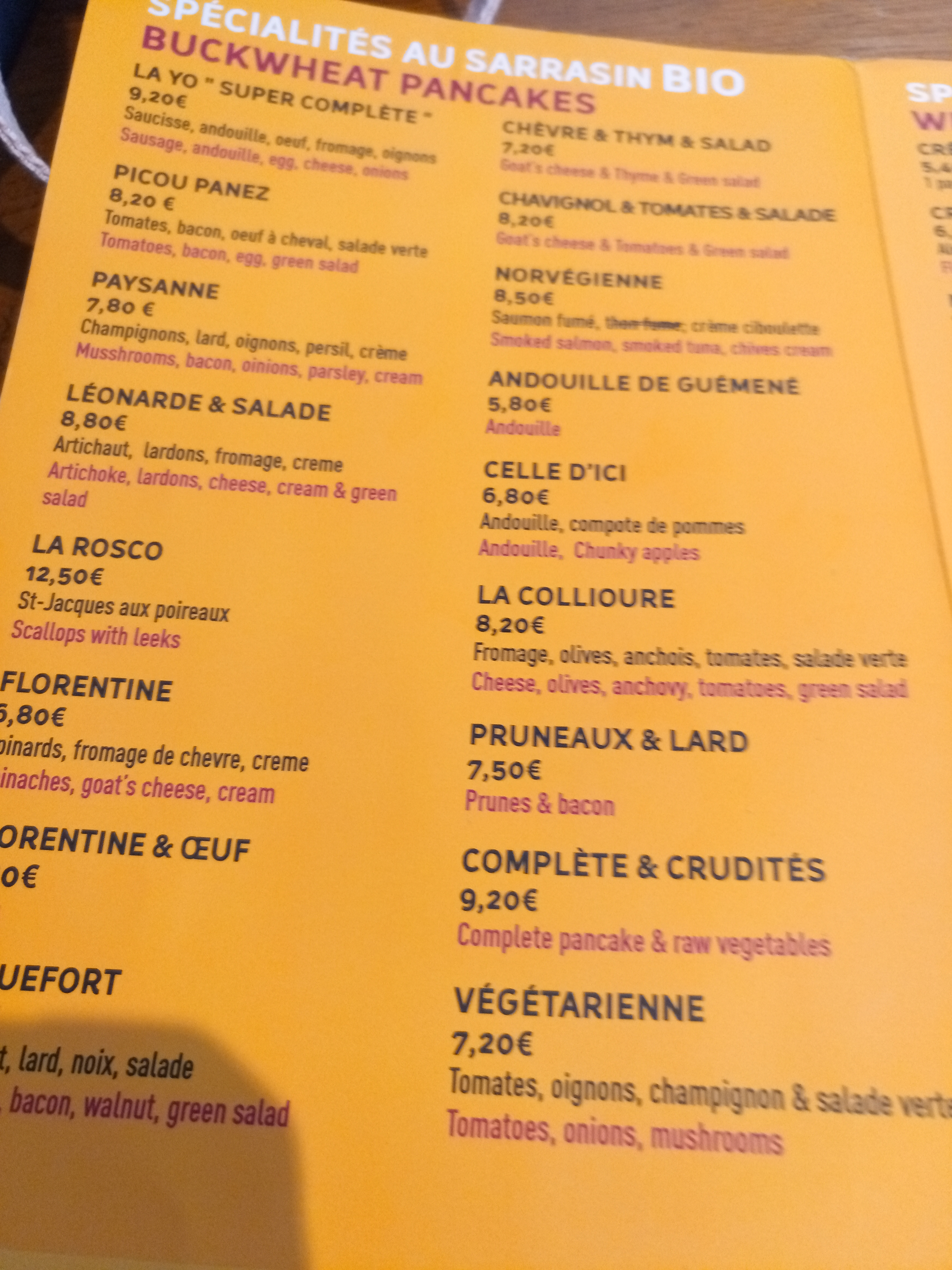 Délicieuses crêpes, qu'elles soient salées ou sucrées. Mention spéciale à la glace aux oignons qu'on ne peut pas goûter partout.
