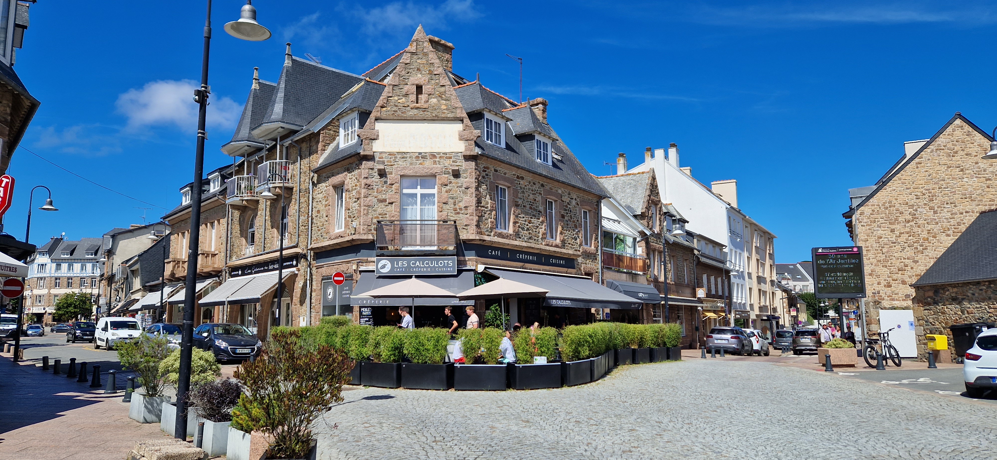 Testé le petit déjeuner. Service lent et pas de flexibilité du manager sur l heure limite pour commander la formule petit déjeuner. Avant 10h55 pas possible de commander une crêpe au sucre (seulement des pancakes). A 11h05 nos amis n ont pas pu commander de pancakes ... Service lent ( il ont oublié mes pancakes... Emplacement plein centre de Perros avec de jolies maisons.
