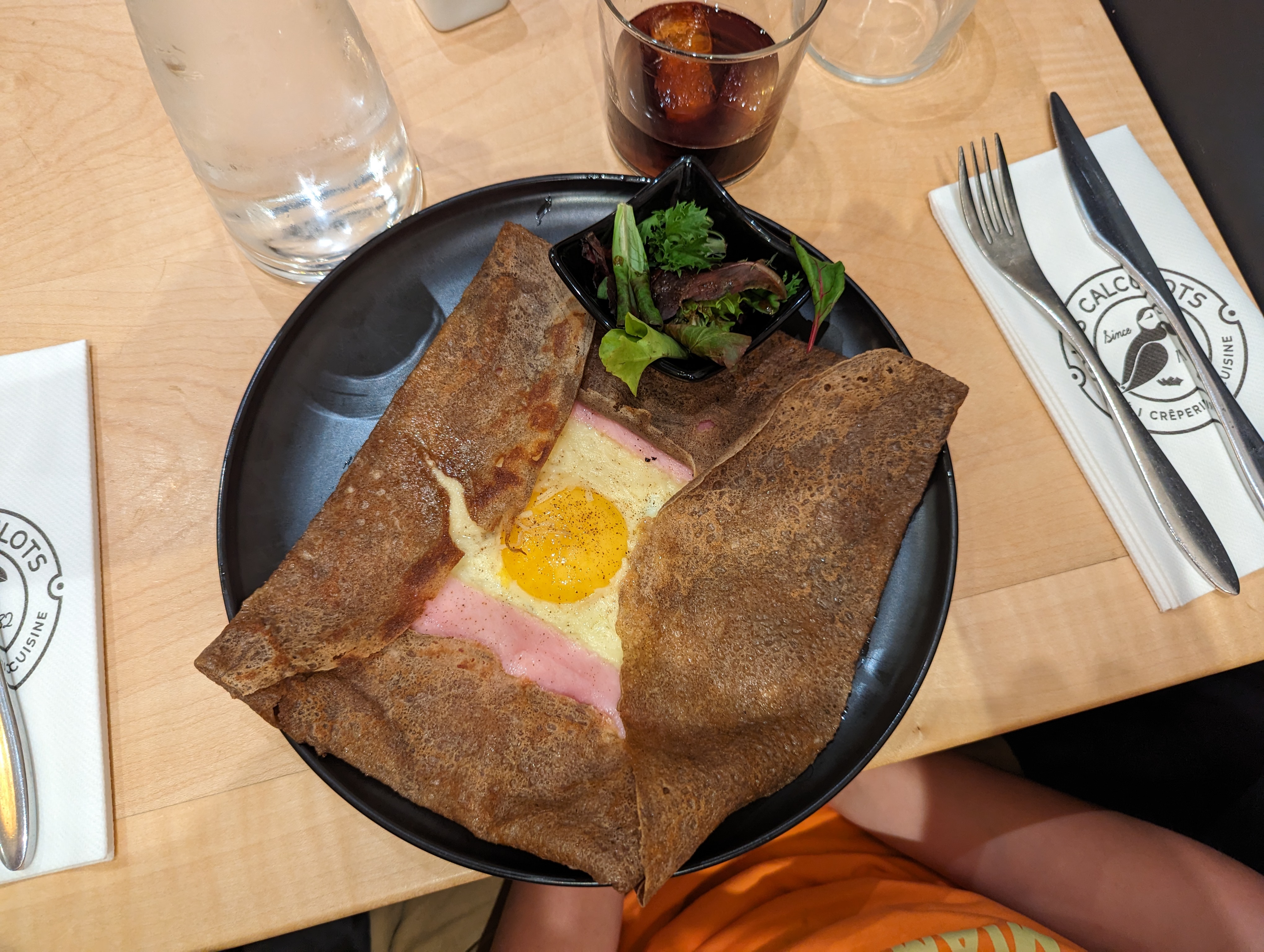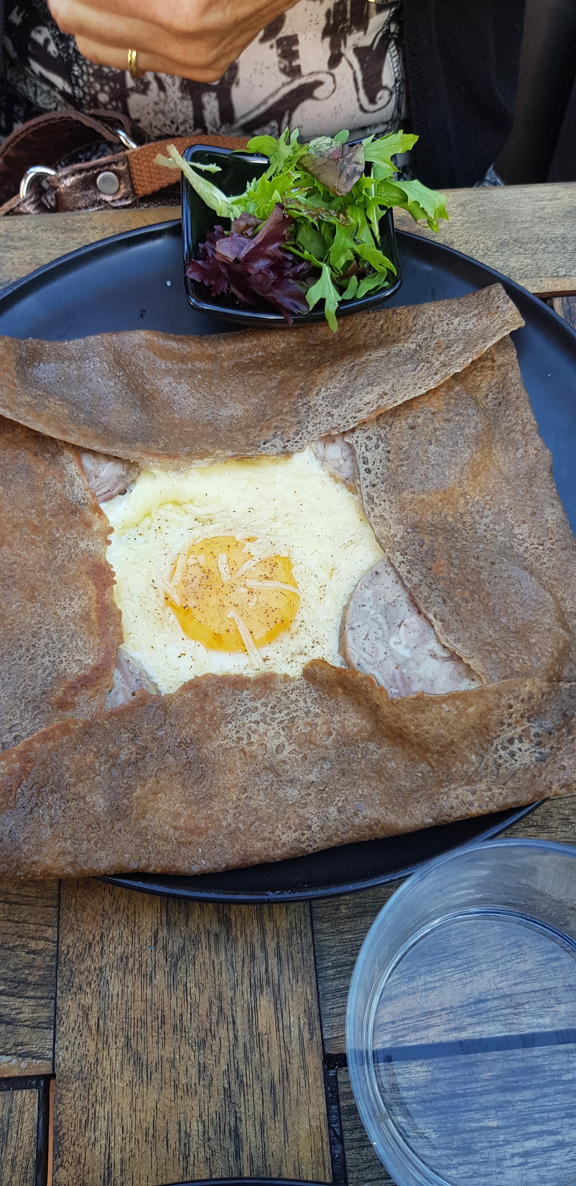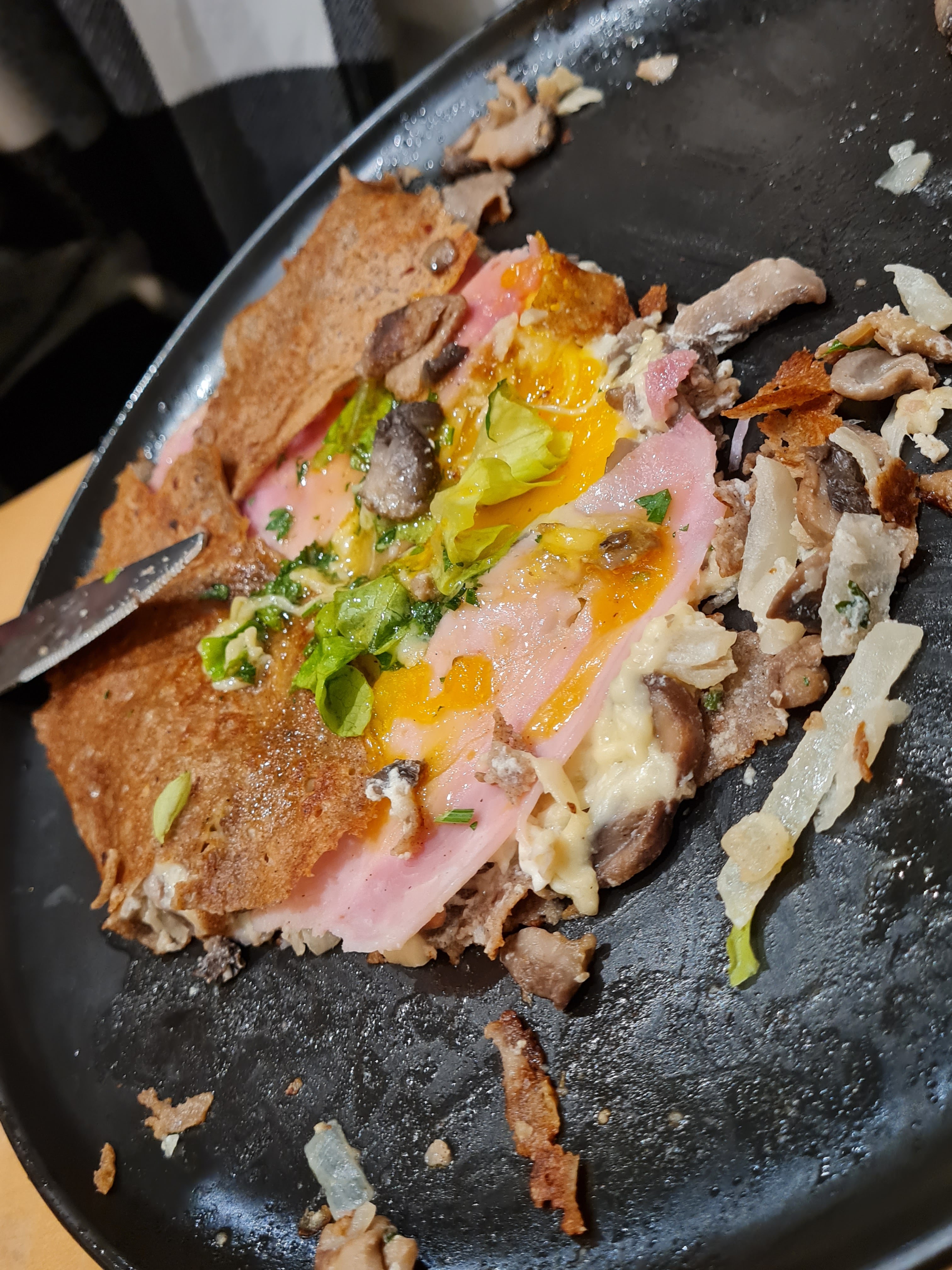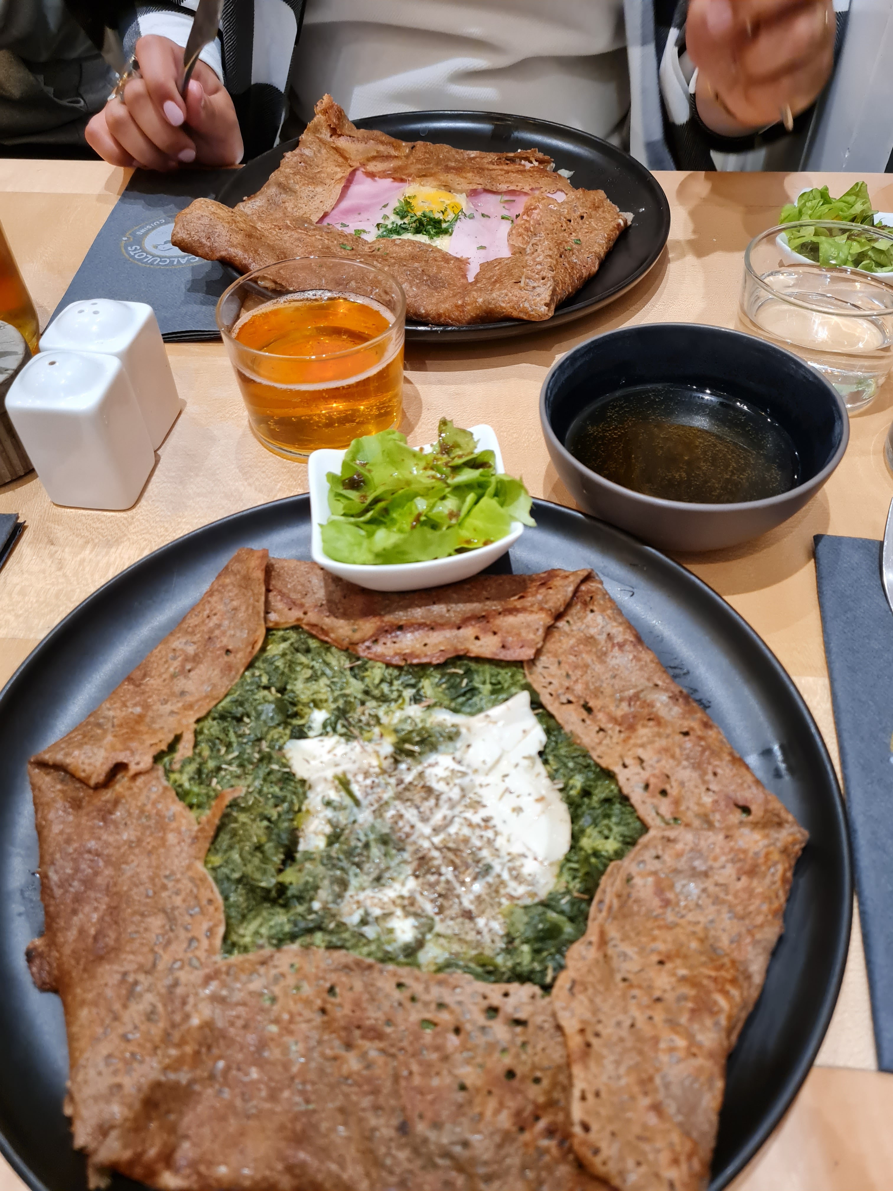 Galette jambon tomates oignon champignon pas mal mais manquant un peu d'assaisonnement et de caramelisation pour la poelé tomates oignons, la galette fromage saucisse de mon compagnon etait quand à elle bien meilleure :) Staff et ambience agréable :) meme si la 25cl à 4,60e fait un peu mal au c**