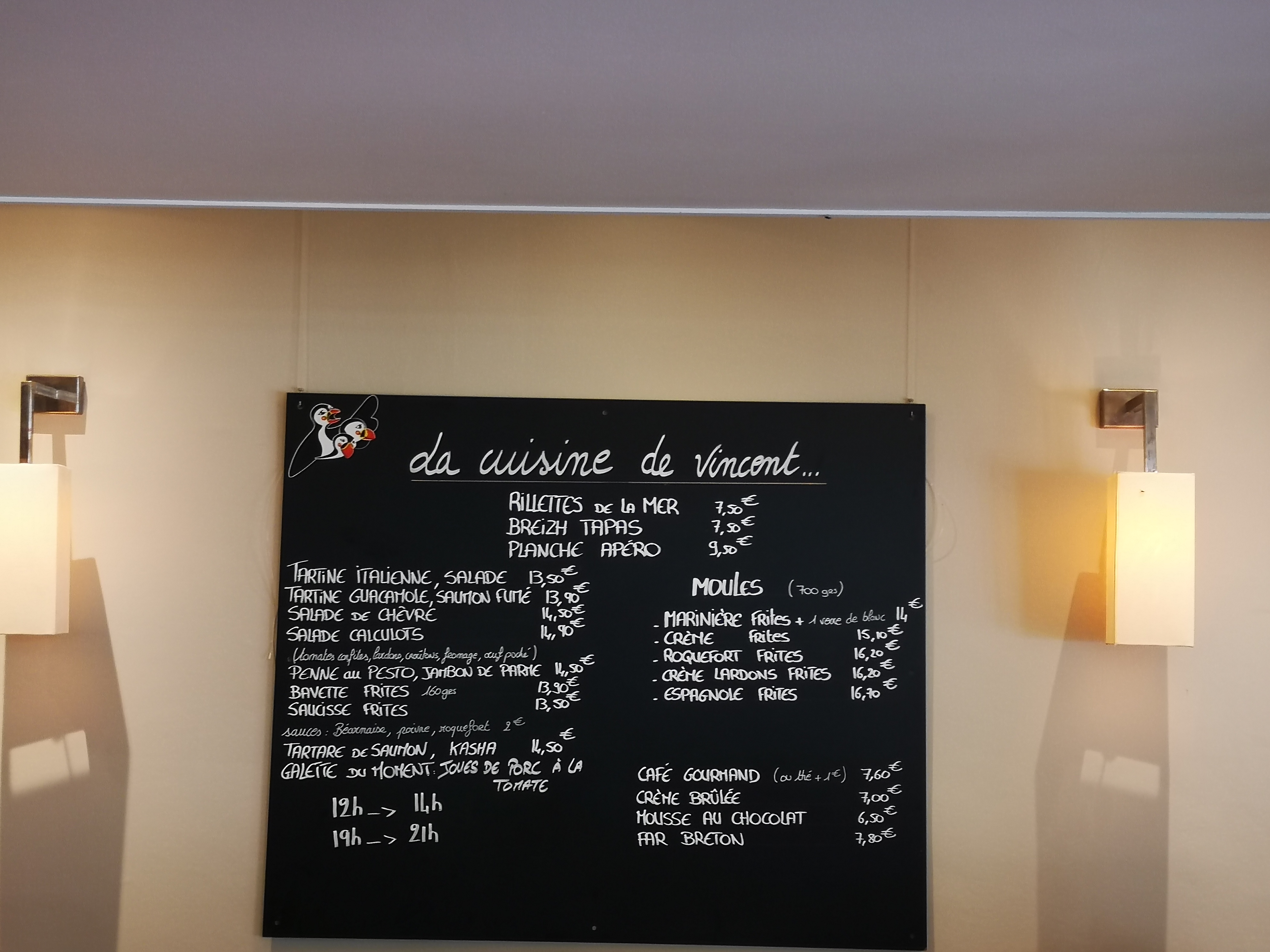 Carte très cher pour la qualité !! 15,30€ des moules à la crème avec une cuillère de crème fraîche et des frites surgelés ça fait cher… Nous avons attendu la fin du repas avant d’avoir une carafe d’eau (demandée 2 fois)!! Je ne recommande pas
