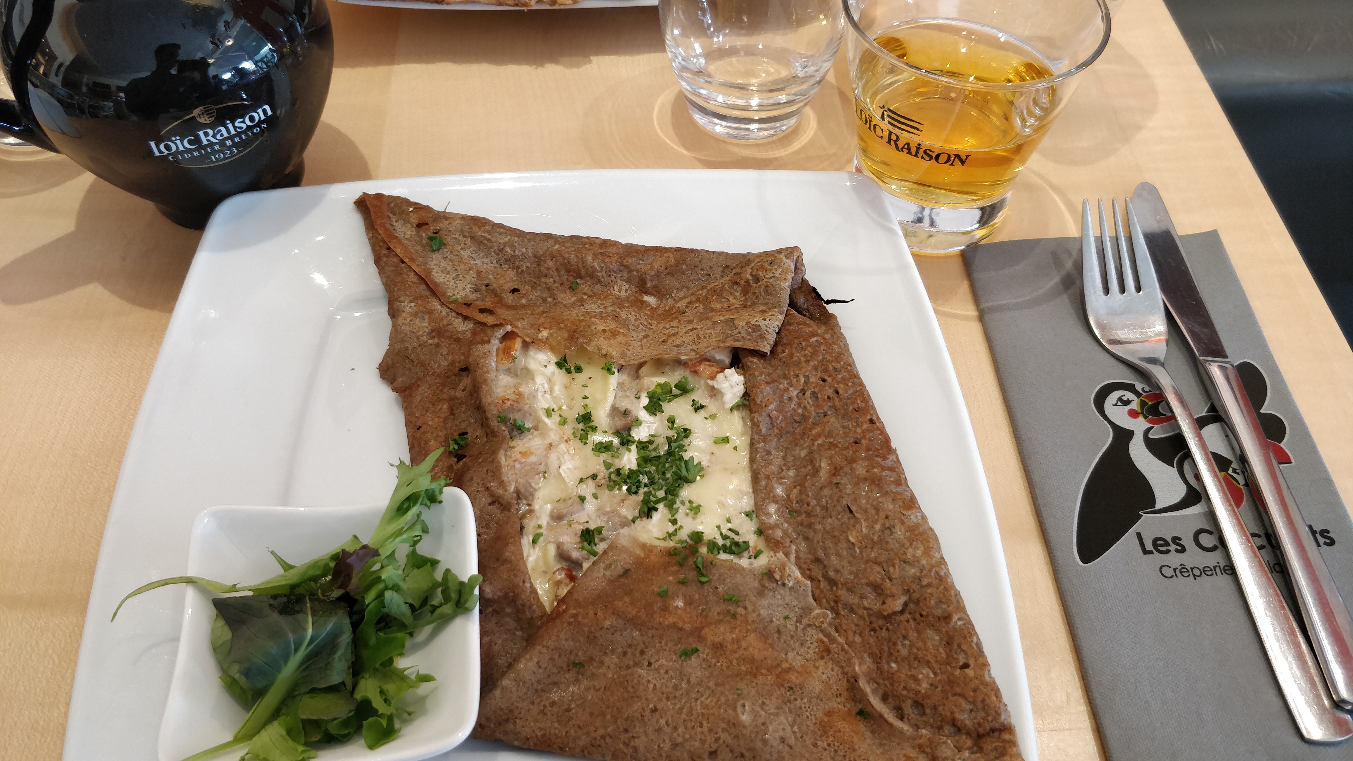 Les galettes sont médiocres : la pâte a un goût d'huile et pas de beurre, et il semble peu probable que ce soit 100% sarrasin. Et surtout, une simple question sur la provenance d'un produit nous vaut de nous faire envoyer paître par la serveuse. Triste que ce genre de professionnels représente notre belle région auprès des touristes.