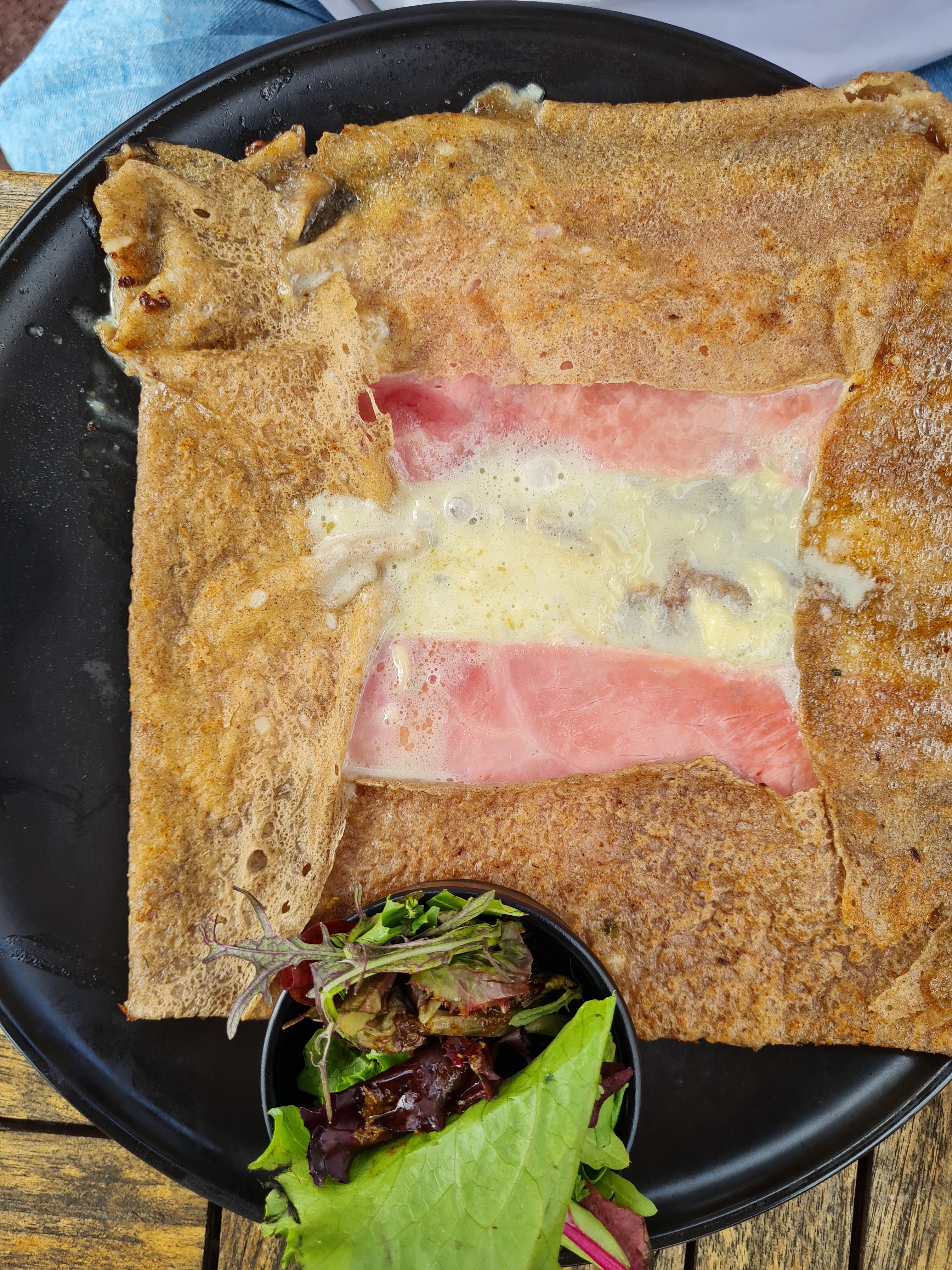Malgré une météo capricieuse, nous étions en terrasse, service rapide et bienveillant galettes bien garnies et bonnes. Café gourmand pris avec de délicieux petits gâteaux dont le petit moelleux chocolat