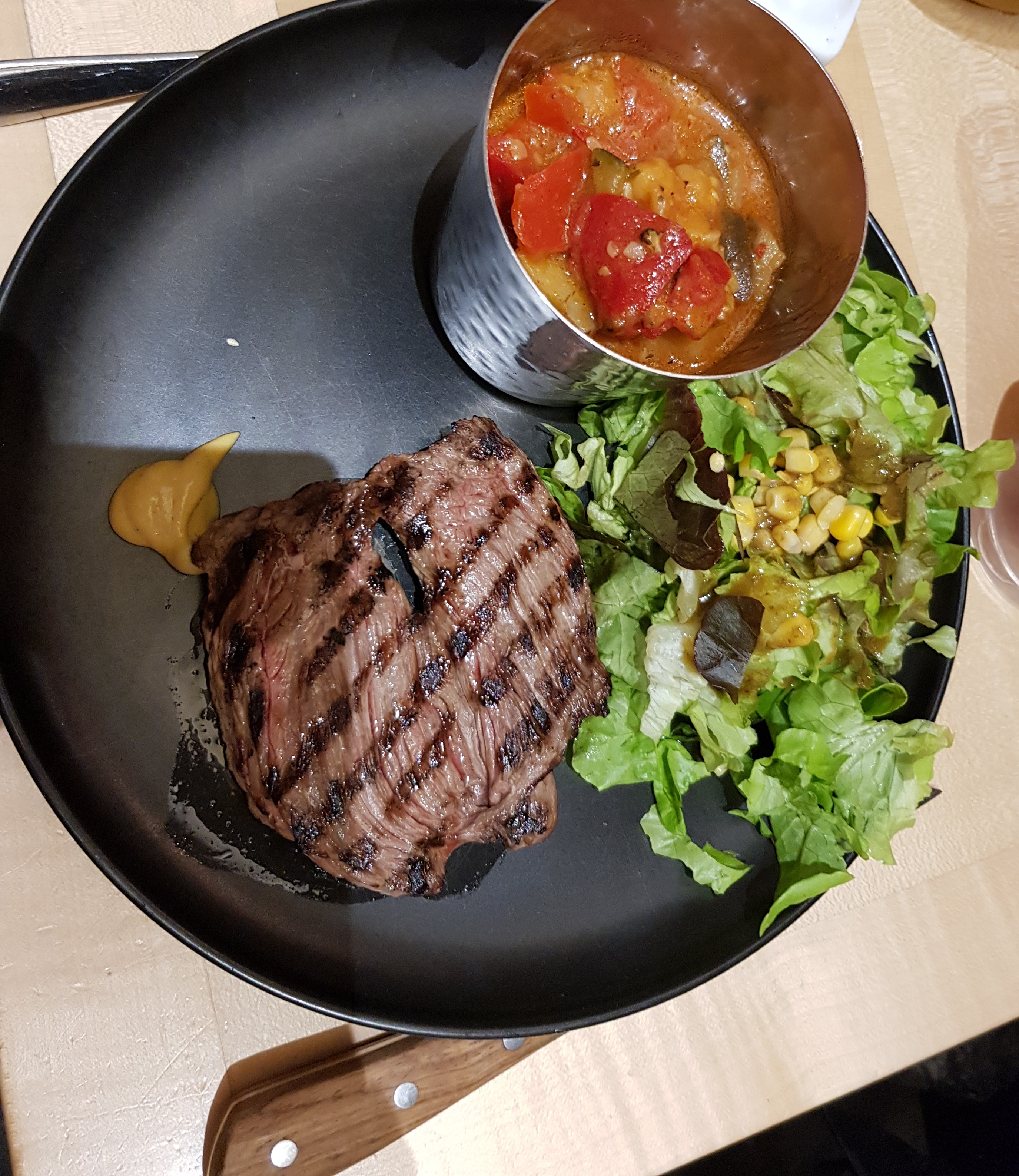 Très bon restaurant, la bavette était très bonne, les frites et la galette sucré au caramel beurre salé aussi, les ingrédients semblent très bon, mais apparemment la salade manquait d'assaisonnement, ce qui a été rectifié après qu'on ai demandé de la vinaigrette. On recommande !