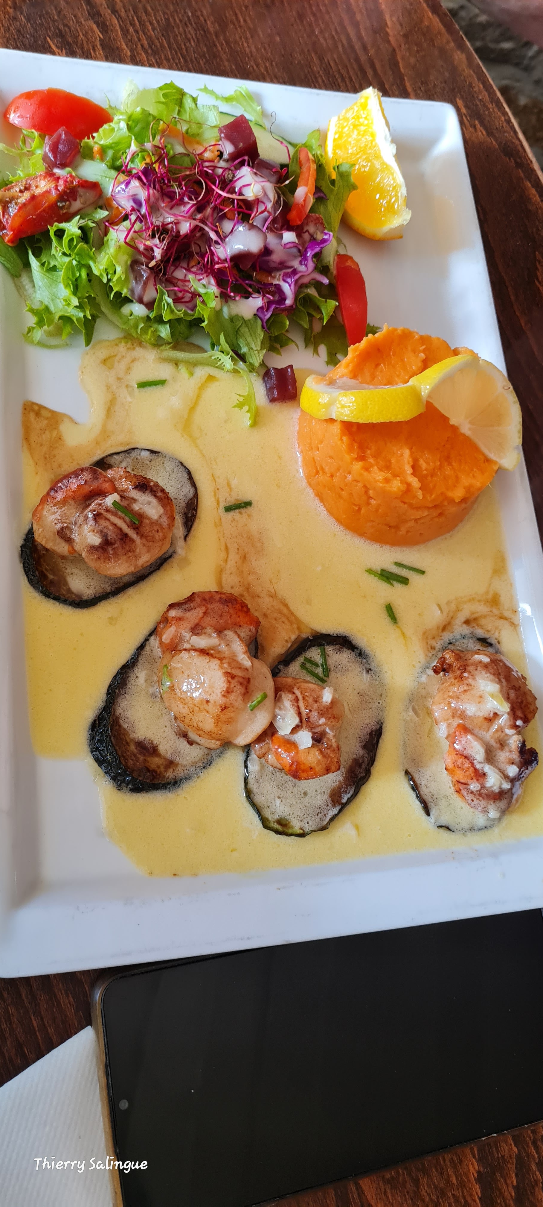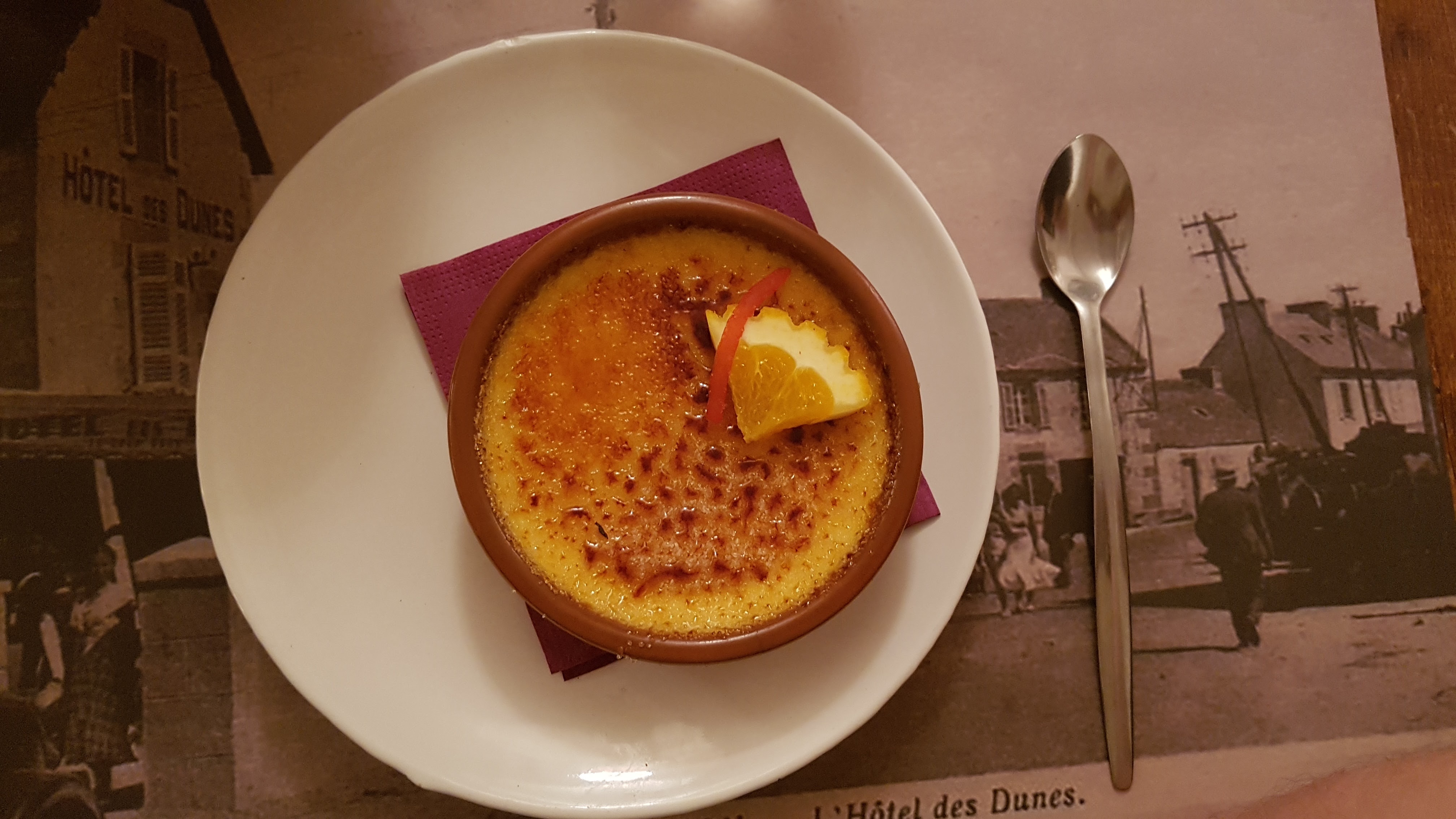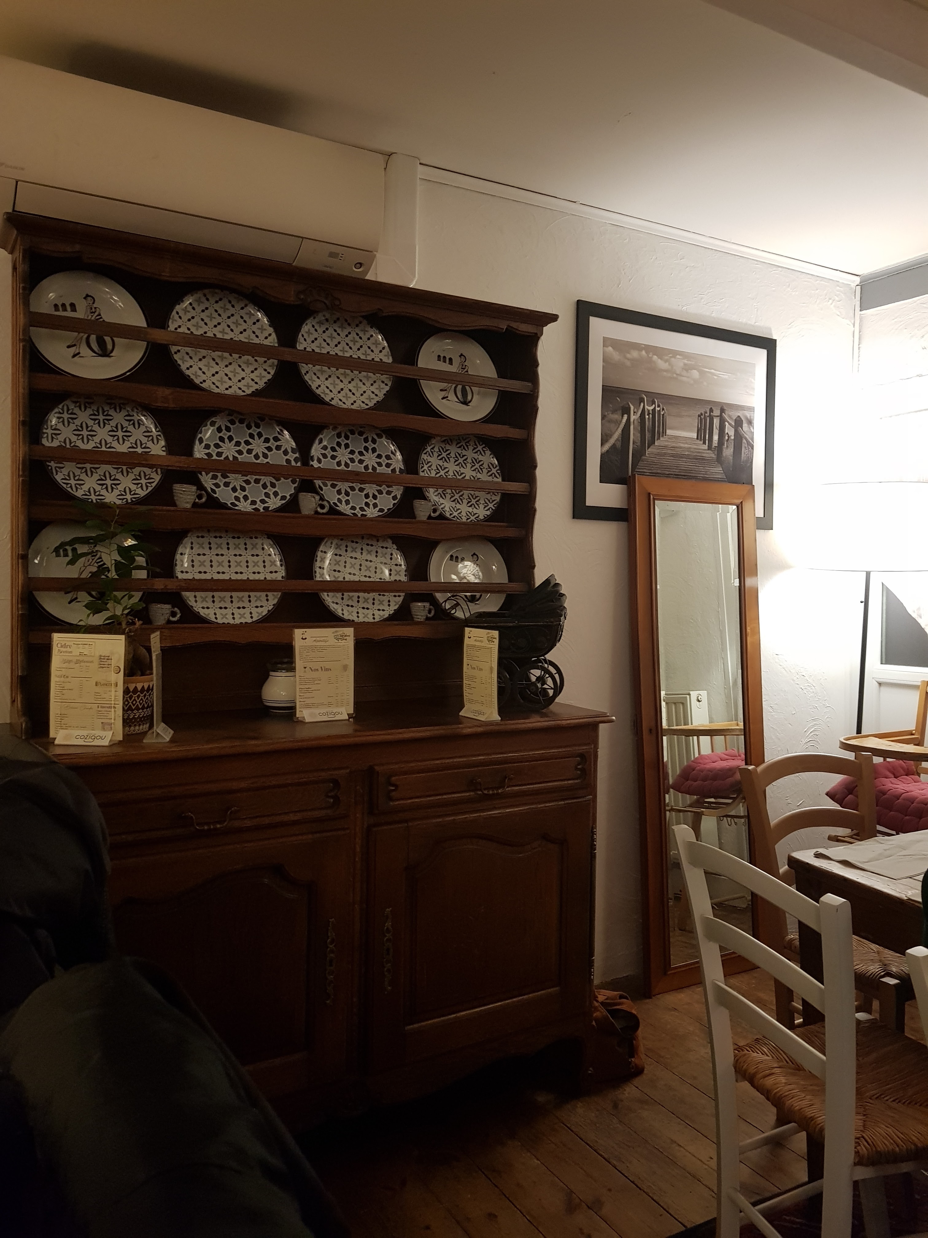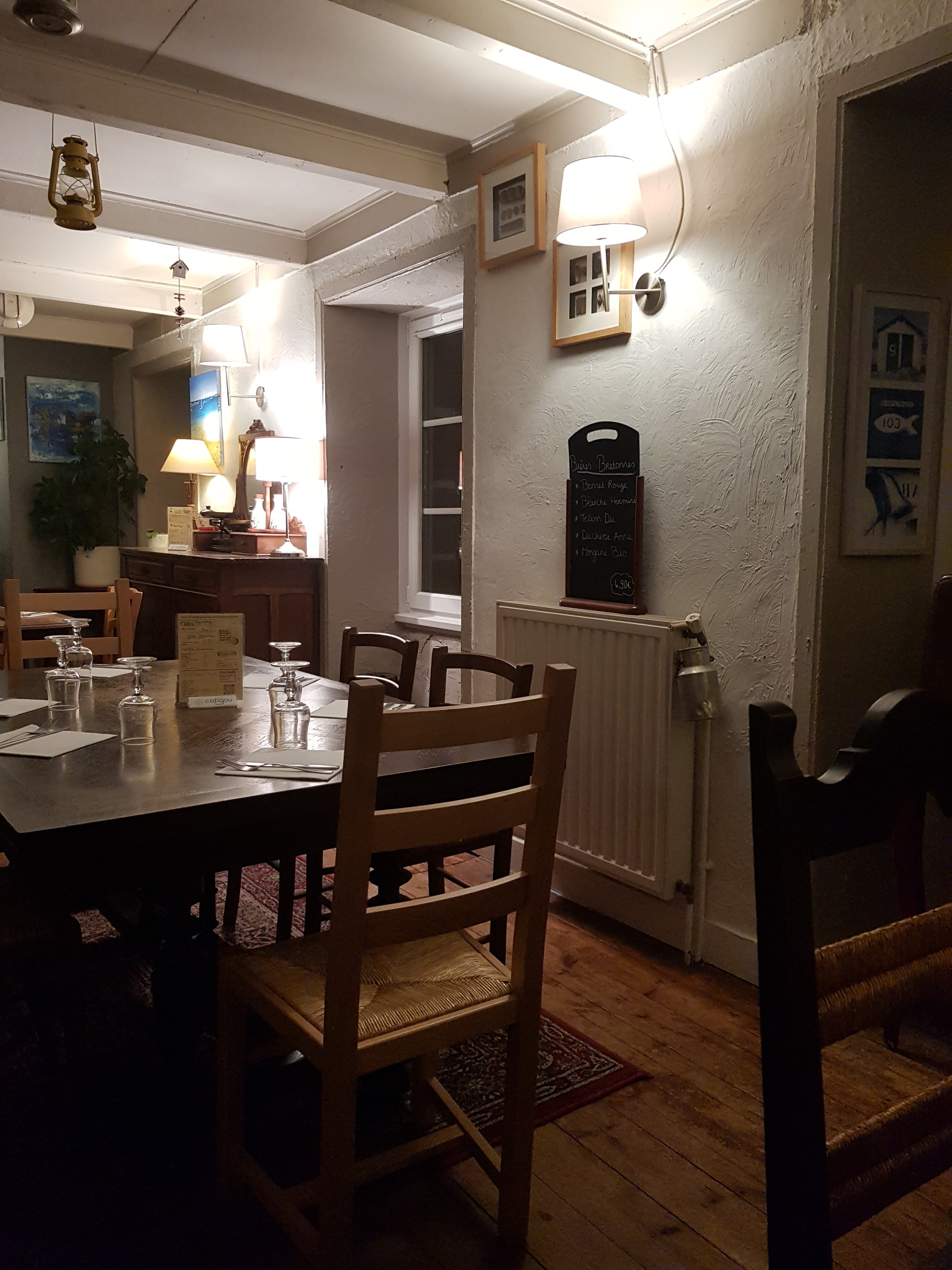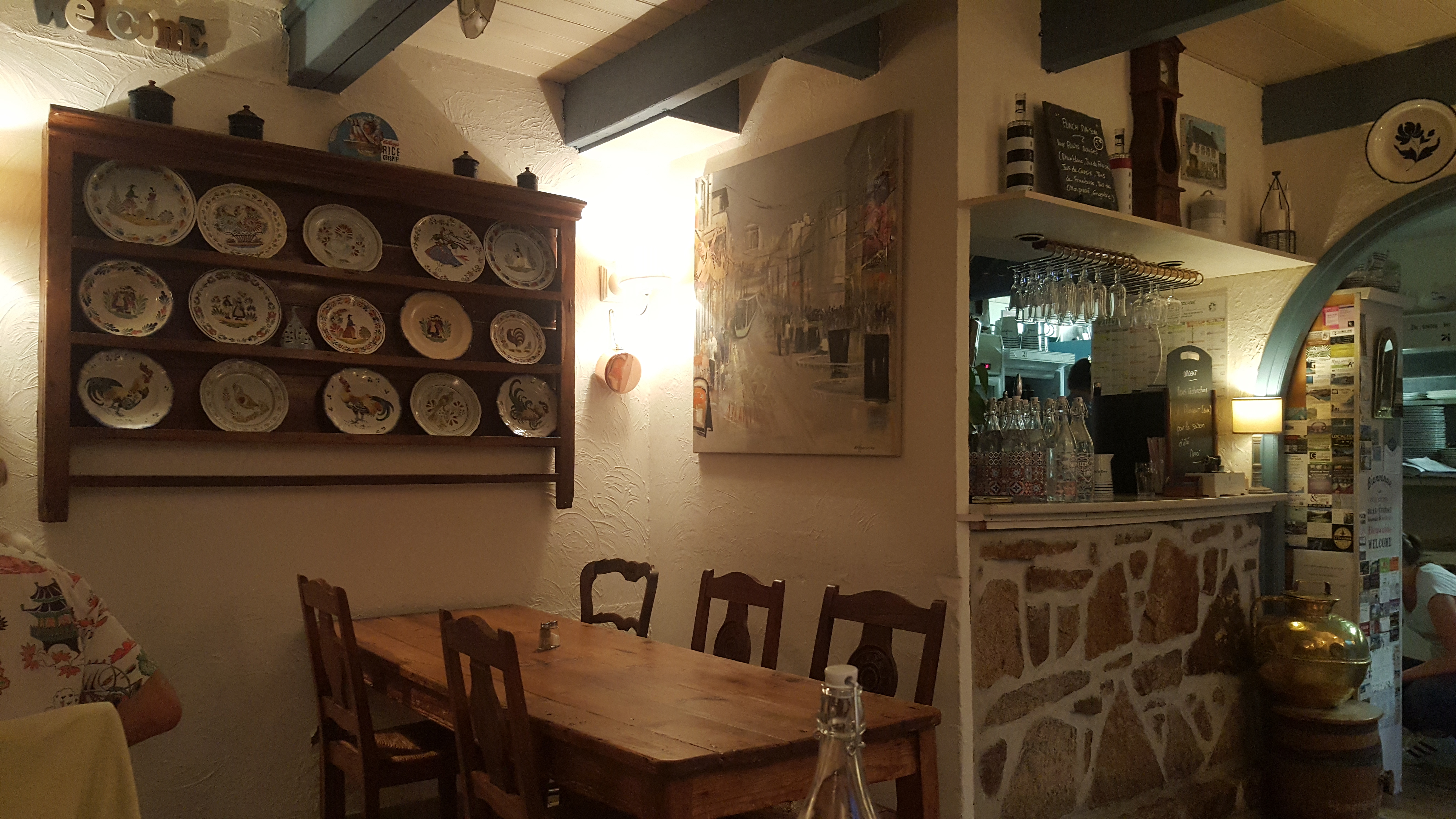 Deux expériences contrastées dans ce resto, mais avant tout : Une équipe extrêmement réactive, contente d'être là et ça se sent dans l'assiette. Le cadre est remarquable, authentique, magnifique meuble ancien et assiettes suspendues comme chez grand-mère ^^ Impression contrastée parce qu'un peu déçu par l'escalope Normande pas très généreuse et nervée mais rattrapée avec classe par la crêpe flambée au rhum et banane qui n'était ni plus ni moins que ce que j'ai pu mangé de meilleur, point. Deuxième soir, Moules frites à la Bretonne. Une baffe culinaire. Il faut aimer le sel, mais que c'était bon ! Un immense merci à toute l'équipe et particulièrement à celle qui a simplement décidé de snacker des légumes au beurre ;)