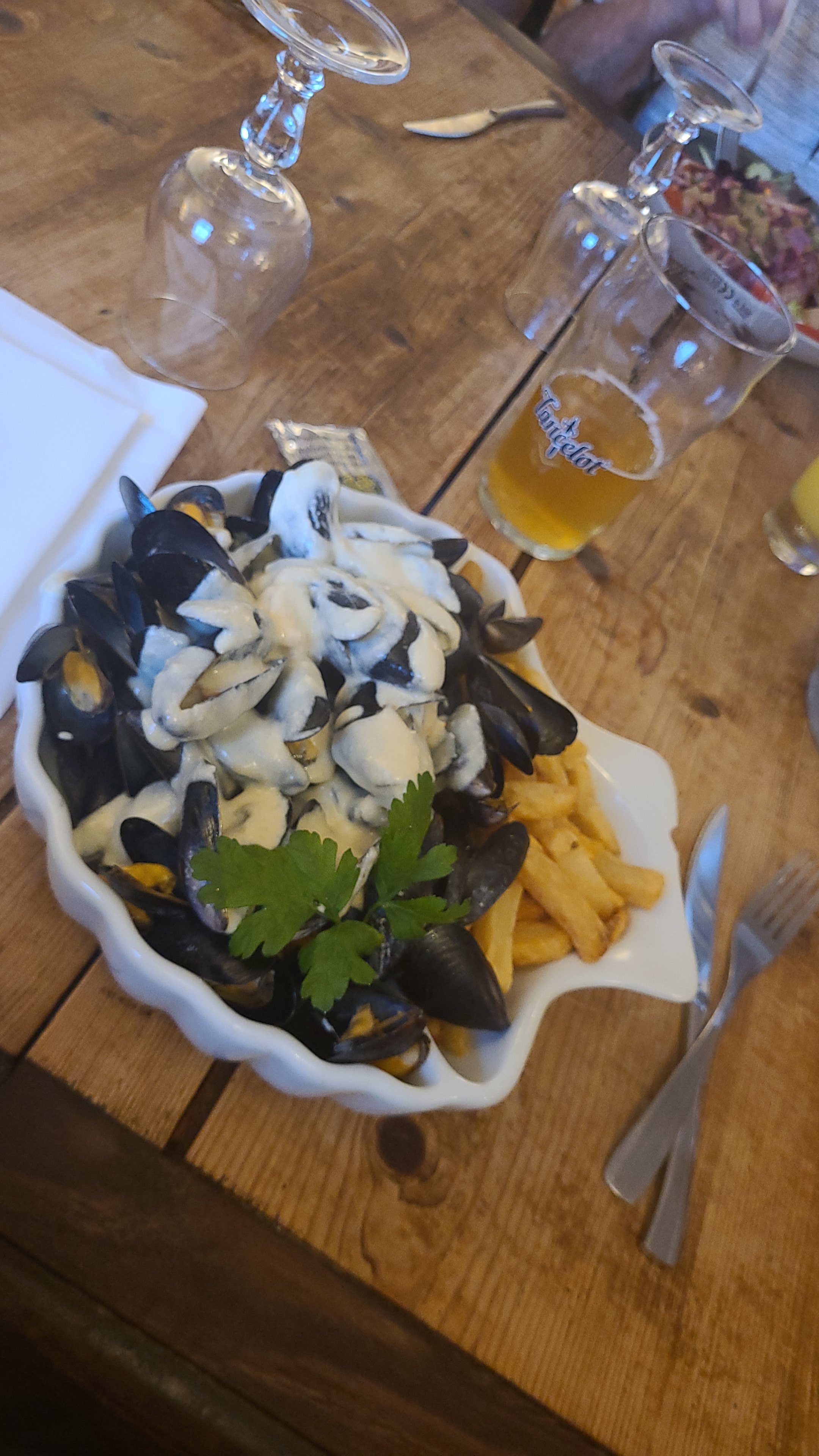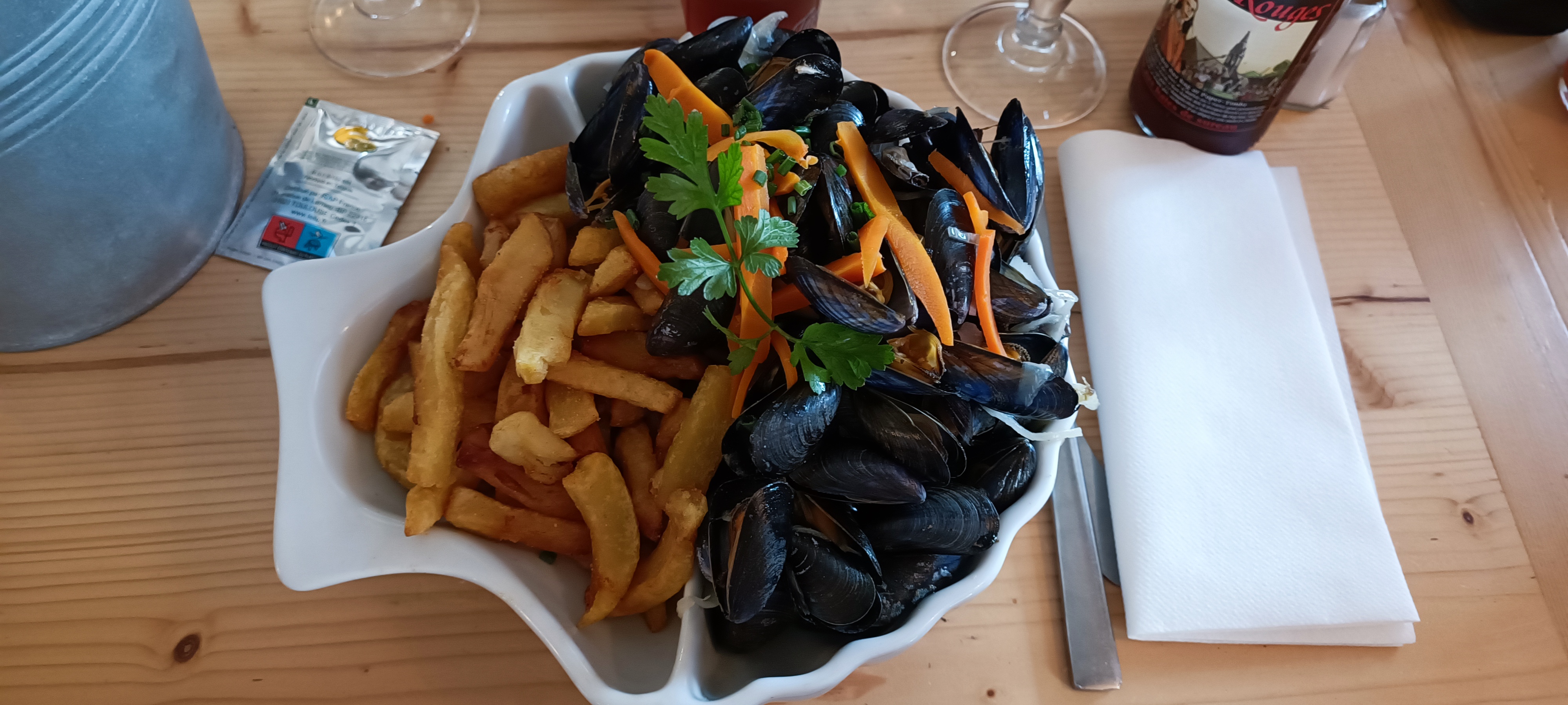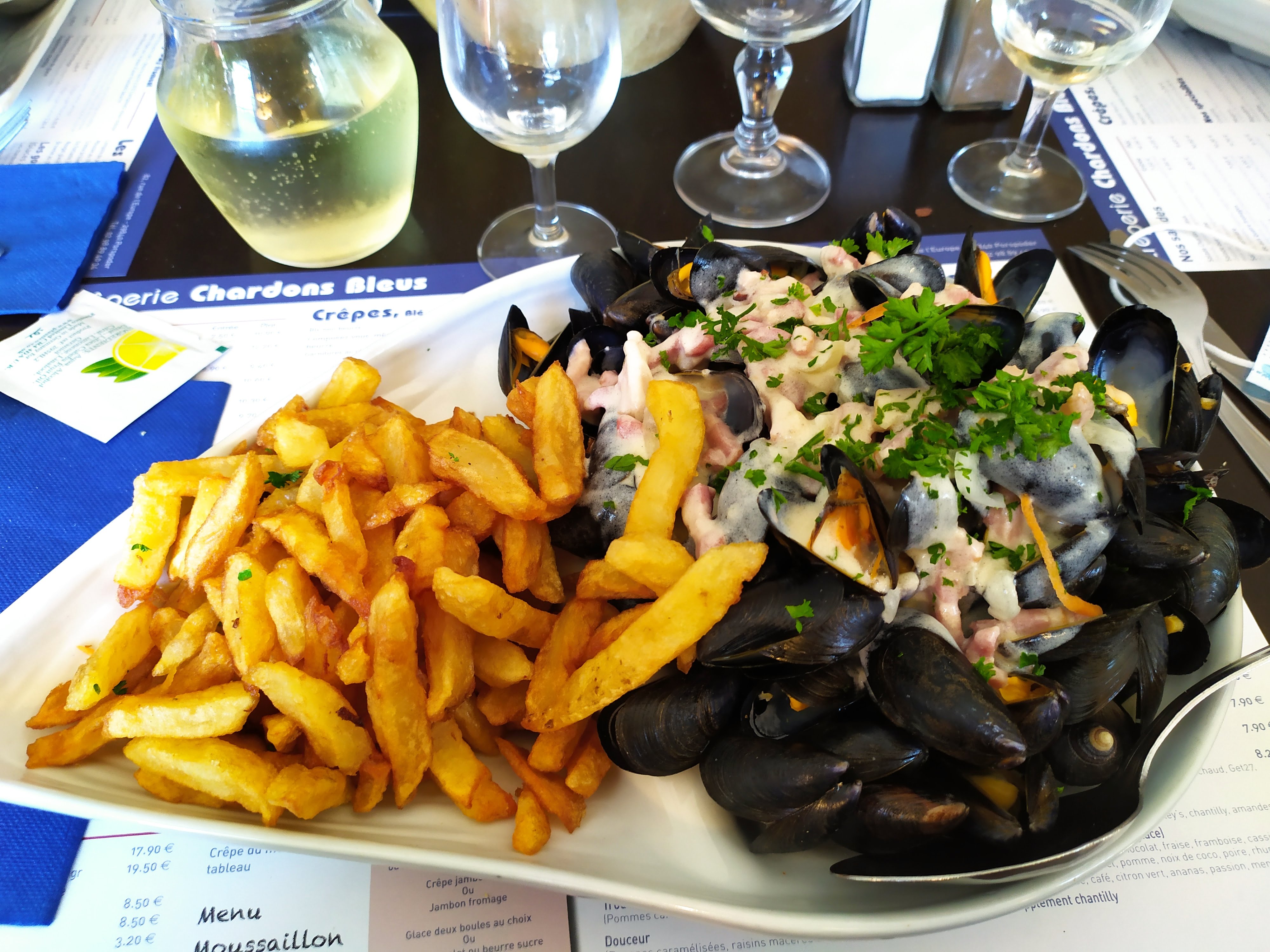 Accueil chaleureux et service irréprochable tout le long du repas . Les moules sont top et que dire des frites qui sont parfaites( chose très rare dans ce type de restaurant ) . Rien à dire sur le rapport qualité/ prix, seulement 13€ en moyenne pour une quantité très généreuse de moules/frites et en moyenne que 7€ pour une crêpe salée... Je recommande chaudement cet établissement qui frôle la perfection dans son domaine .