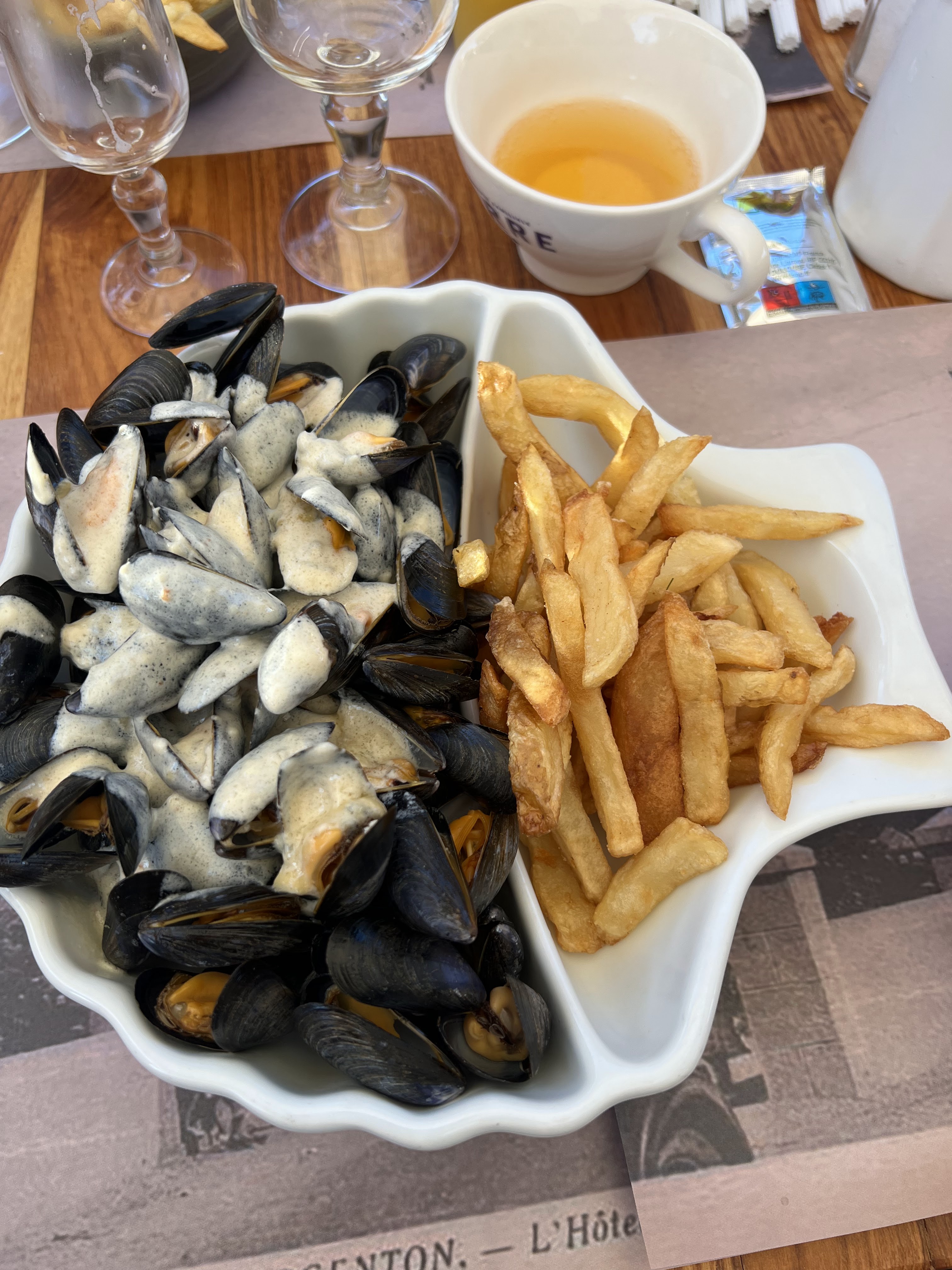 Nous sommes passés à 13 h en deuxième service pour manger les restes de moules et de frites réchauffées baignant dans l una sauce. Ce n'était vraiment pas bon ! Décevant pour ce restaurant que je connaissais bien et ne mérite pas qu'on lui fasse de la publicité .