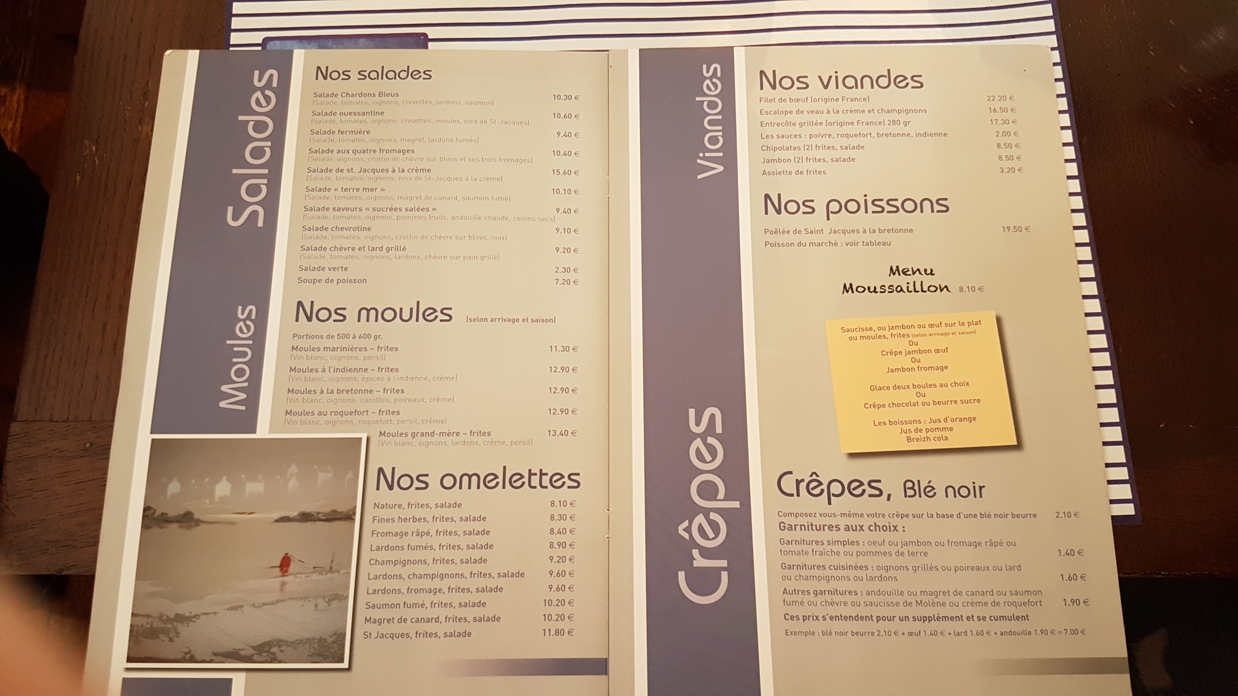 Très décevant. Moules marinière sans échalotes, moules de très petites taille. Frites mal cuites. Crêpes dessert sans saveur . Et cerise sur le gâteau, prix en augmentation. Je recommande de passer son chemin.... Business business, c'est bien dommage