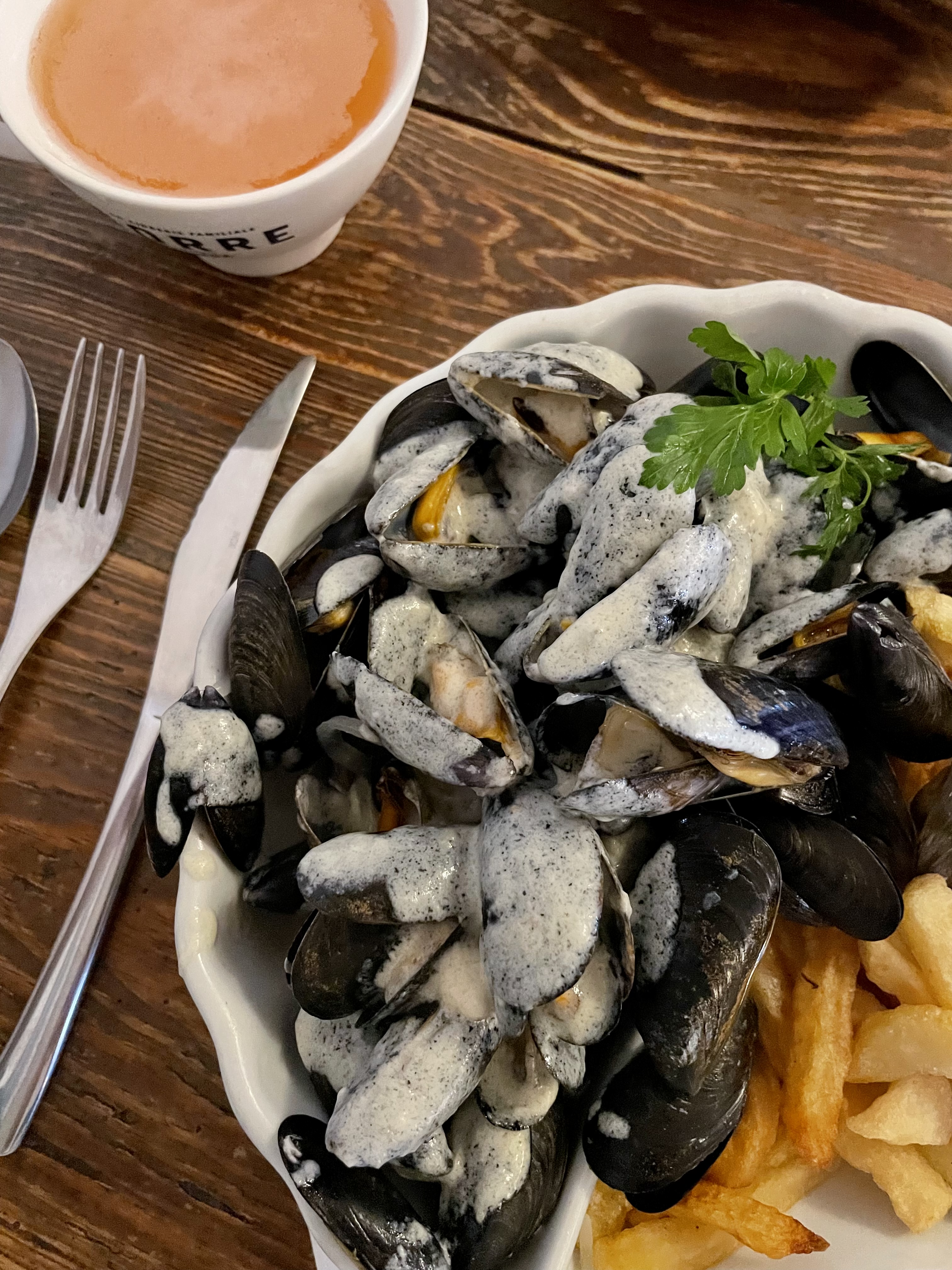Crêperie très chaleureuse Moules à la bretonne délicieuses ! Serveuse et serveur au top et à l'écoute !