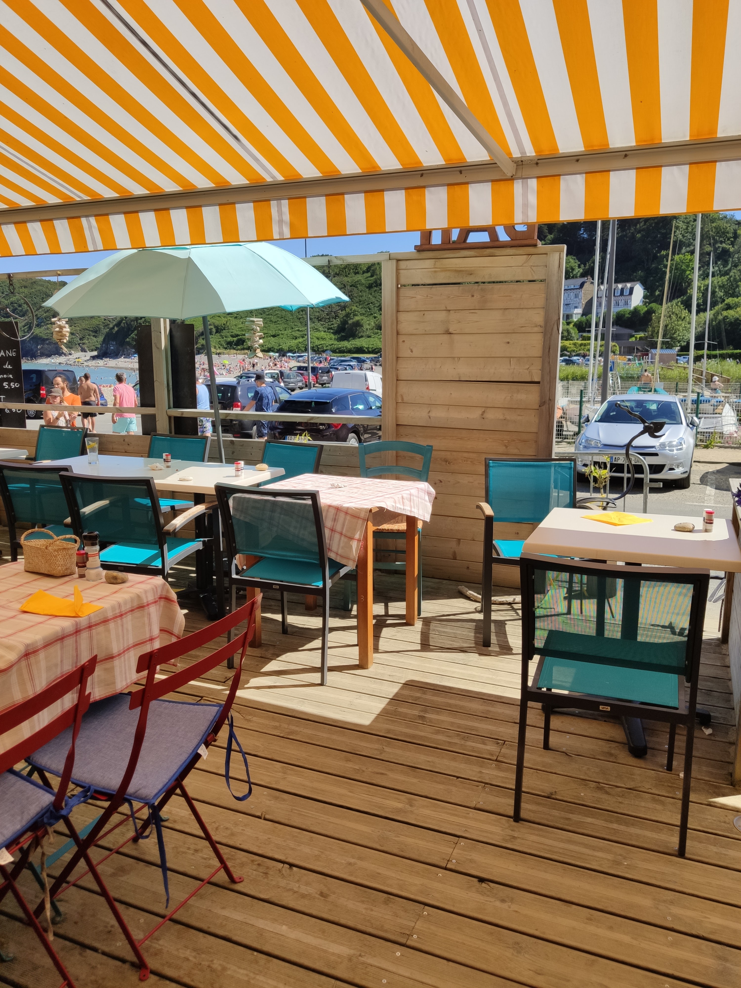 Accueil très sympathique. Service dynamique et souriant. Cuisine très appréciée avec crêpes, sardines, des légumes frais et d'excellentes glaces. Un vrai bon moment au bord de cette petite plage. Merci à cette jeune équipe en service et en cuisine