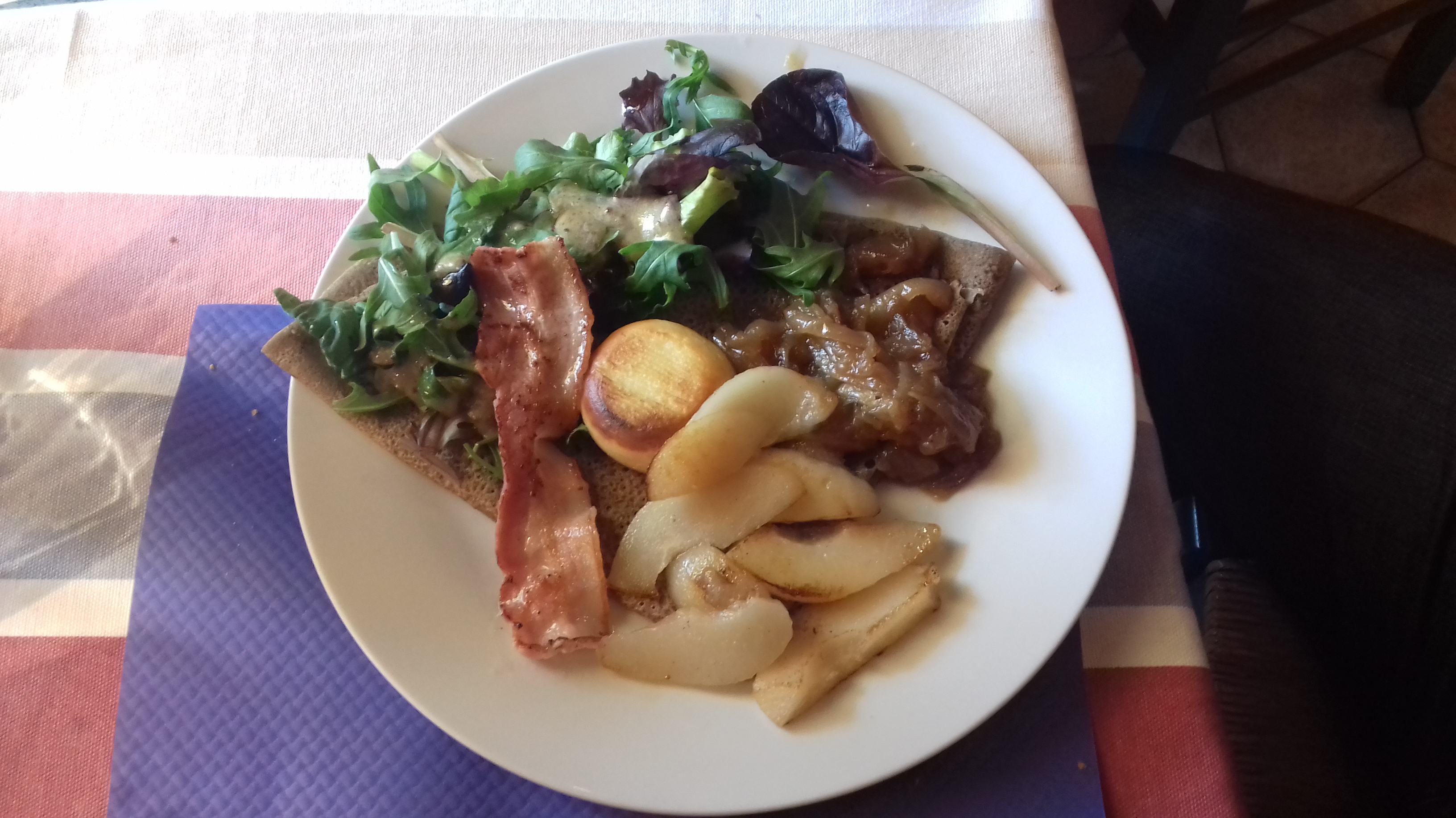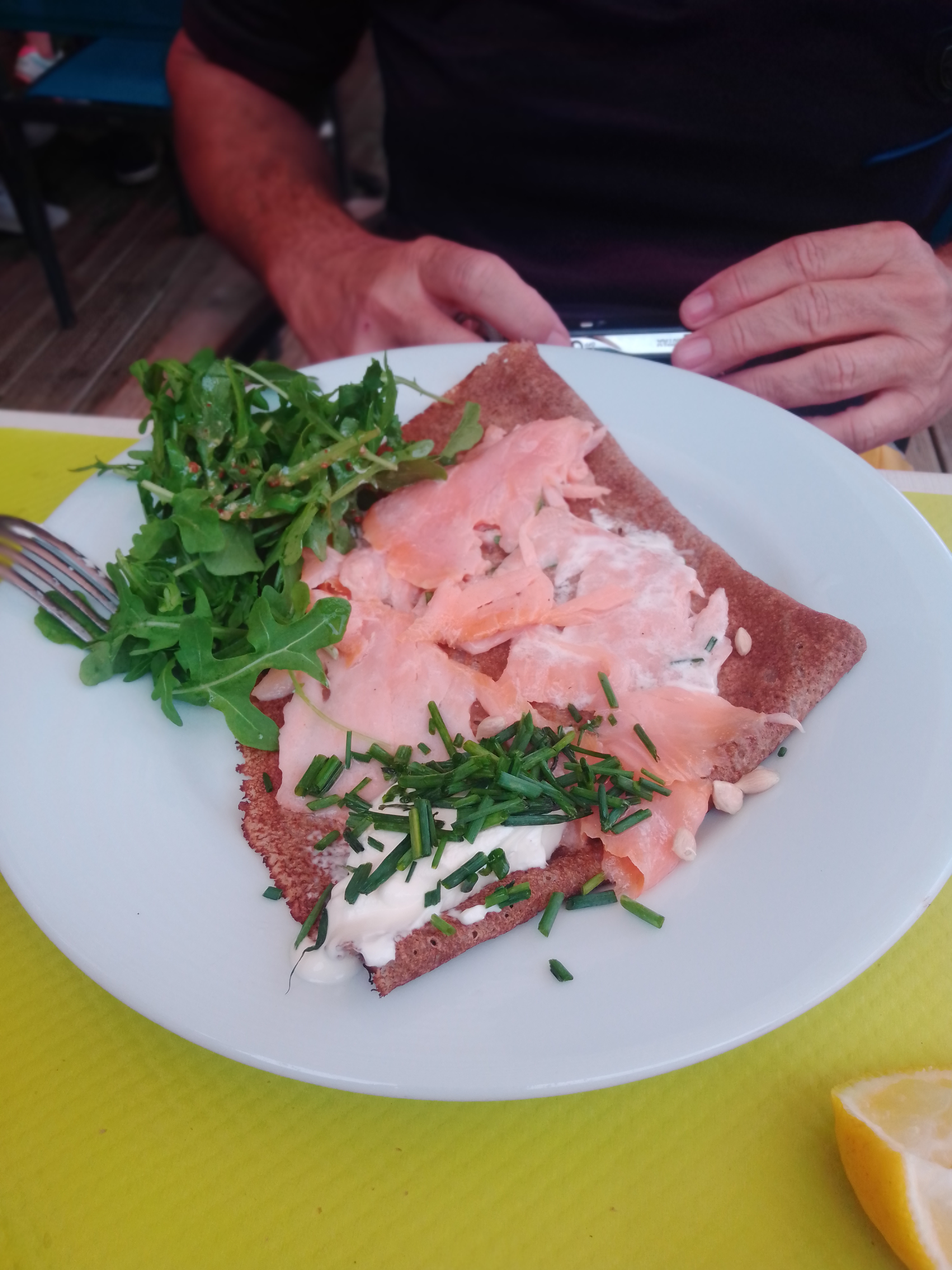 Cuisine parfaite. Les galettes sont excellentes et servies en même temps si vous êtes plusieurs. Serveuse aimable et à l'écoute. Cadre idyllique en terrasse ou dedans. Bref, je reviendrai, c'est certain !!