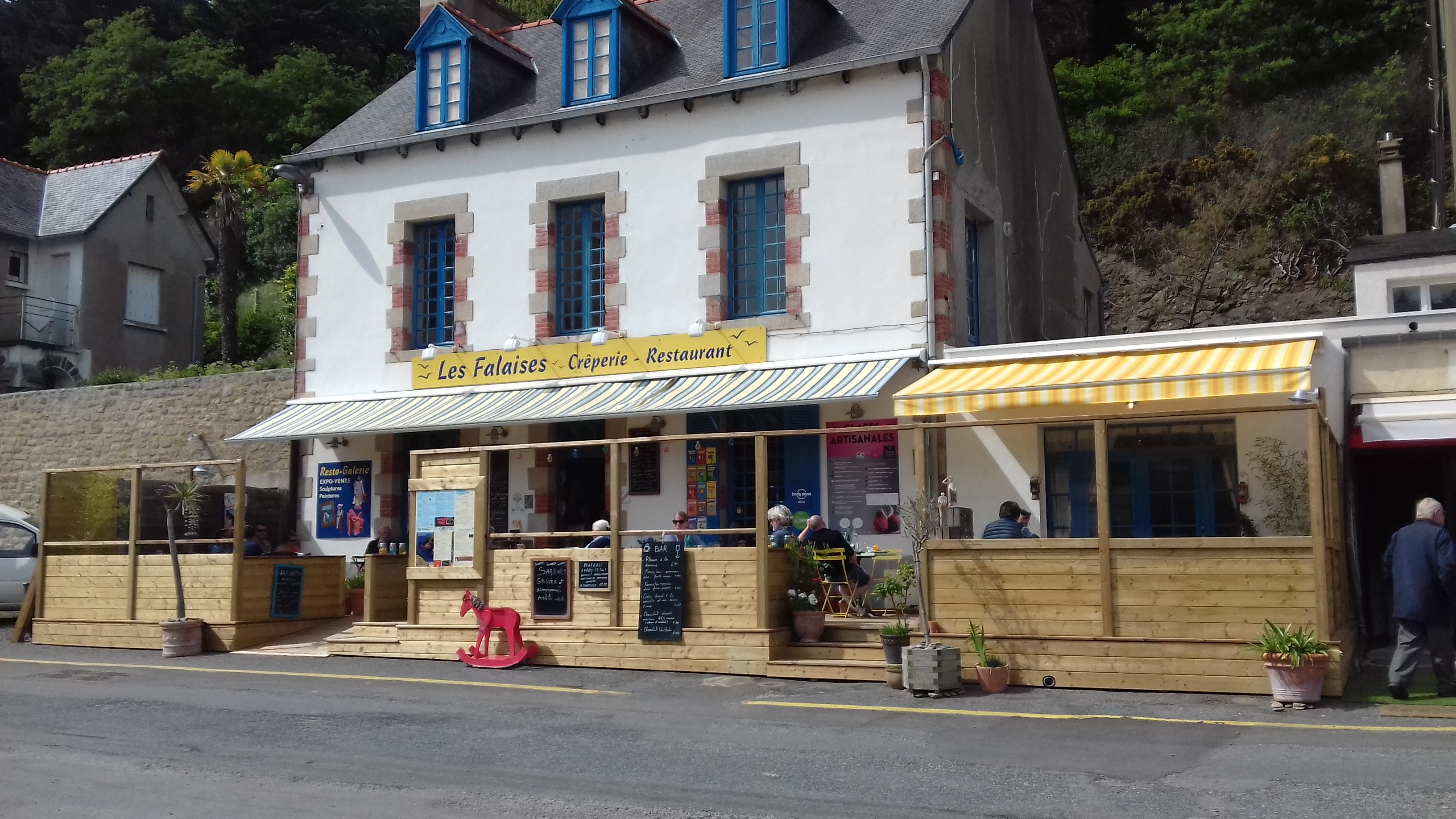 En étant situé au meilleur endroit de l’étape Saint Quay - Brehec du GR 34, le restaurant Les Falaises est une délivrance pour le corps et l’esprit. Les galettes sont tout simplement délicieuses et l’équipe de service est adorable. Je pensais arriver pour déjeuner et j’ai failli repartir avec l’amour de ma vie qui m’a été servi en même temps que les galettes. Difficile de demander plus avouons-le. PS : désolé pour le retard, la suite arrive.