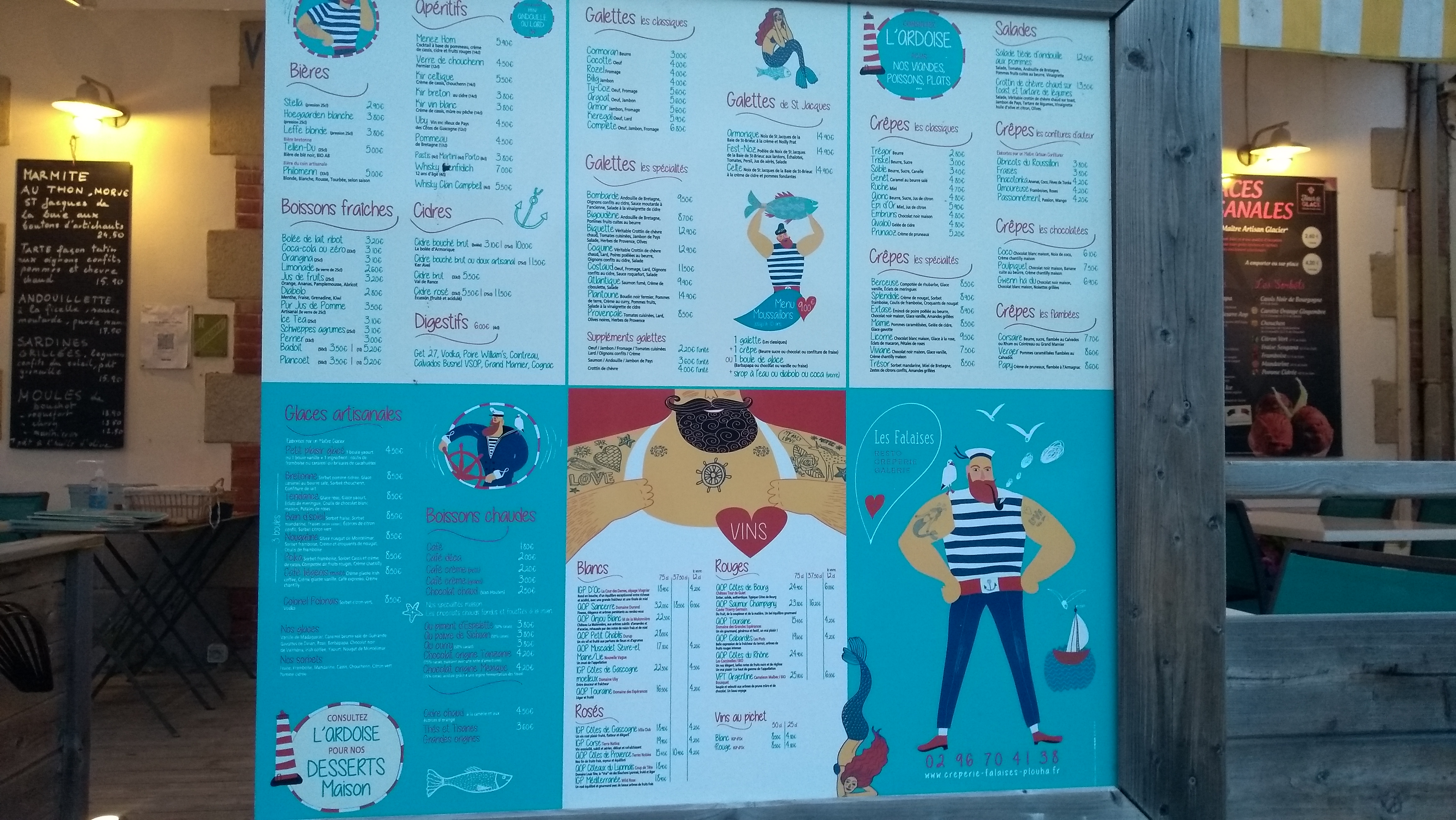 Changez de cap et préférez le restaurant d'à côté.Galettes décevantes et servies froides.Ne vous fiez pas au doux nom poétique des galettes...Pas mieux pour les sardines à peine cuites. Et que dire des crêpes chocolat (un basique) Dégueulasse. 13 personnes à table difficile à ģerer pour un seul serveur...Le dernier à été servi quand les 1er ont eu fini leur galette. Prix exorbitant pour une mauvaise qualité. La Bretagne ne manque pourtant pas d'excellentes crêperies. Un conseil passez votre chemin.