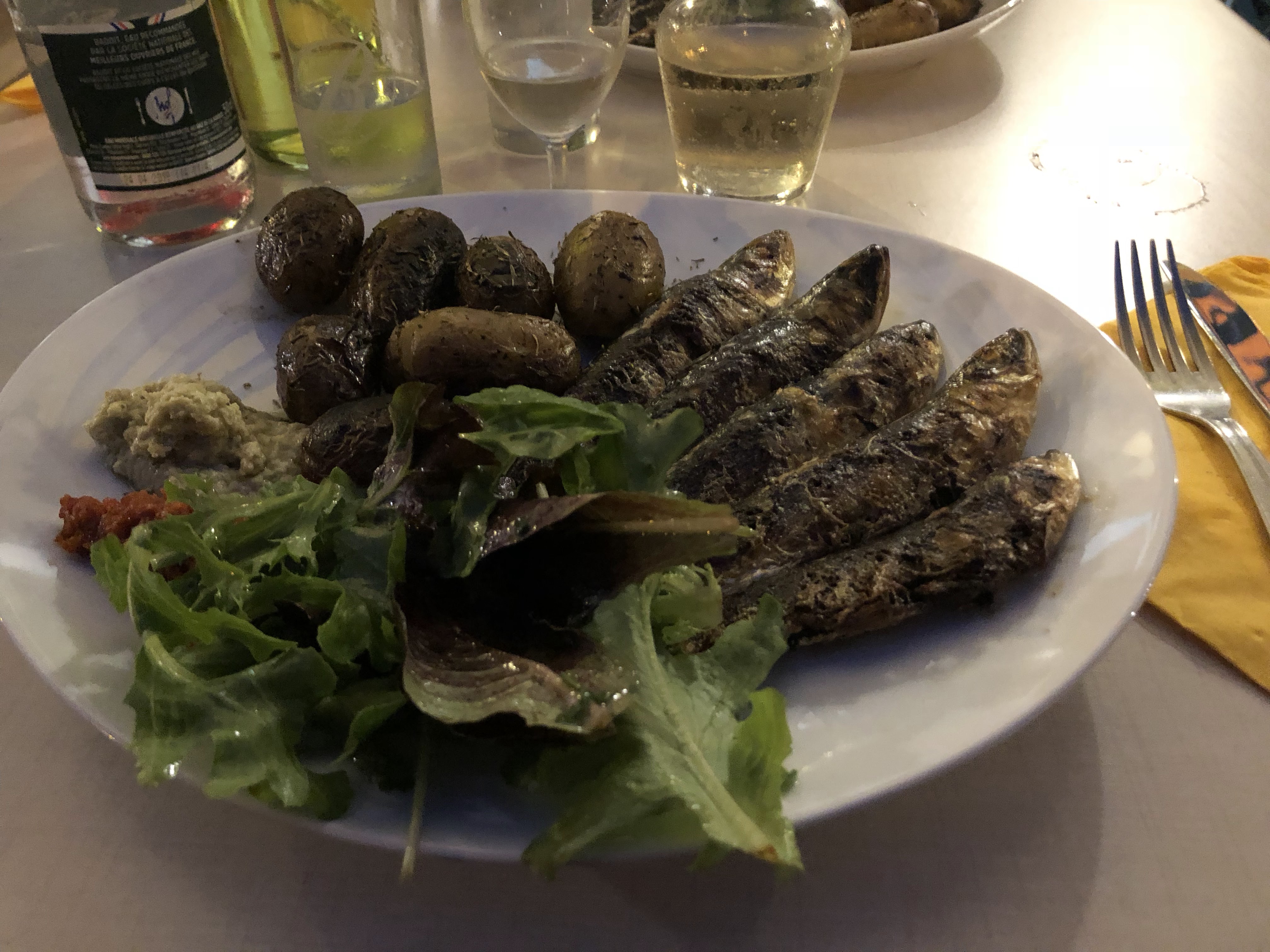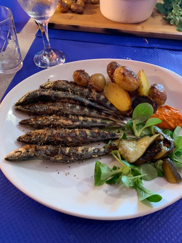 Un sketche... nous arrivons après avoir réservé une table en terrasse 1/2h auparavant. On nous annonce que ça sera à l'intérieur... ben non c'est pas ce qui a été réservé ! On nous donne une table qui attendait ses clients depuis 1h en nous précisant qu'on a de la chance... 1h30 après nos 5 pauvres sardines grillées à 16€ arrivent enfin .. garniture sans goût. Les clients se plaignent et débarrassent eux-mêmes leur table. On leur dit d'empiler les assiettes en bout de table.. une blague ?!?! Aucune excuses de la part du personnel. Ils ne comprennent pas qu'on râle. Le restaurant refuse du monde mais les tables sont laissées telles quelles non débarrassées pendant qu'un des serveurs fume sa cigarette..et au moment de payer toujours pas d'excuse pour ce service lamentable... je ne recommande pas du tout.