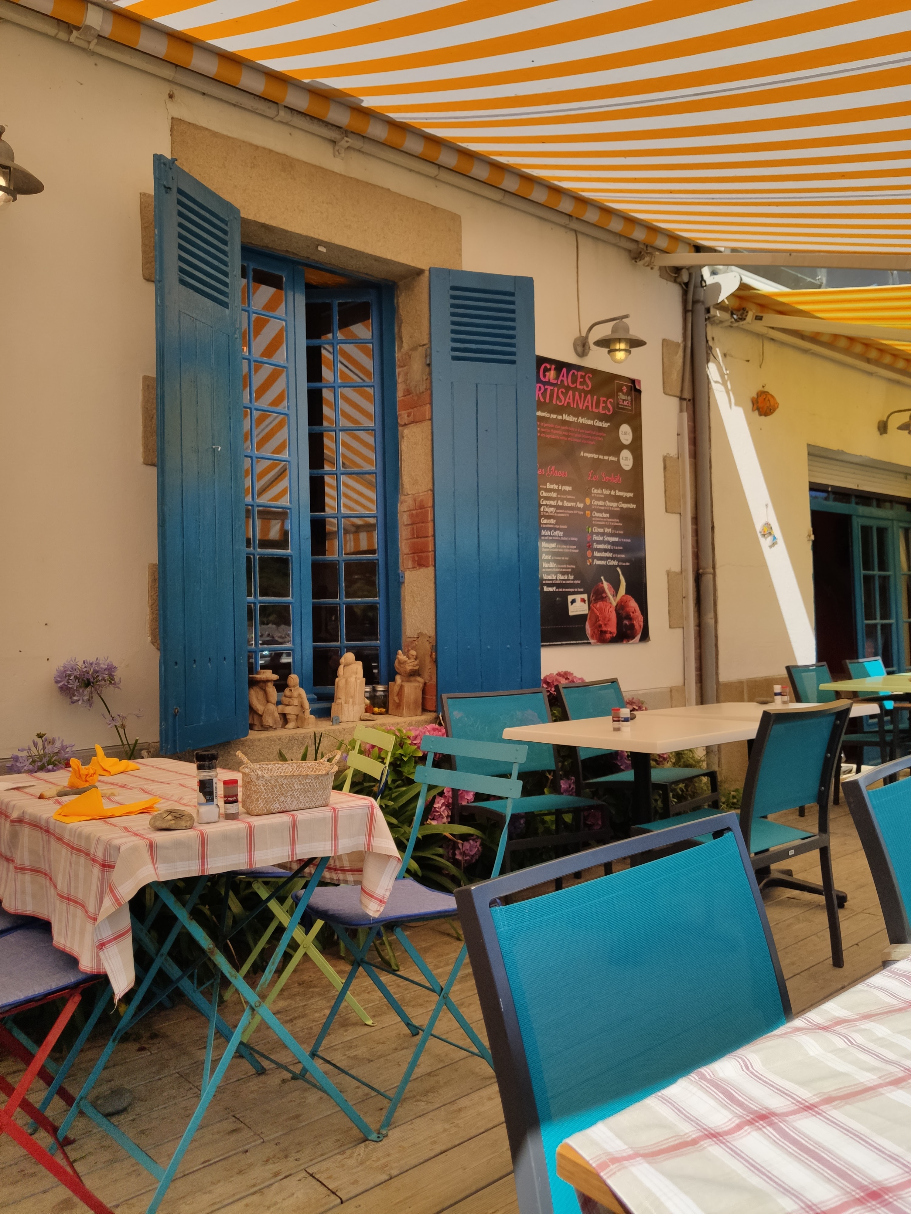 Les serveurs était vraiment au petit soin, ils prenaient garde a ce qu'il ne nous manque rien. Pour ce qui est de la cuisine les crêpes sont délicieuse nous y allons chaque année avec ma famille et nous n'en sommes jamais déçu. J'aimerai rajouter un bon point sur la déco coloré du restaurant. La terrasse est vraiment super mignonne.