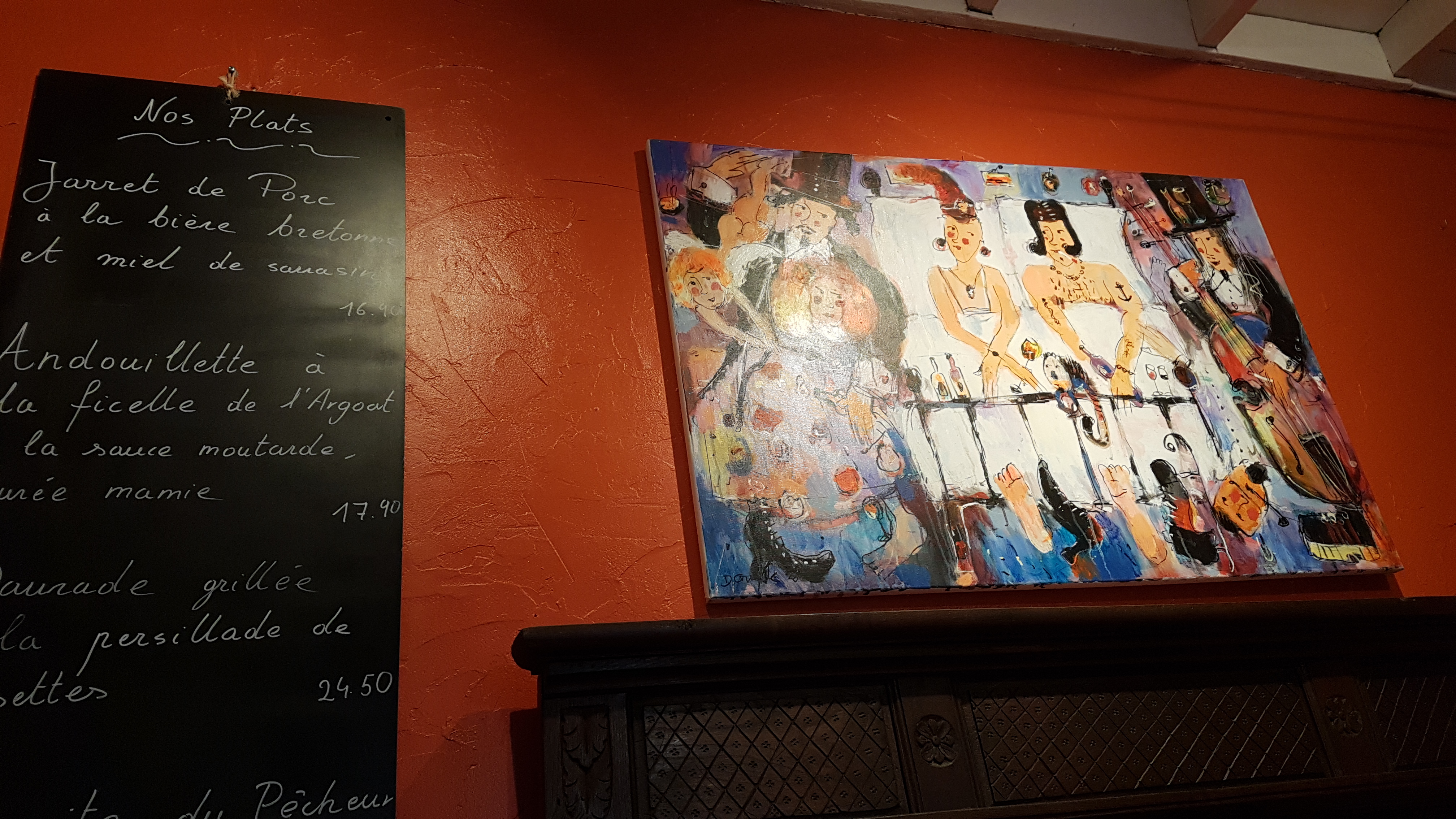 Que dire la galette fezt Noz avec DE VRAIS saint Jacques Trop bonnes . En dessert l extase Bon j ai oublié de dire en entrée la bombarde Bref bien mangé avec de bons ingrédients dans une atmosphère humaine ou le temps de manger est là! On ne vous vire pas après le repas. C est un restaurant qui prend le temps de préparer vos assiettes , si vous êtes encore en version huberhit en vacances , passez votre chemin car moi lorsque je paye 50 euros pour deux personnes en mangeant au total 5 galettes et bien je dis bravo Pas cher Restaurant pour des aimant la vie Ici pas de métro ou RER VOUS SOUHAITEZ PRENDRE LE TEMPS ET APPRÉCIER QUE DE BONS PRODUITS ALORS VENEZ DÉCOUVRIR EN TOUT CAS BEAU CADRE ET BELLES ASSIETTES DE FAIT JE RECOMMANDE