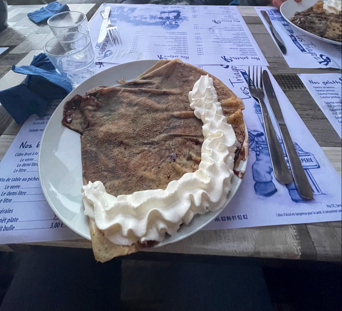Après avoir fait le sentier des douaniers autour de l'île Grande, un petit arrêt s'imposait en terrasse avec un joli soleil et une délicieuse crêpe au chocolat maison. Que du bonheur dans un cadre idyllique 🤩