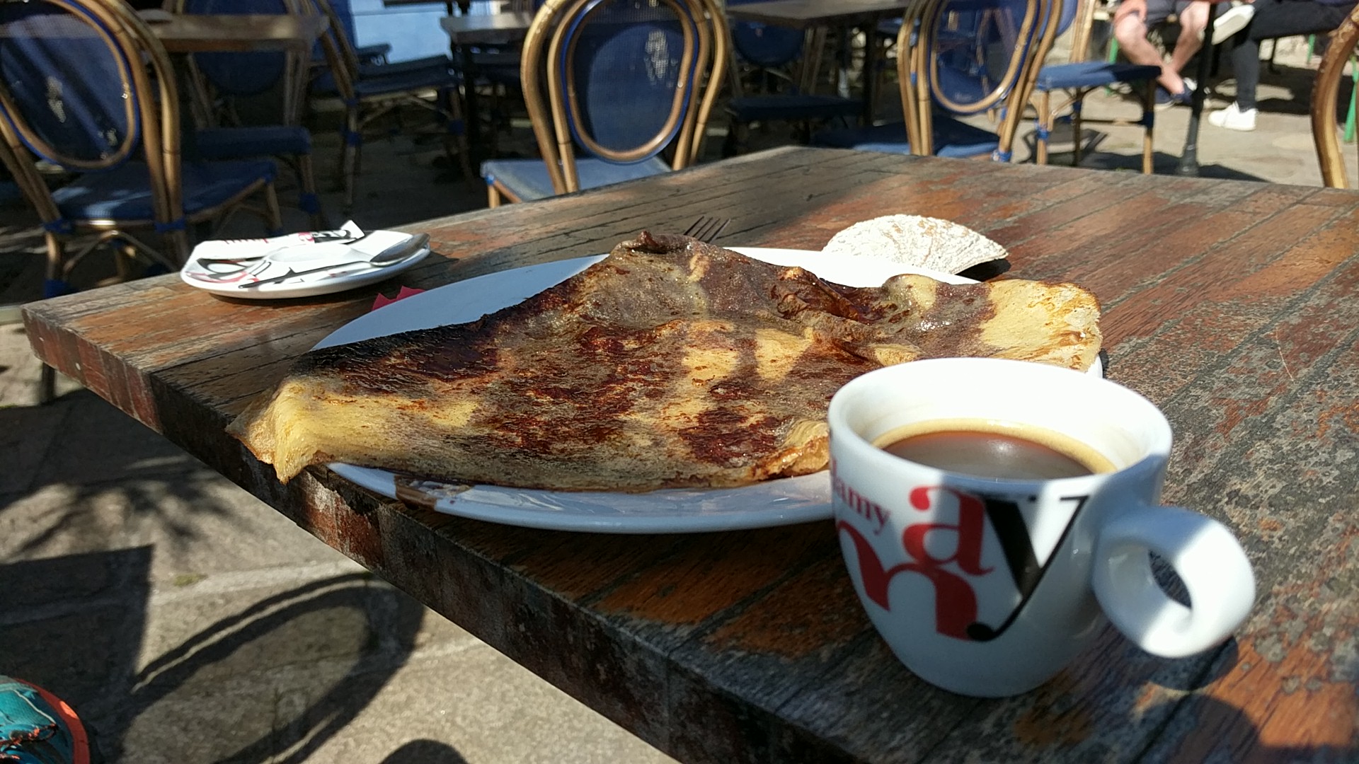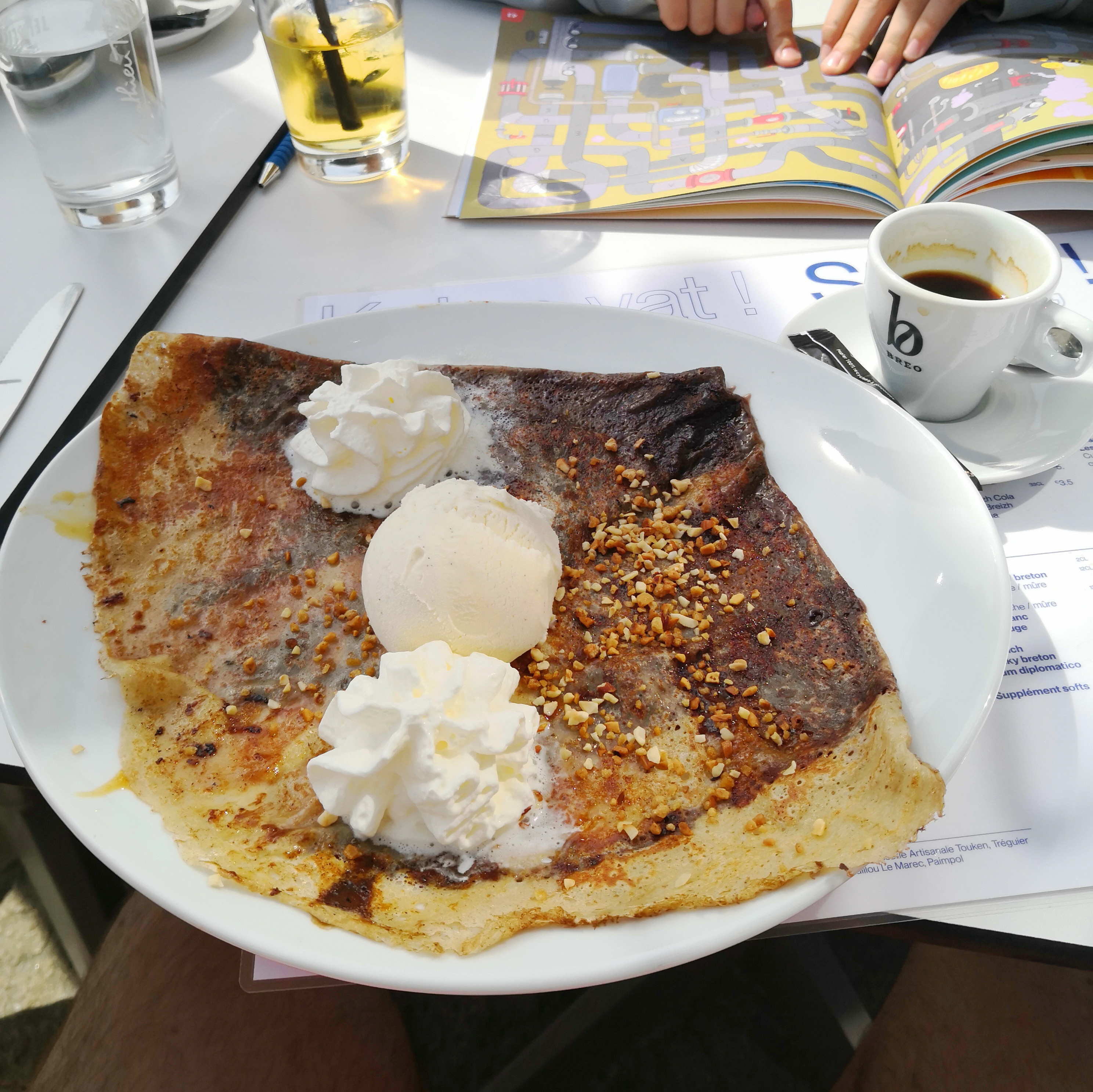 Une crêpe au goûter délicieuse sur une terrasse sympa avec une serveuse agréable. Le plus drôle en 10 secondes ? Le bus qui s’arrête devant et son chauffeur qui claironne quelques notes à la trompette 🤣 = sourire garanti de tous les clients 🤓