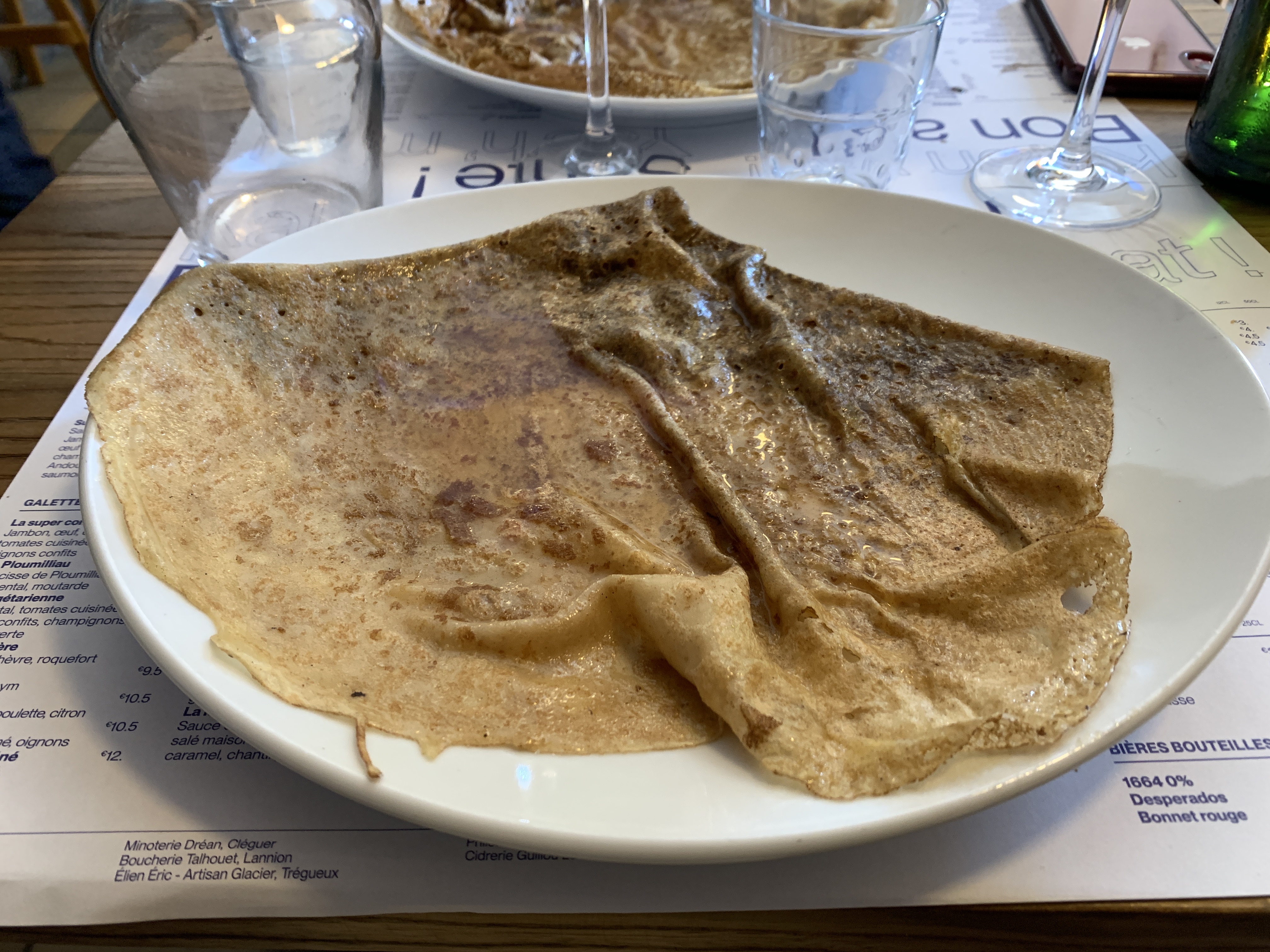 Crêperie sympa, mais sauf erreur de ma part, je ne crois pas que les galettes soient faites avec de la farine de sarrazin, elles ressemblaient davantage à des crêpes, donc quand même déçue