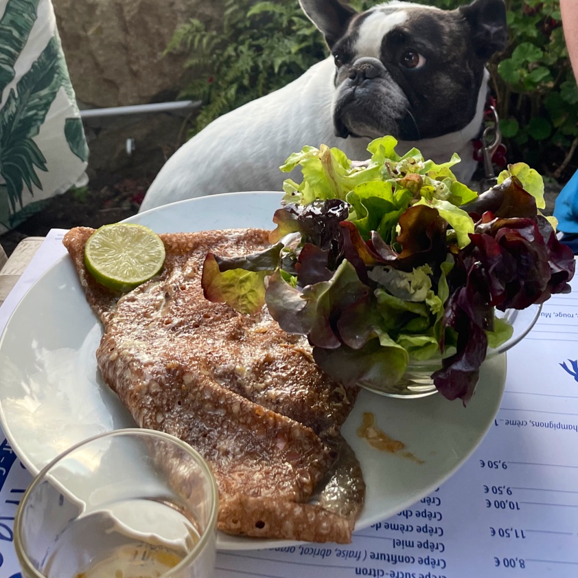 La Bretagne et ses gourmandises... On nous a conseillé cette crêperie et on a bien fait! Bonne biere pour Monsieur, petit cocktail pour mademoiselle, galette généreuse et crêpes très bonnes ! Une bonne adresse et dog friendly :)