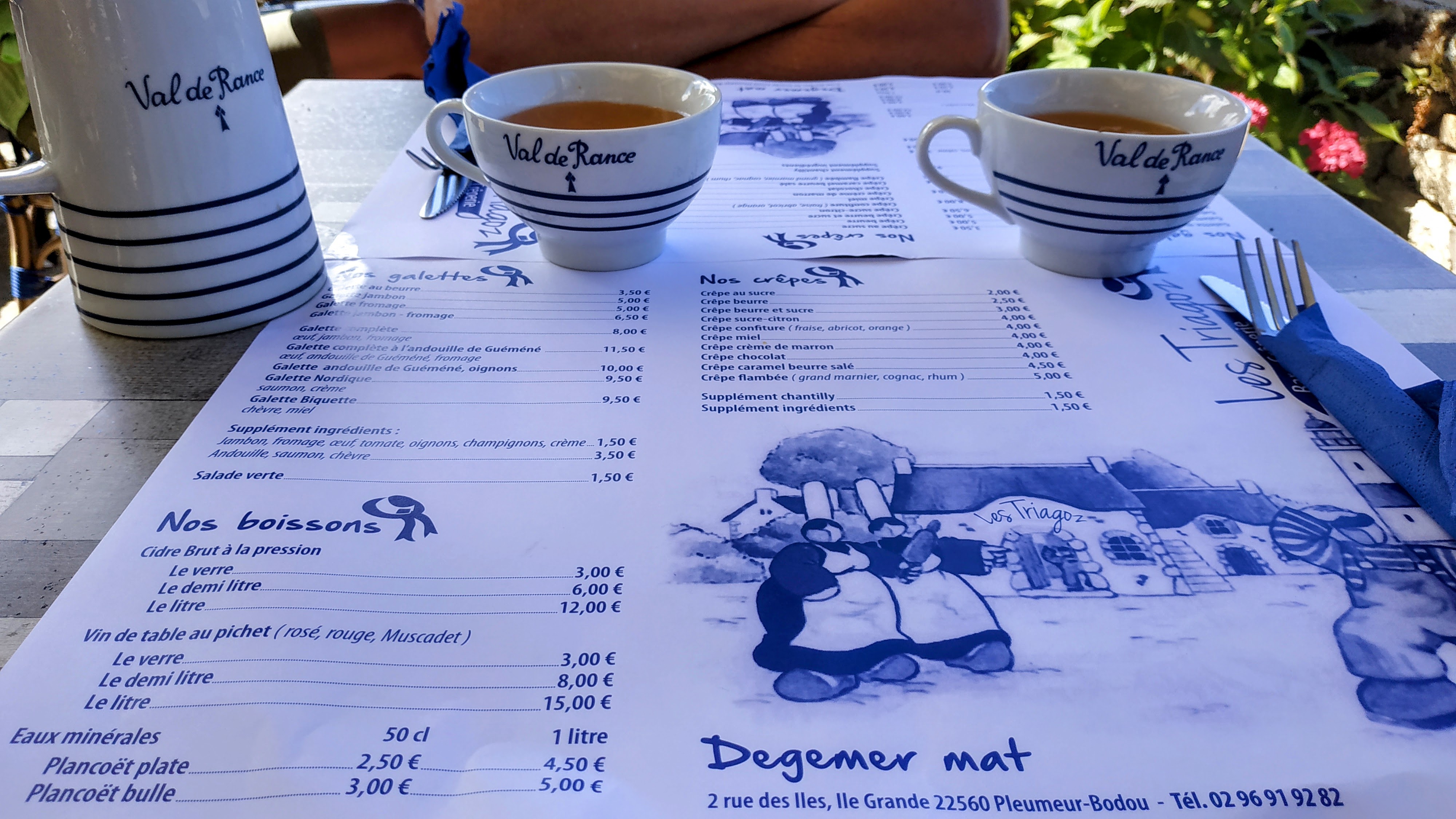 Bonjour Julia, vous nous avez certainement confondu avec un autre restaurant. Nous sommes Les Triagoz à l’île grande. Bonne journée à vous. Les Triagoz.