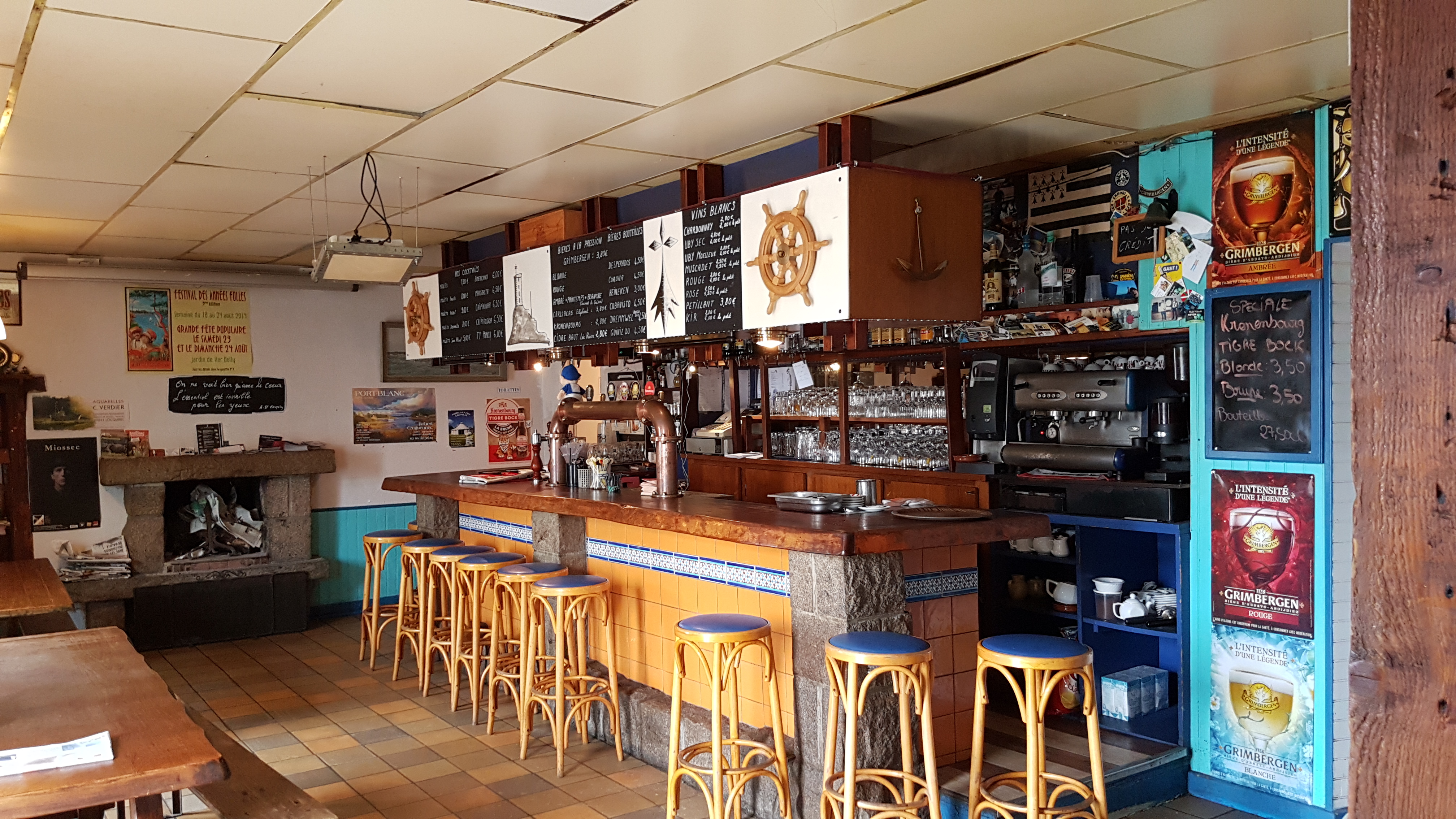 Accueil sympa dans cette petite crêperie sans prétention mais qui remplit sa mission : servir de bonnes crêpes! Elles sont servies très rapidement: pratique pour les enfants affamés et impatients! Prenez soin de réserver en été et faites vous bien confirmer la terrasse si votre souhait est de manger dehors. Ne ratez pas cependant une toile marine à l’intérieur avec les yeux de Tabarly, magnifique. Comptez 15€ par personne pour une crêpe salée, une sucrée et une boisson.