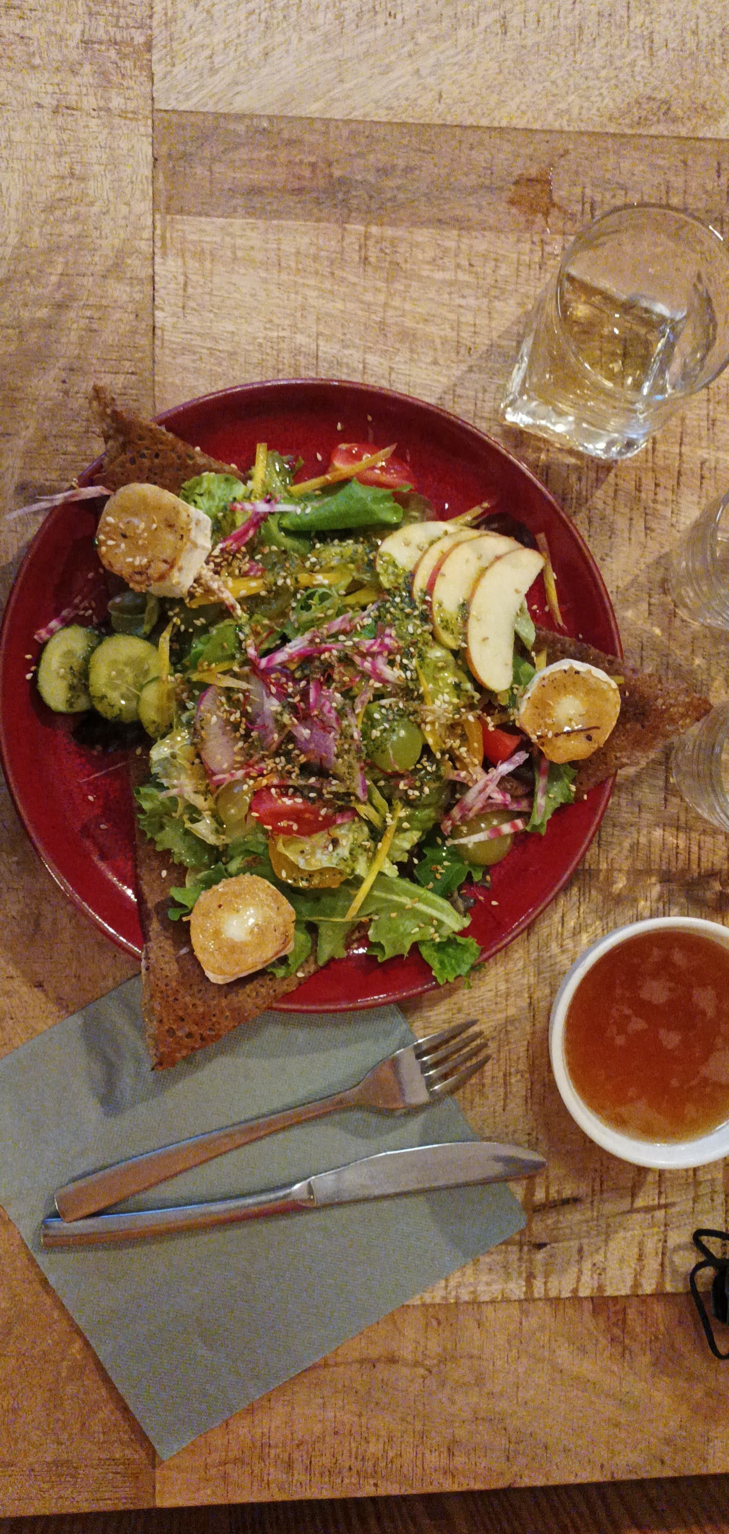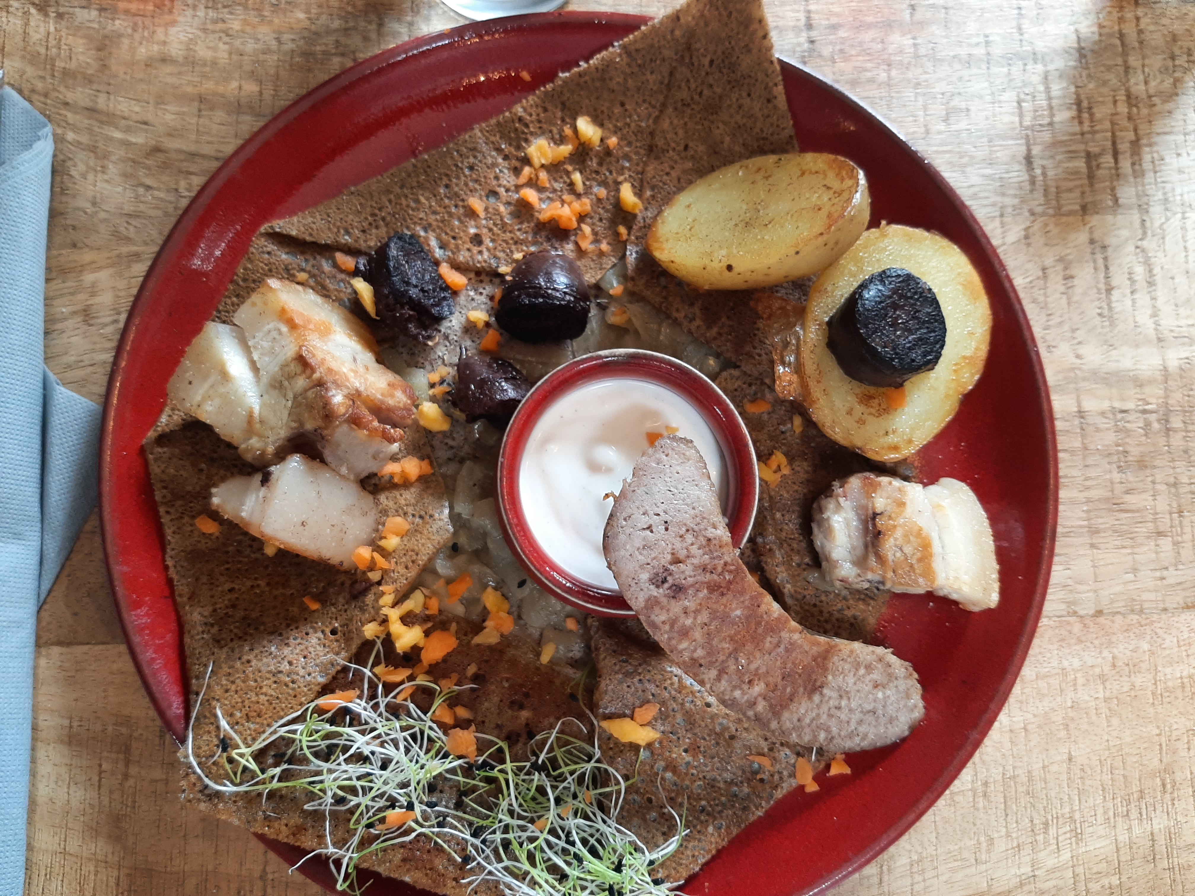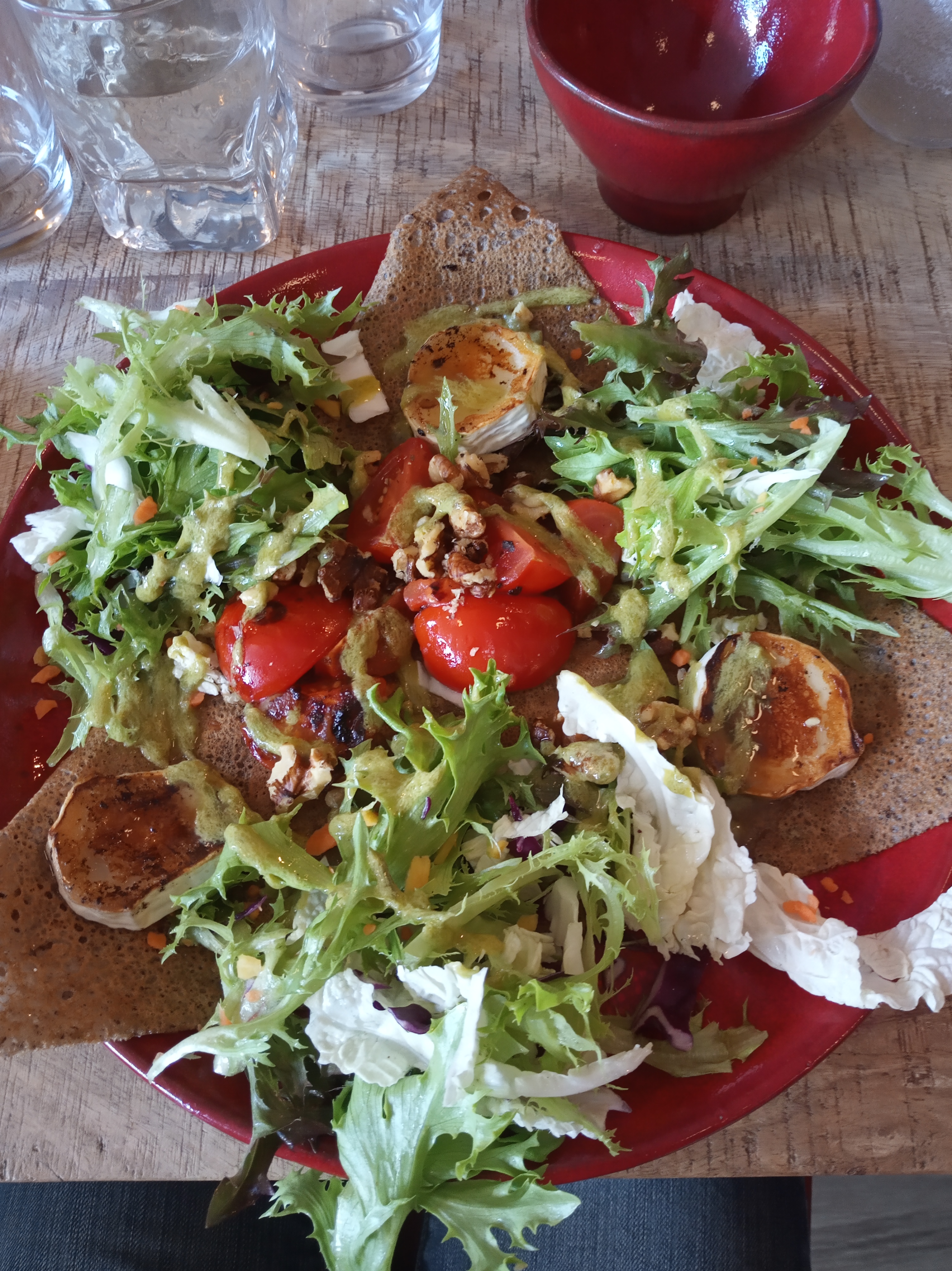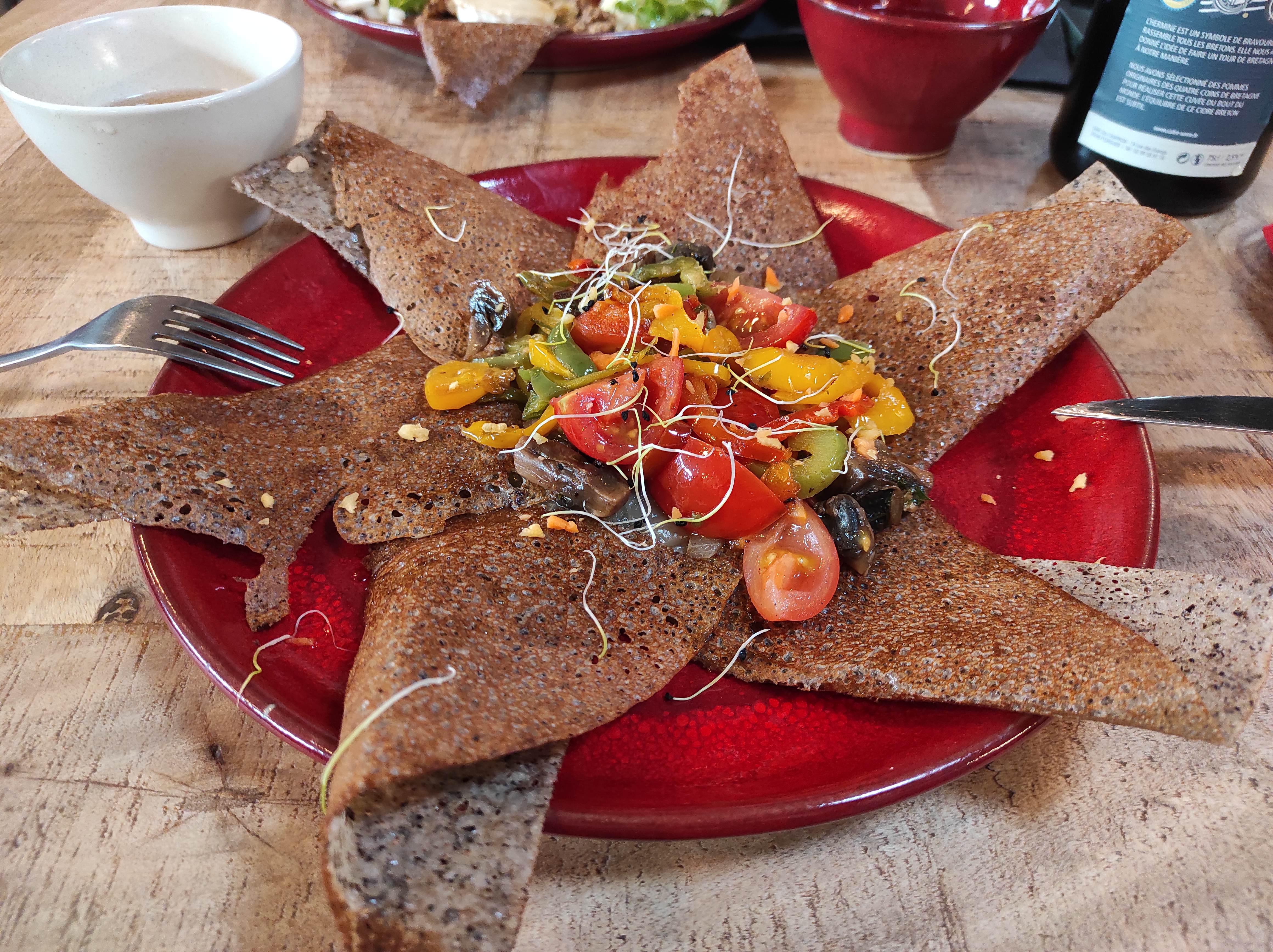 Dans un pays où il y a une crêperie tous les 3 kms, c est agréable d en croiser une qui se décarcasse pour renouveler le genre. Un local. Bravo.