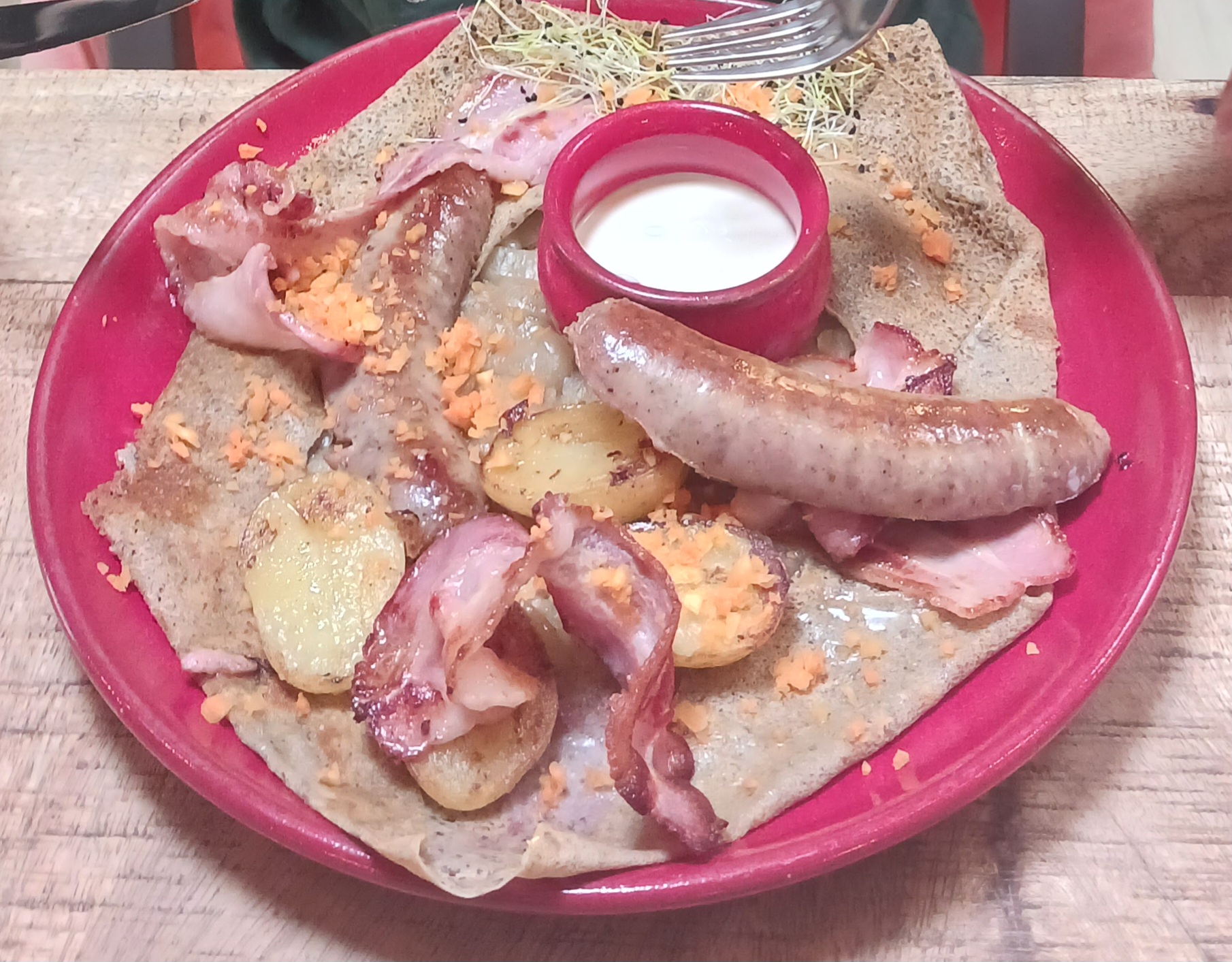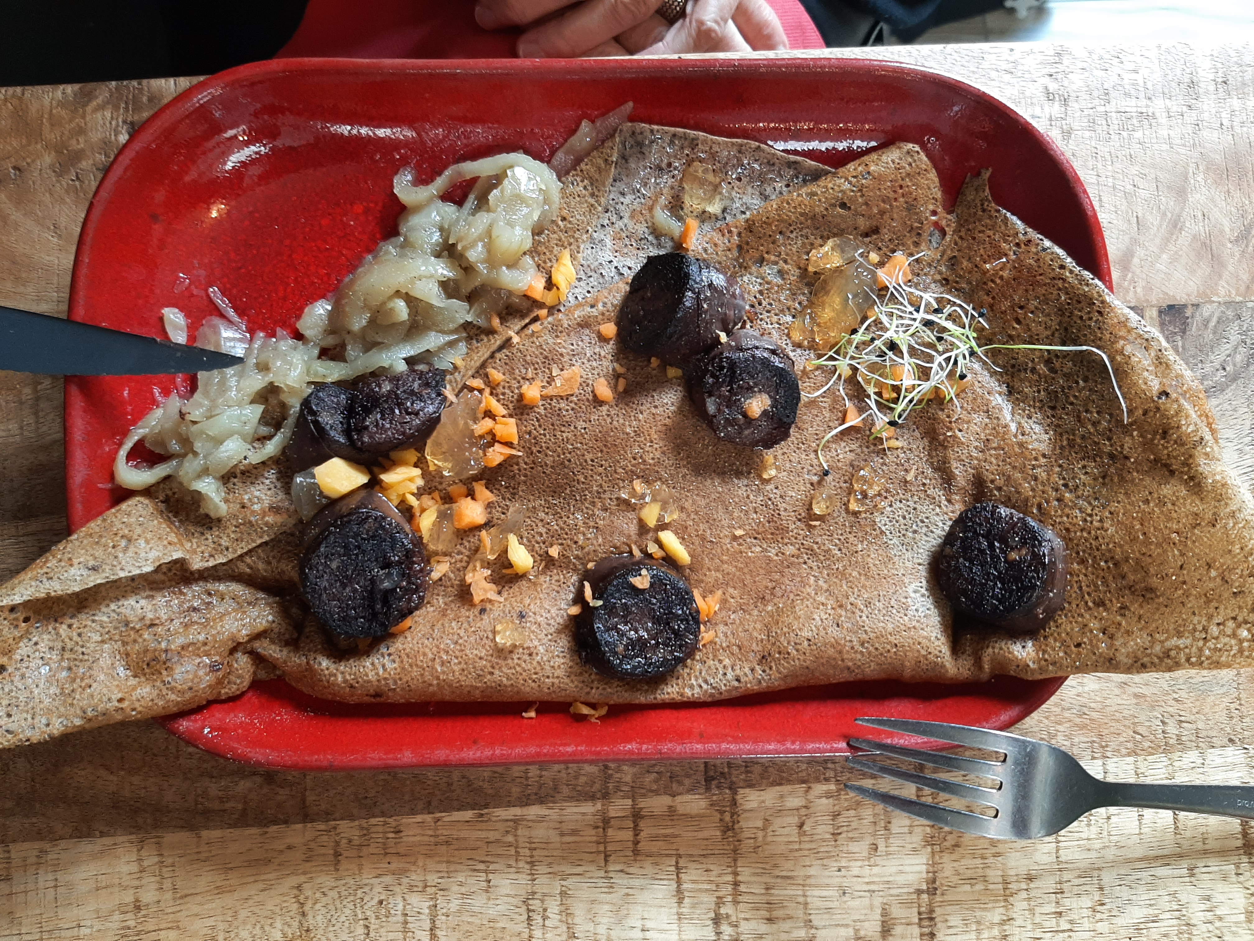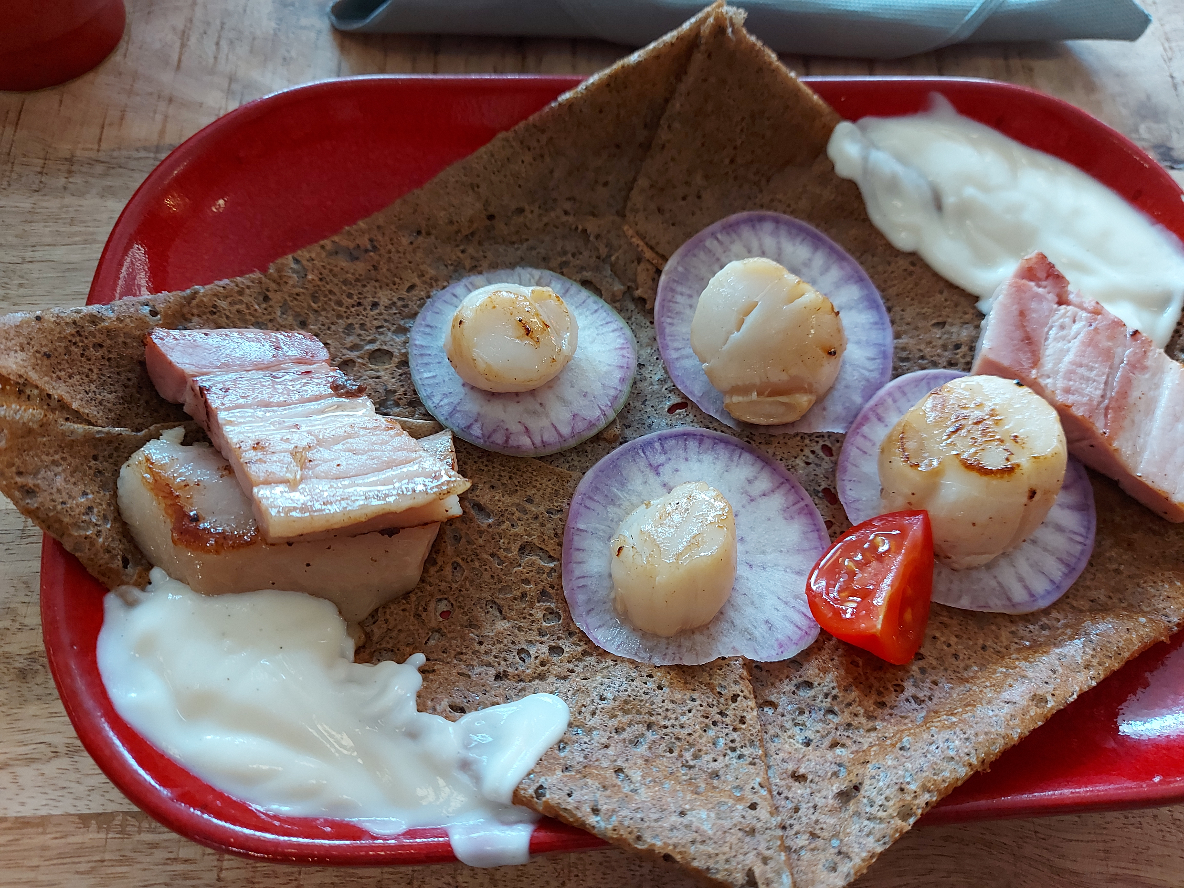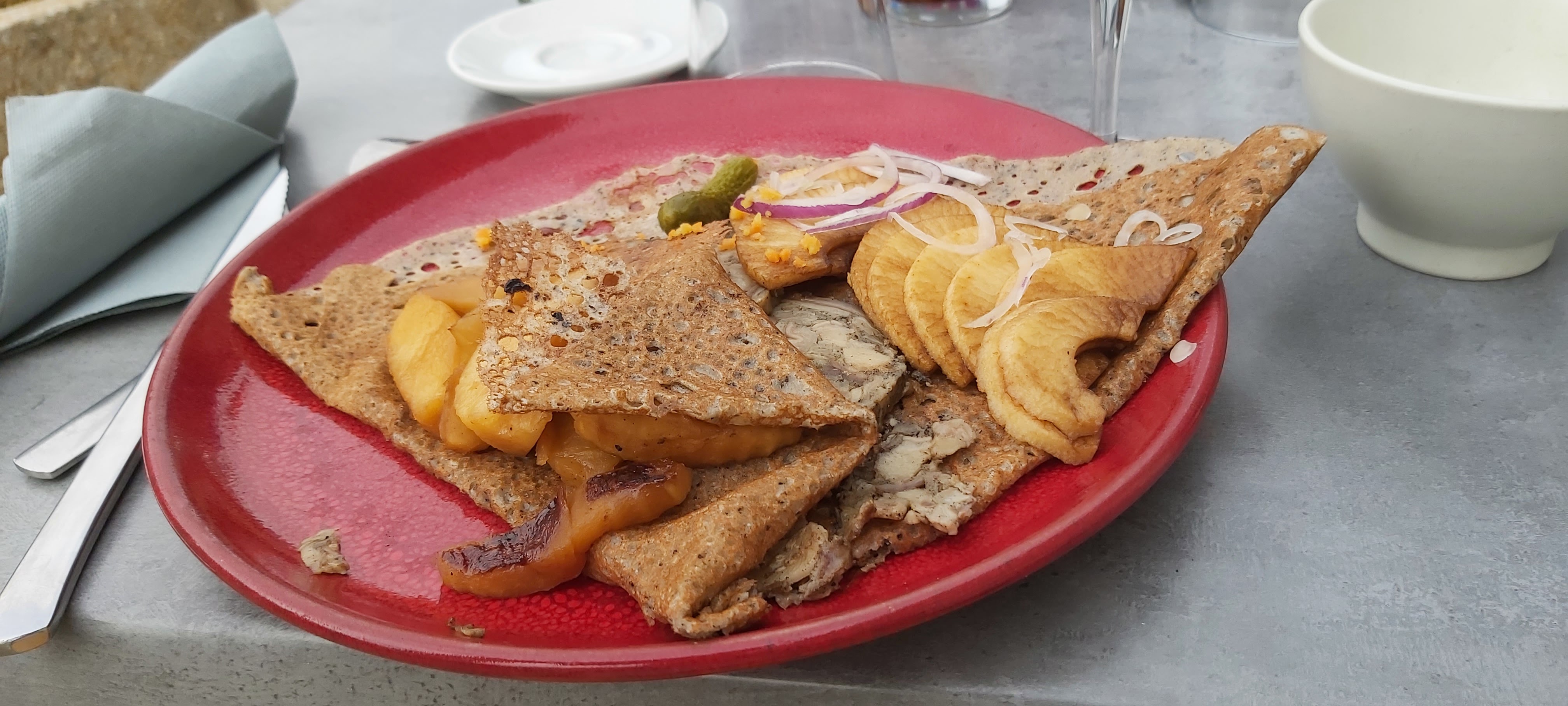 Dans un pays où il y a une crêperie tous les 3 kms, c est agréable d en croiser une qui se décarcasse pour renouveler le genre. Un local. Bravo.