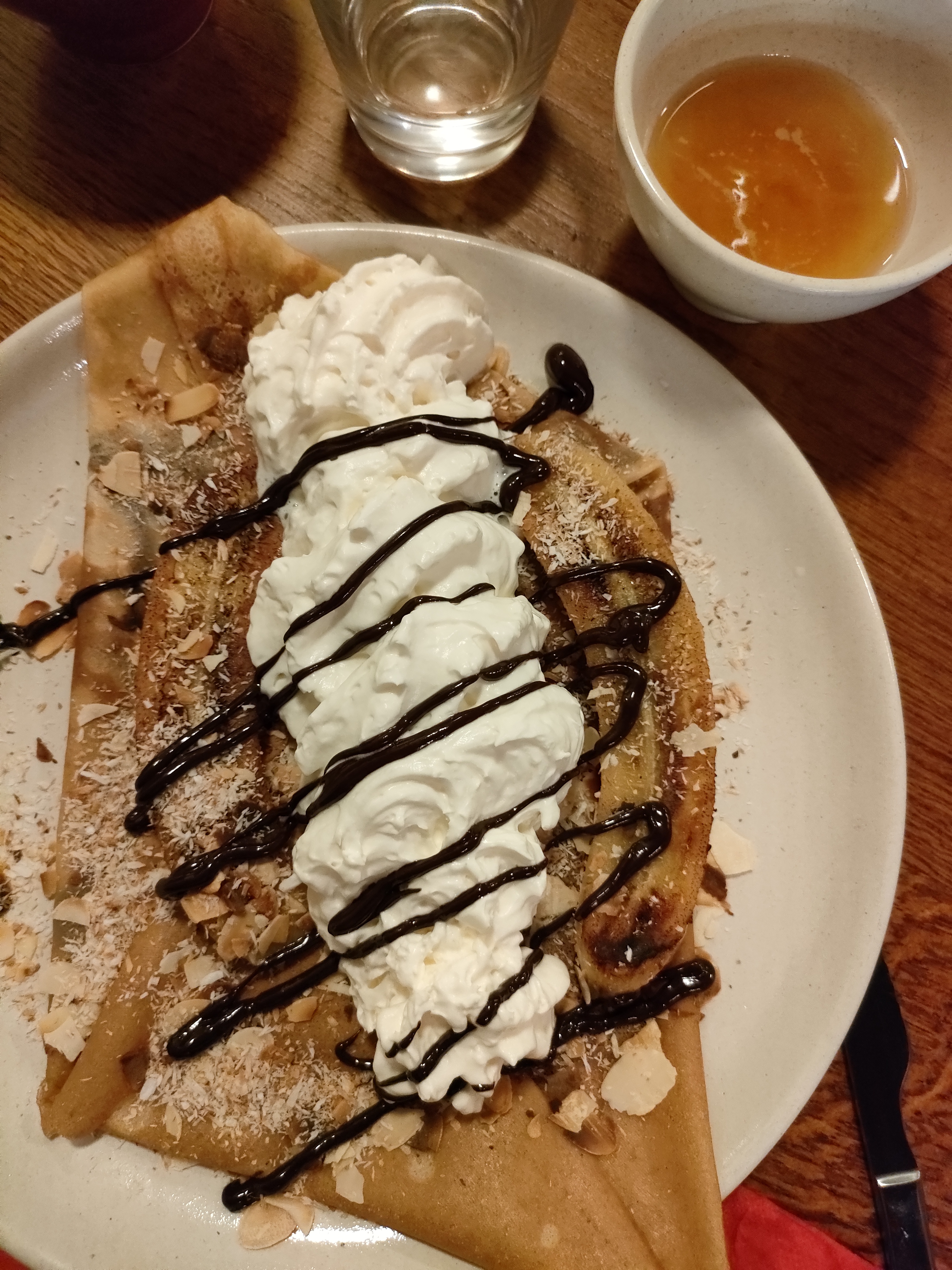 Accueil adorable, y compris si on arrive un peu tard (21h), avec des crêpes originales et garnies